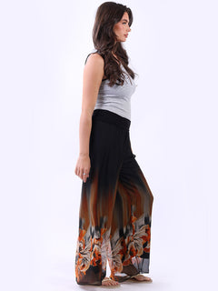 Online Fashion Boutique presents these chic double-layer silk trousers to refresh your wardrobe. Made in Italy, these trousers have essential features, including a breezy wide-leg cut and a bold floral print at the hem. The wide elastic waistband gives all-day comfort, which makes them an easy choice for stylish ladies looking for options for relaxed dressing.