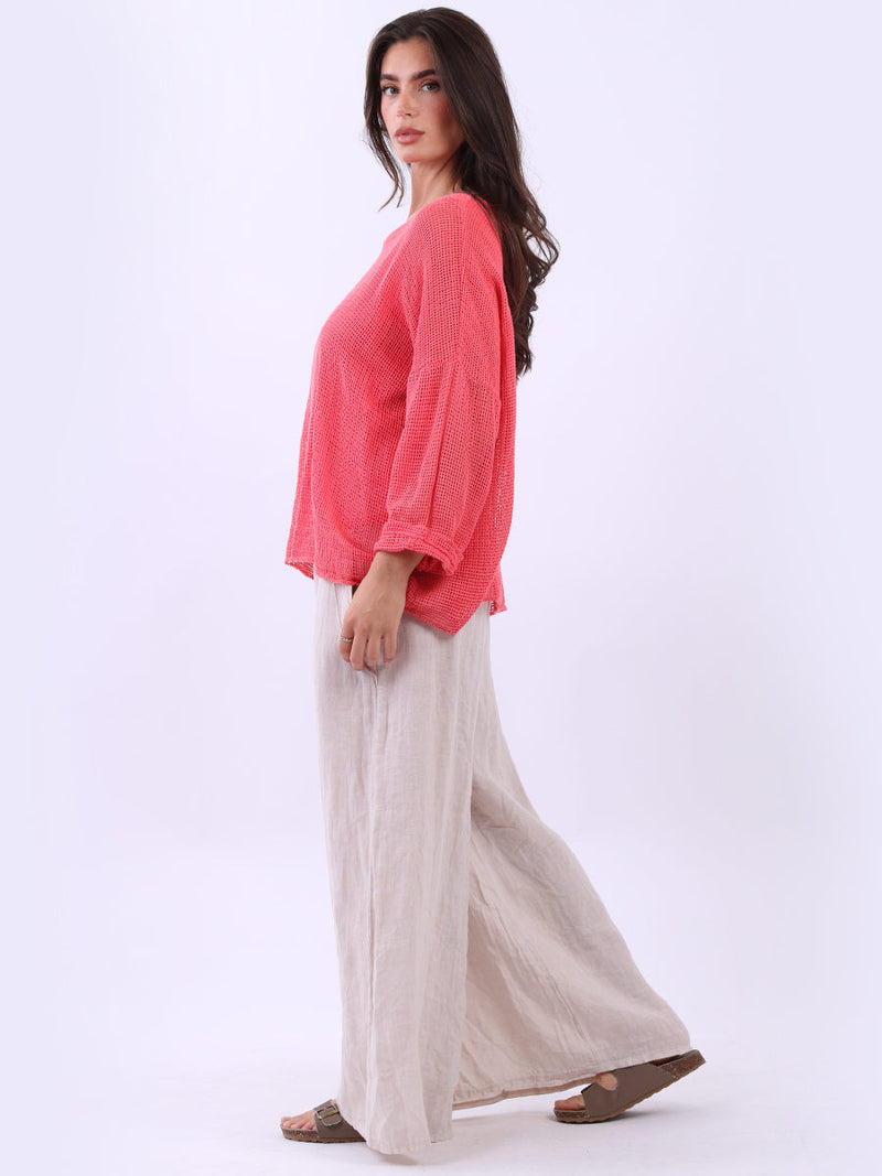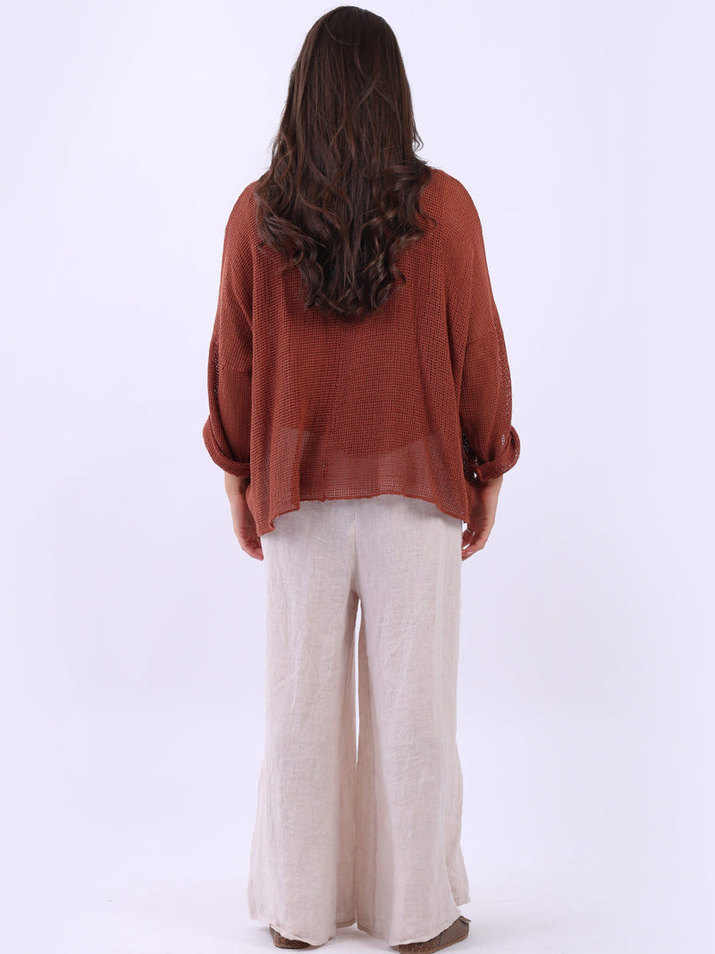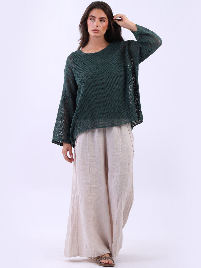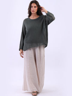 This women’s two-layered lagenlook mesh top is exactly what you need for those unpredictable autumn days! With its relaxed fit, simple round neckline, and long sleeves, it gives off that easy going Italian Moda vibe. Pair it with high-waist jeans and boots for a cosy, stylish fall look, or go for a more feminine touch by wearing it with a flowy skirt. Either way, it is a perfect pick for the season!
