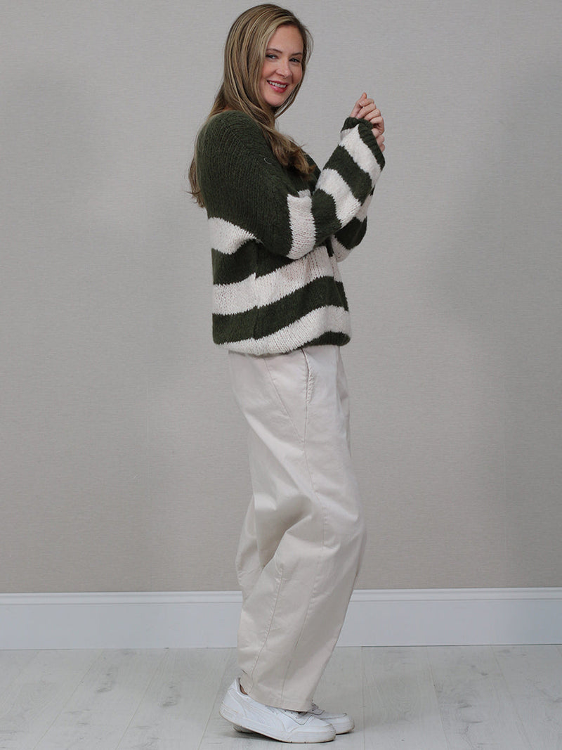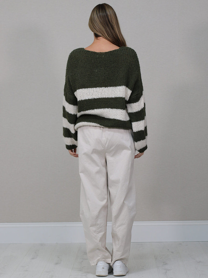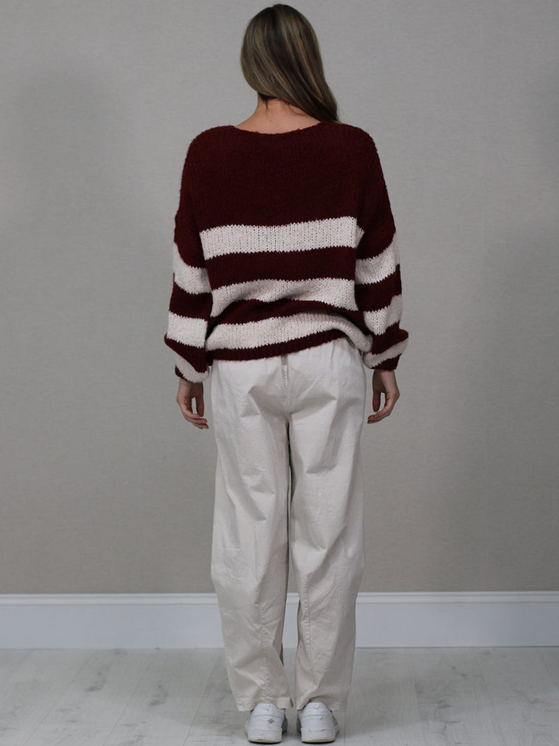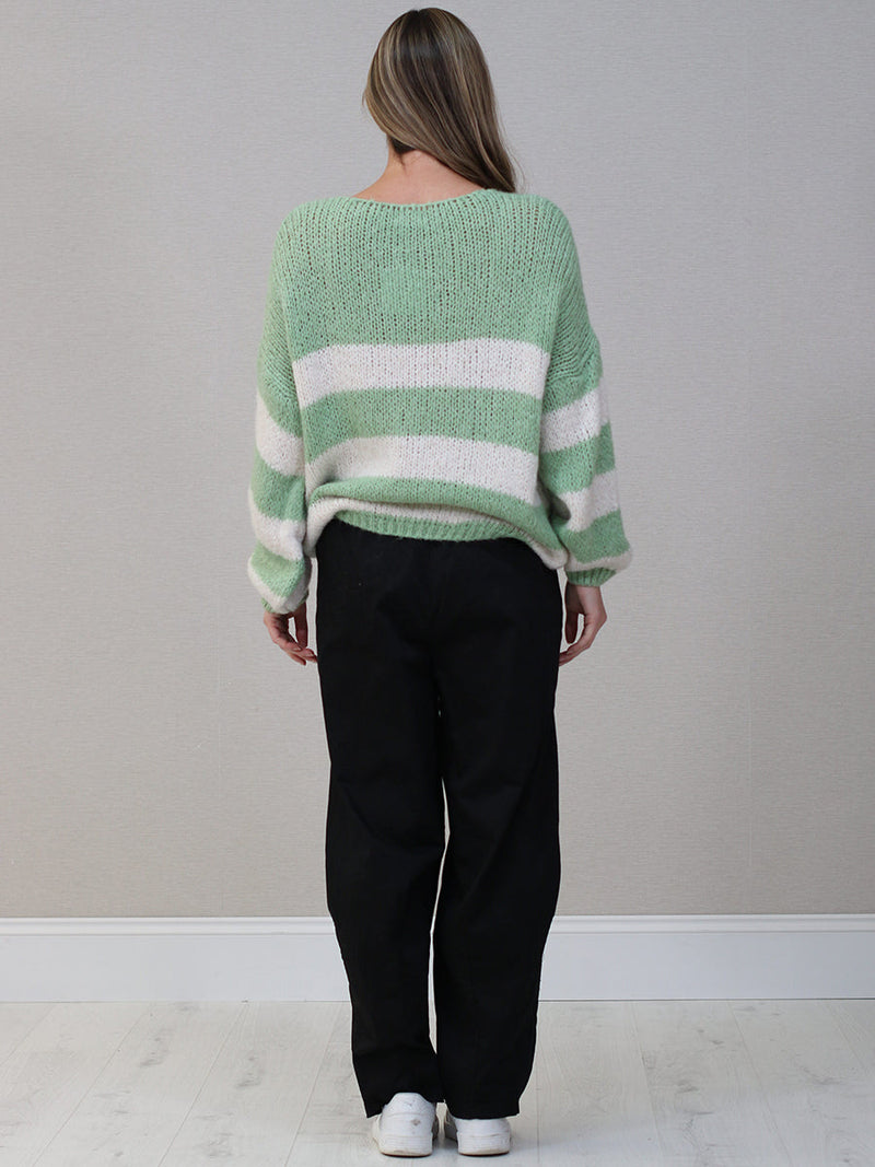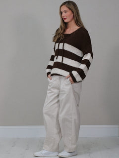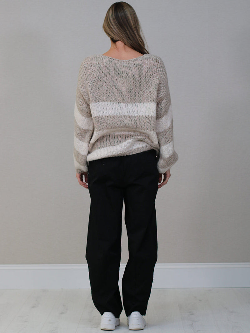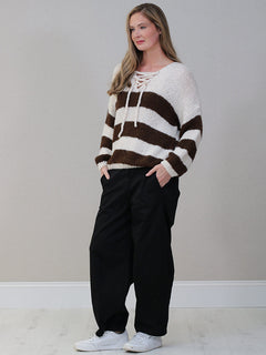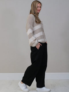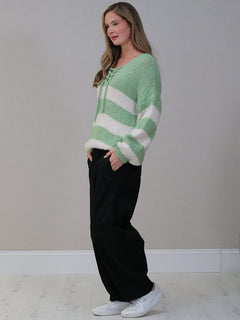 Women Clothing Store introduces this wool jumper to offer you some warmth and style. Made in Italy, it features Soft stripes, a dip shoulder with a casual drawstring neck-line. This is a premium jumper ideal for day and evening wear when it is cold outside. You will look gorgeous wearing this luxurious wool jumper with jeans or a skirt.
