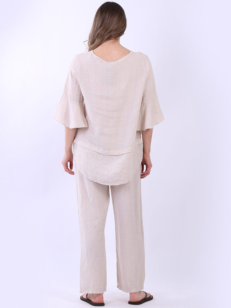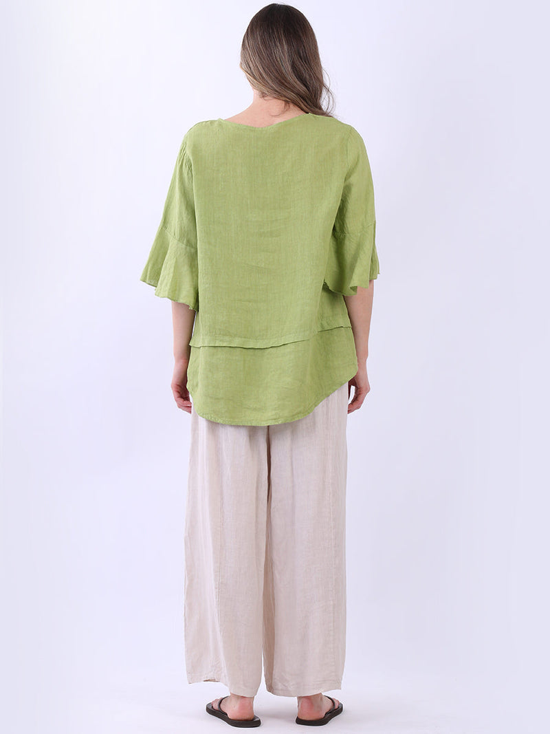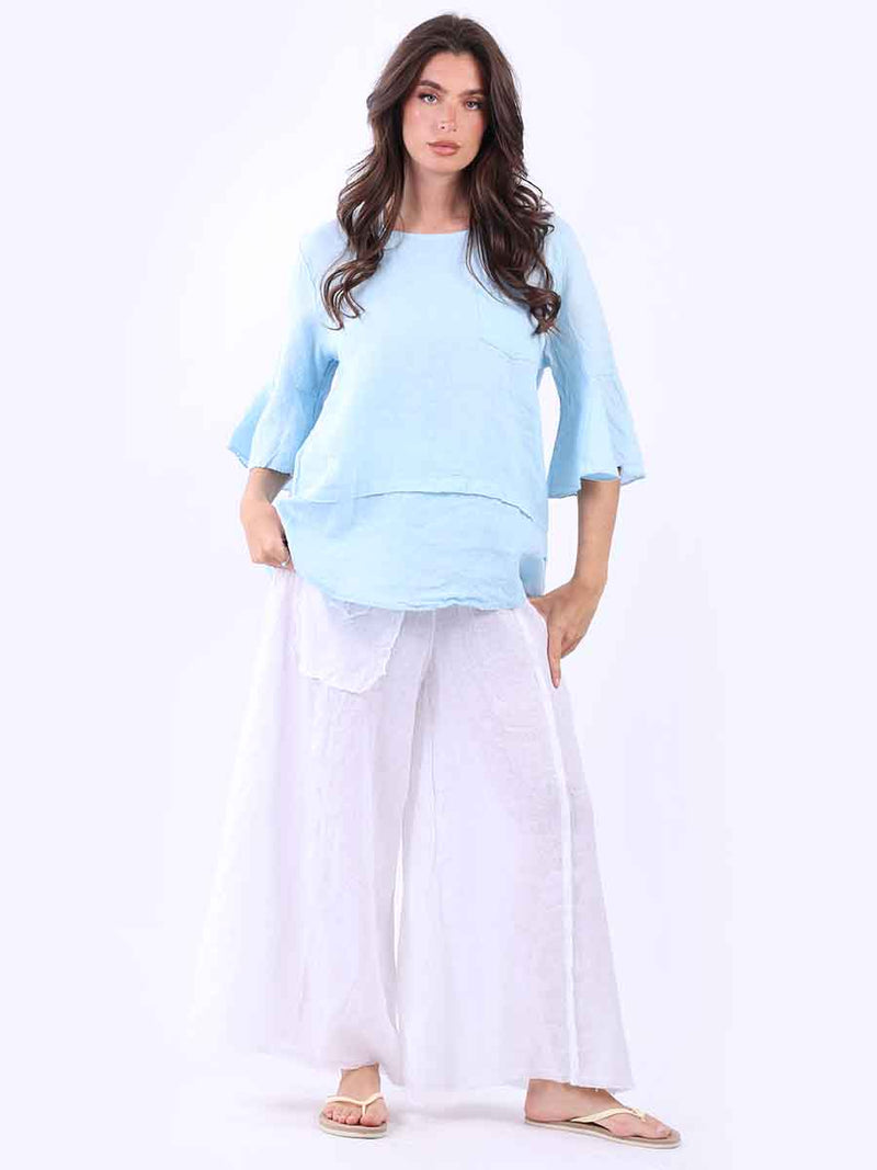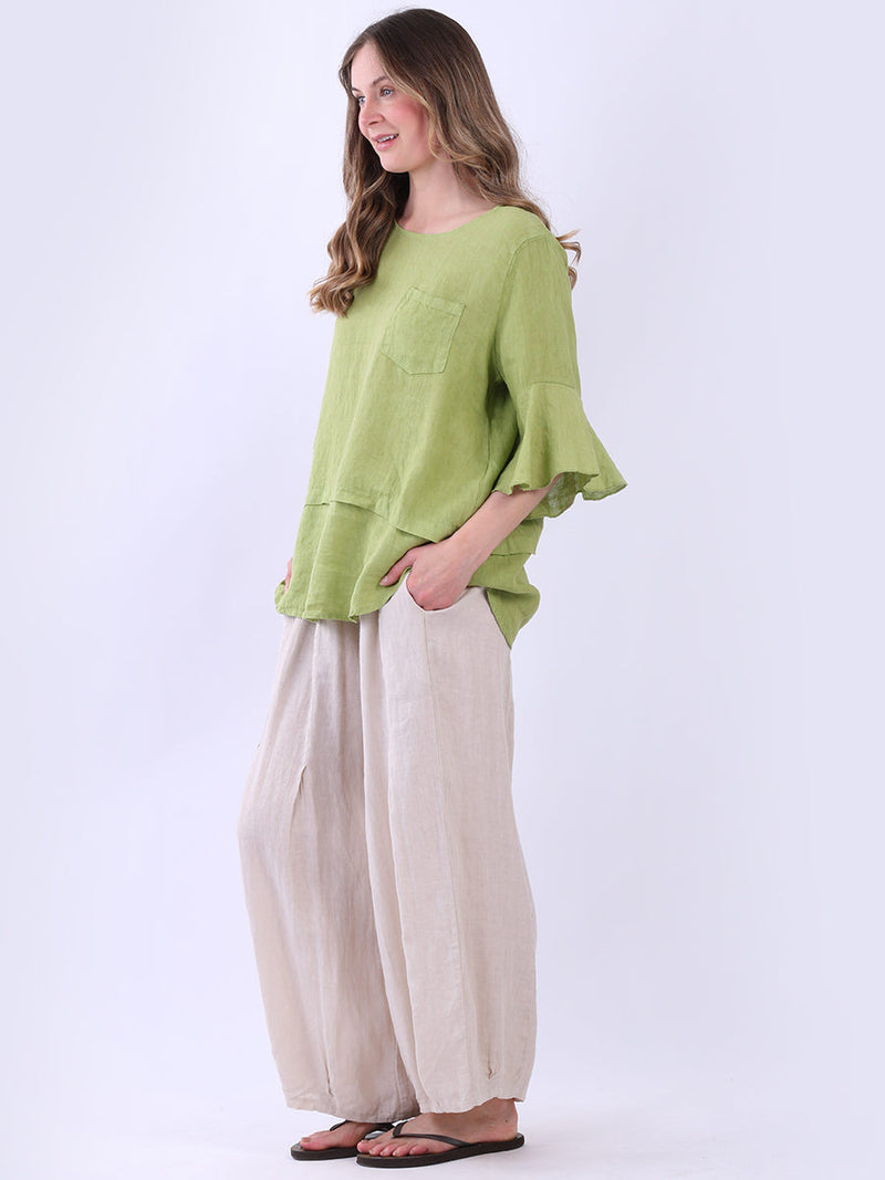 Some clothes feel like a good mood. This solid lagenlook linen top is that quiet, effortless charm, the kind you reach for when skies are cloudy and laughter is easy. Bell sleeves flutter like a whisper, and that little pocket? Perfect for tiny treasures or a crumpled love note.