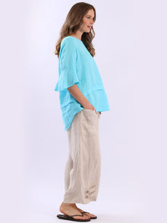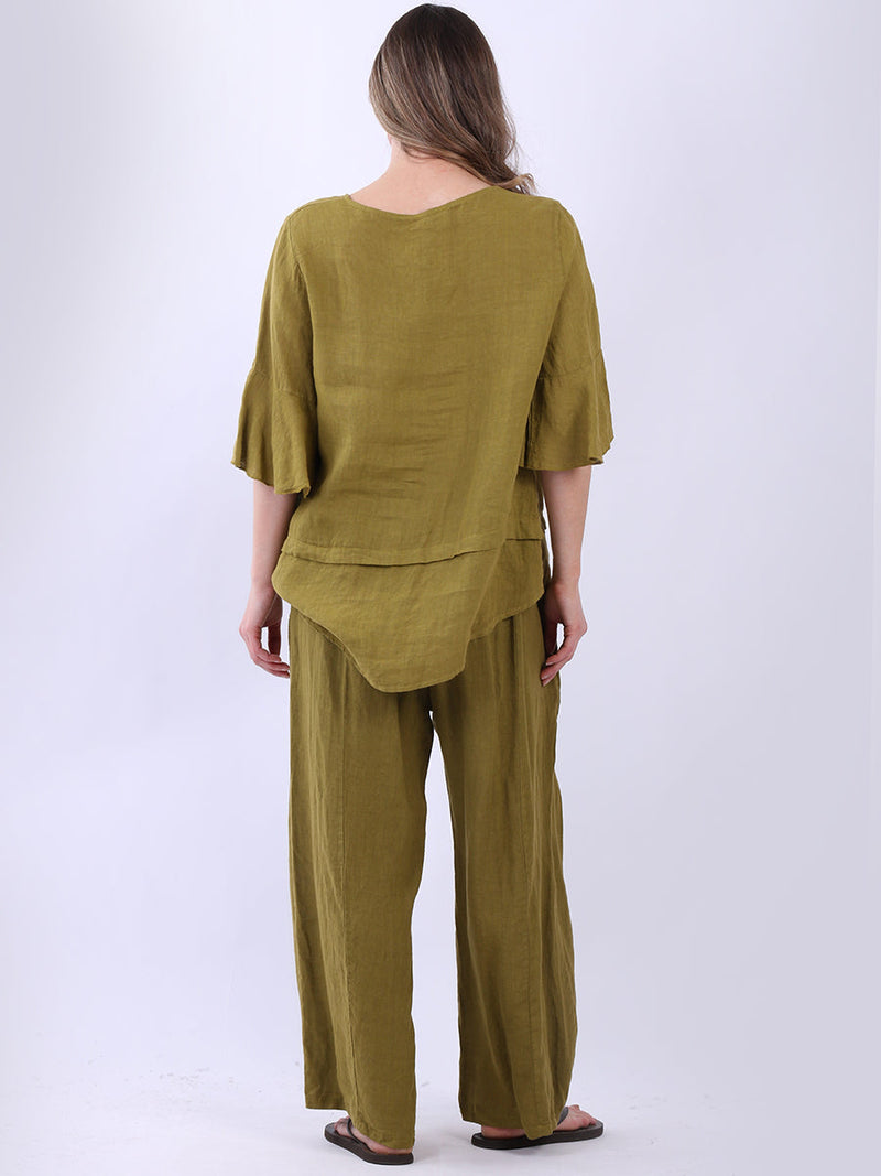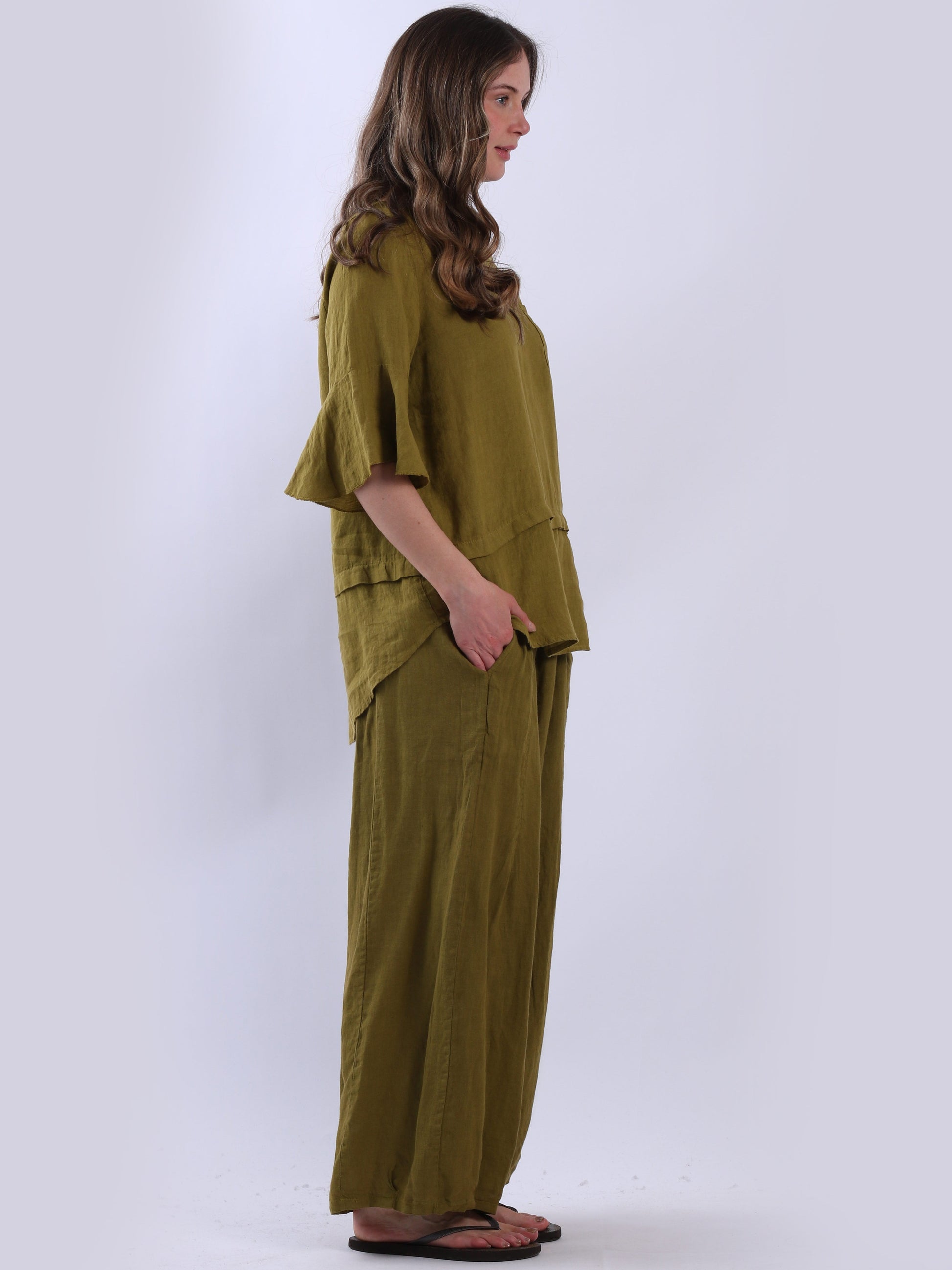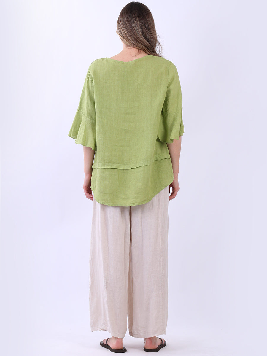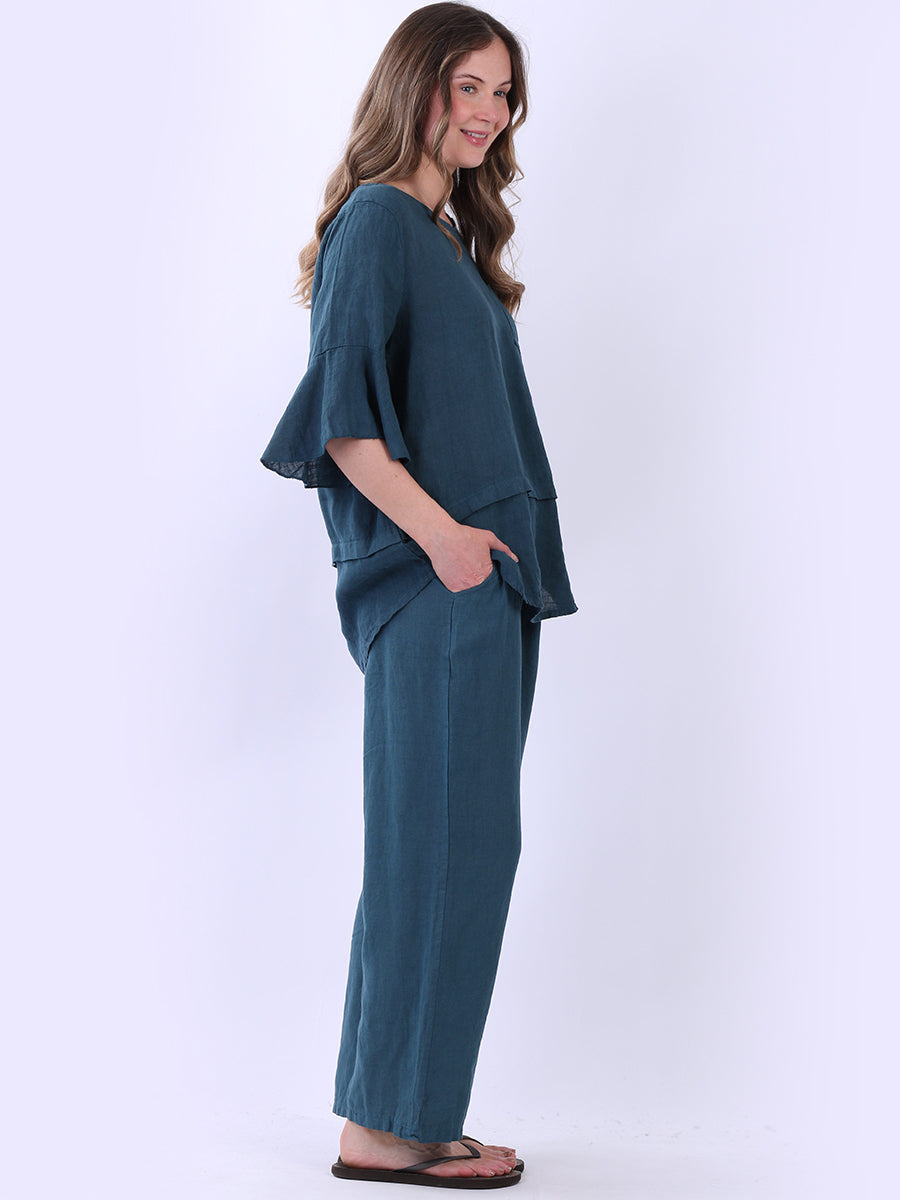 Some clothes feel like a good mood. This solid lagenlook linen top is that quiet, effortless charm, the kind you reach for when skies are cloudy and laughter is easy. Bell sleeves flutter like a whisper, and that little pocket? Perfect for tiny treasures or a crumpled love note.