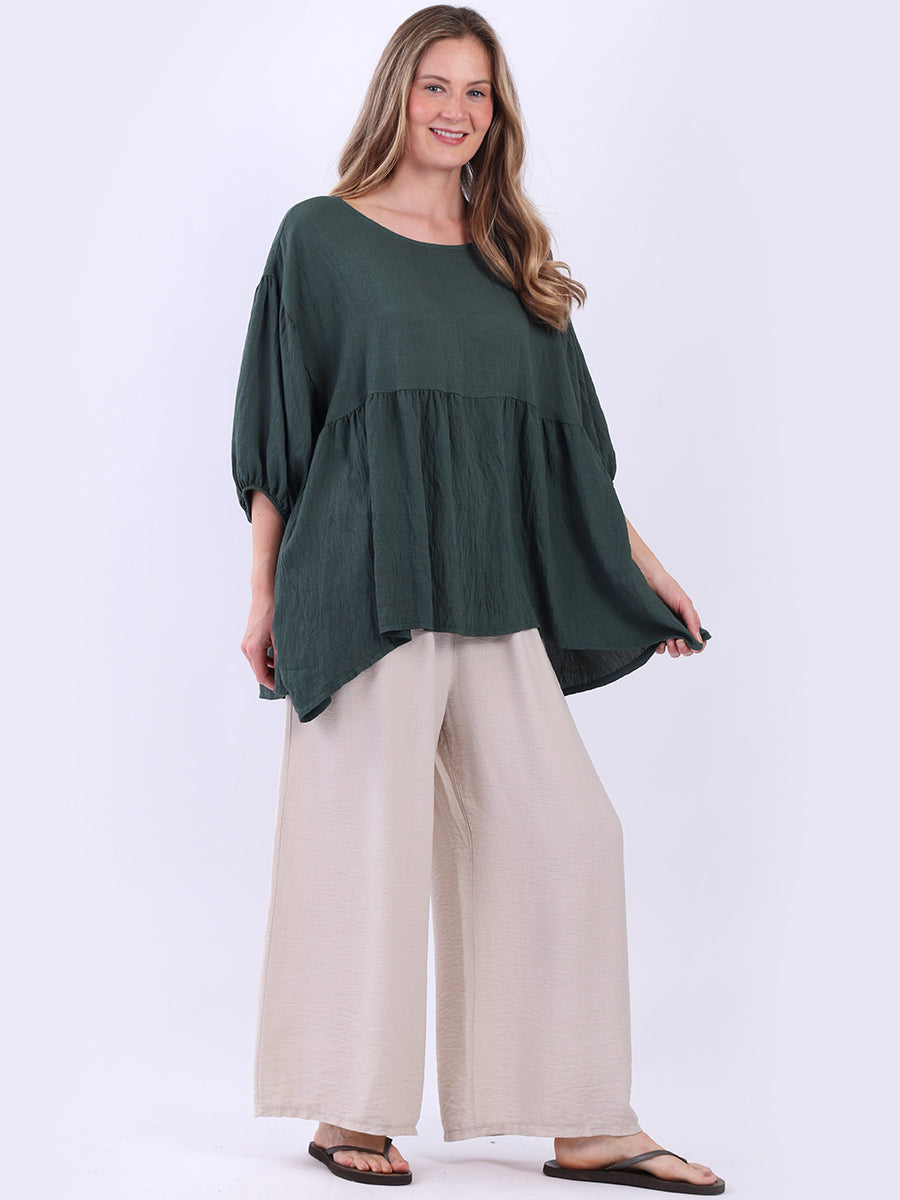 If you are looking to add a fun and feminine touch to your wardrobe, this women’s lagenlook peplum top is perfect! The boat neck gives it a classic look, while the bell sleeves and ruffle hem add a chic and flattering touch. It is great for dressing up with wide-leg pants for a sophisticated family gathering or special event. You will love how it adds a playful yet elegant vibe to any outfit!