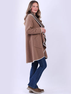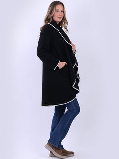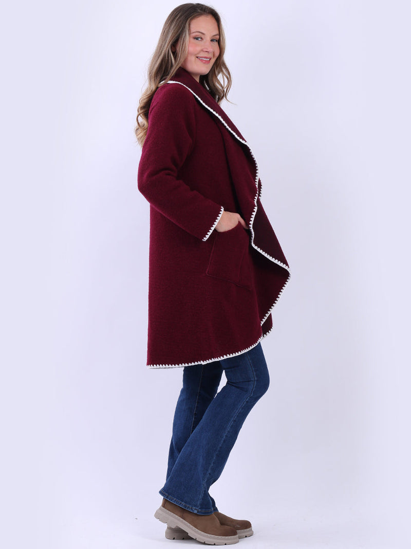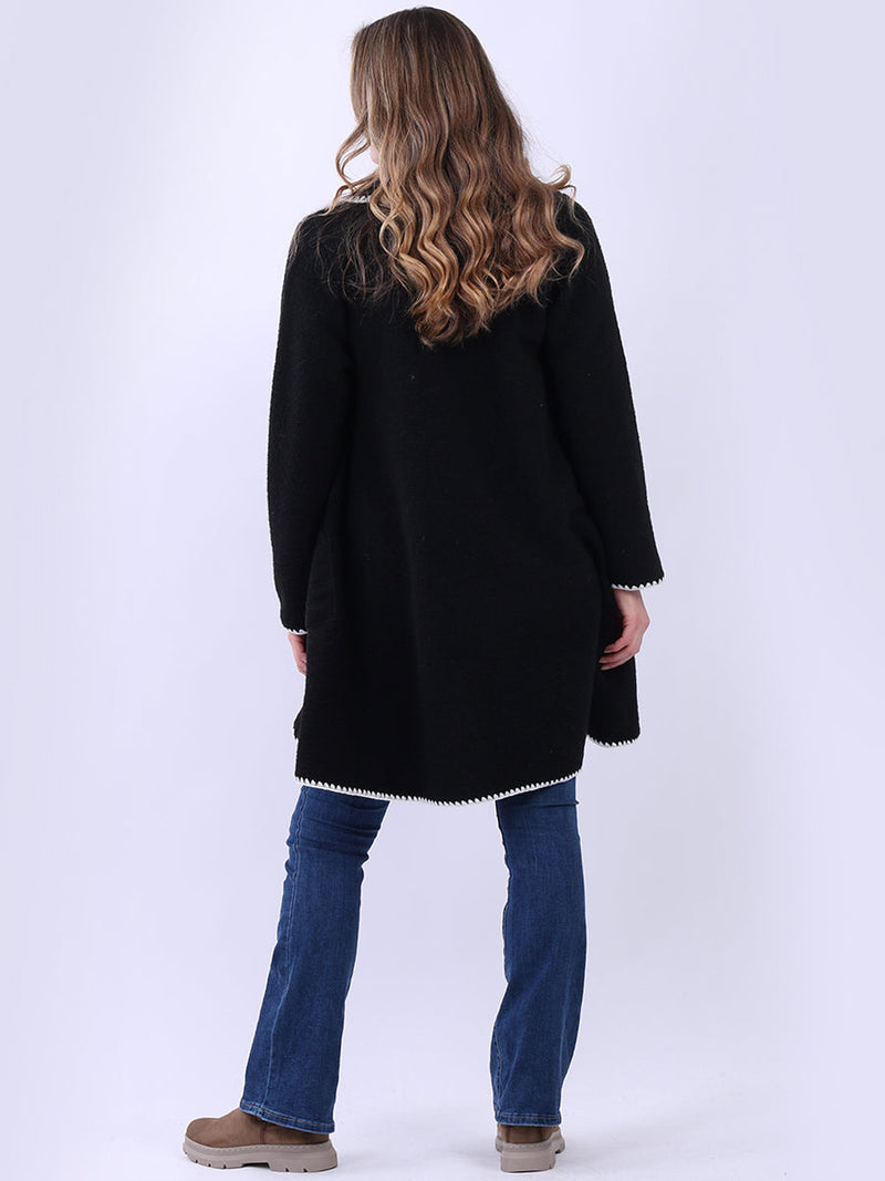 Wrap yourself in this luxurious made-in-Italy solid open-front coat, designed to keep you warm and stylish. The soft wool, contrasting blanket stitching, and waterfall neck bring both casual ease and elegance. With an baggy fit, this coat is perfect for plus-size women looking for a chic winter option that transitions seamlessly from day to night.