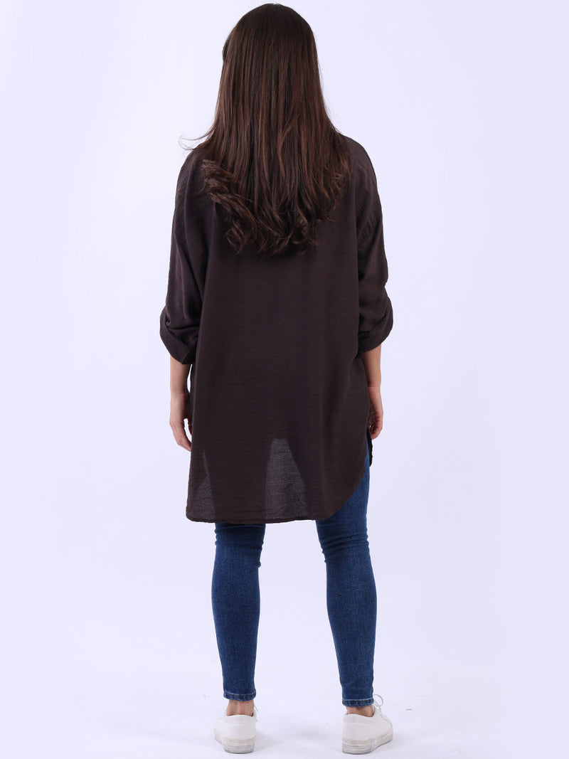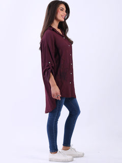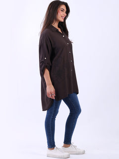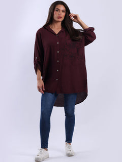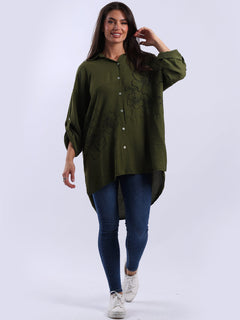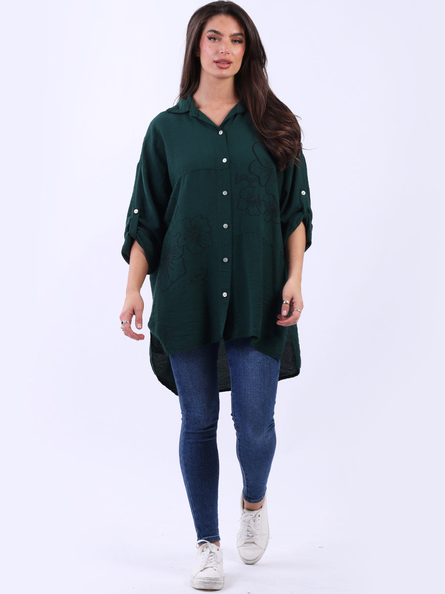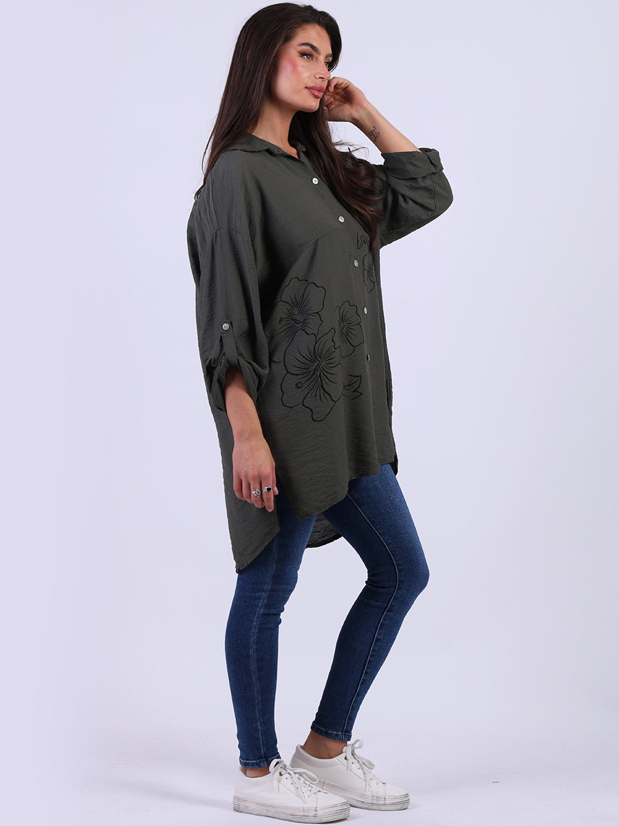 This Italian baggy shirt adorned with beautiful floral print. Featuring loose, relaxed fit with front buttons and dipped hem it adds a dramatic yet sleek touch to any outfit. Lovely ladies! Style it with wide-leg tailored trousers for a breathtaking look.