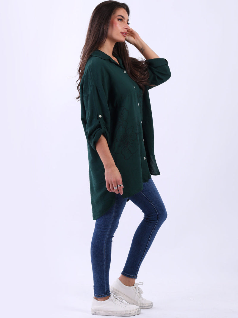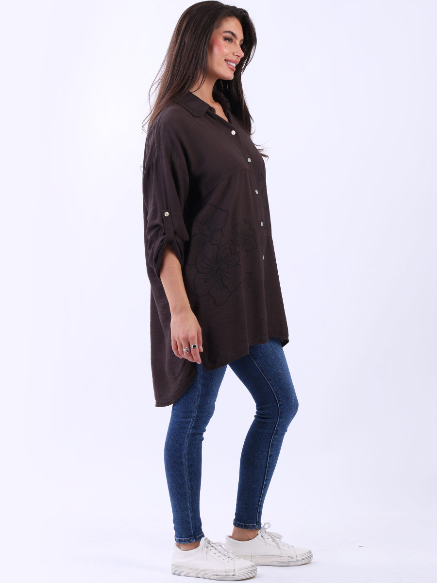 Button Down Floral Baggy Women Shirt