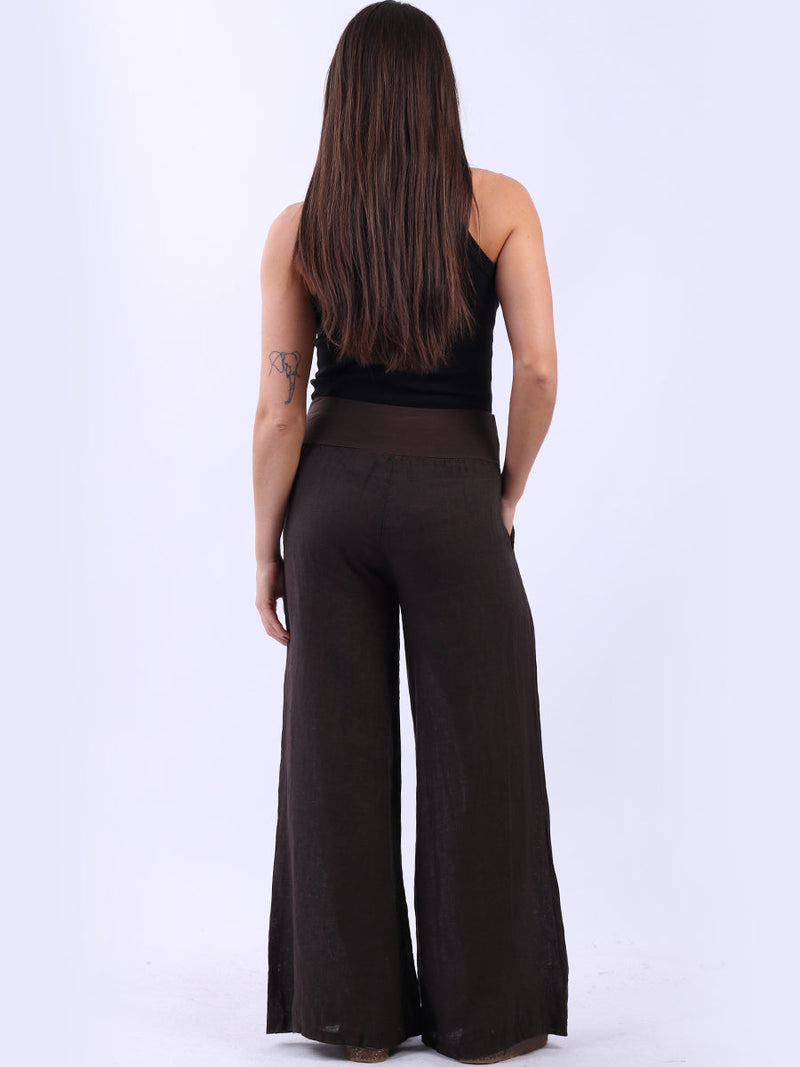 Made to perfection in Italy this is high quality linen palazzo trouser ideal for summer, fall and spring. Feel supreme comfort with this classy plain palazzo made from pure linen showcasing elasticated waistline, wide leg hem with functional side pockets.
