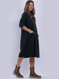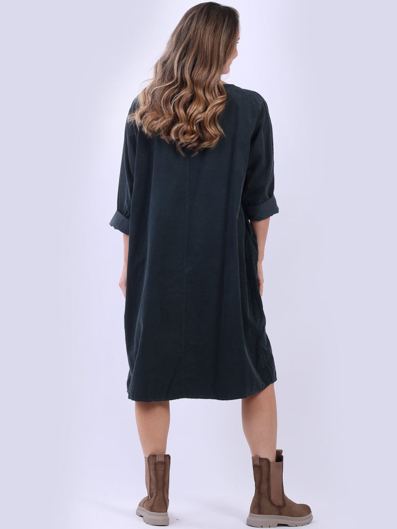 Simple, comfy, and effortlessly cool, that’s what this oversized solid corduroy dress is all about. With its slouchy, laid-back fit, it’s just right for plus-size ladies who love a casual, stylish look. The soft cotton fabric feels great, and it’s easy to throw on whether you’re lounging or running around during fall and winter. Add a touch of charm to your wardrobe with this chic piece.