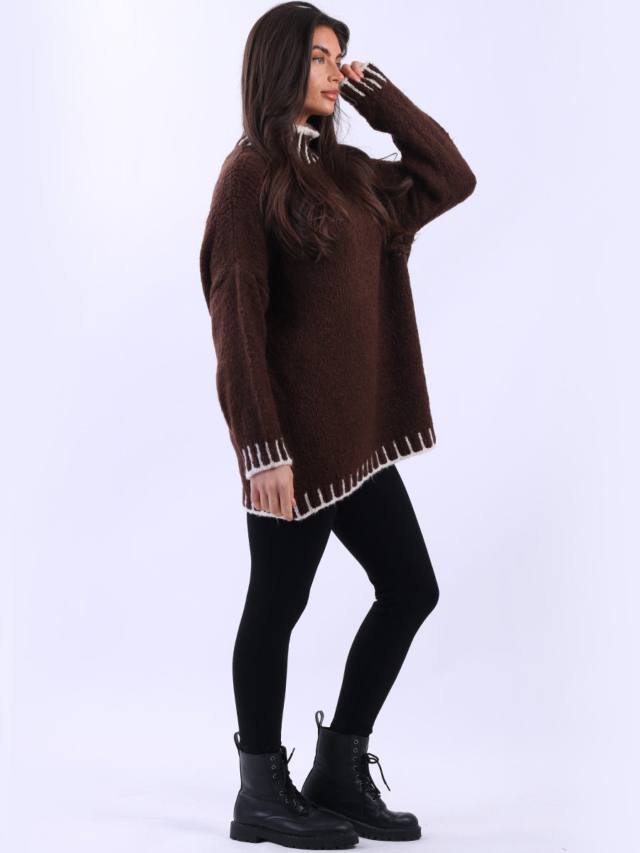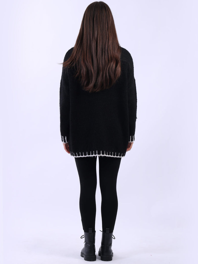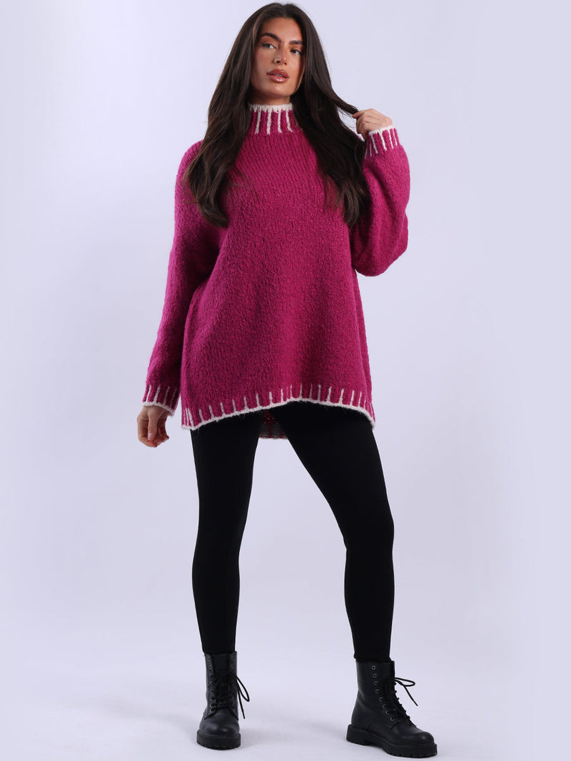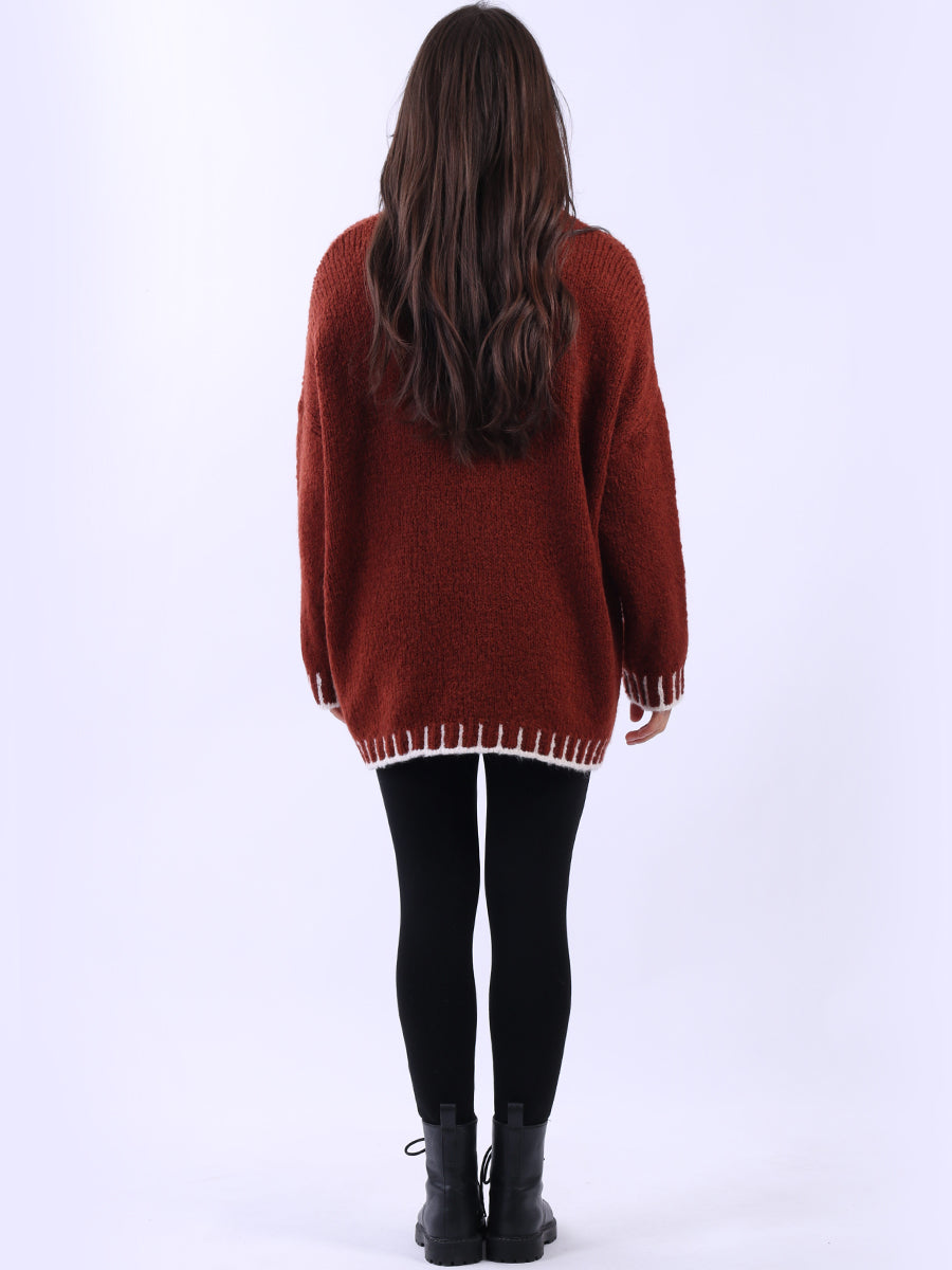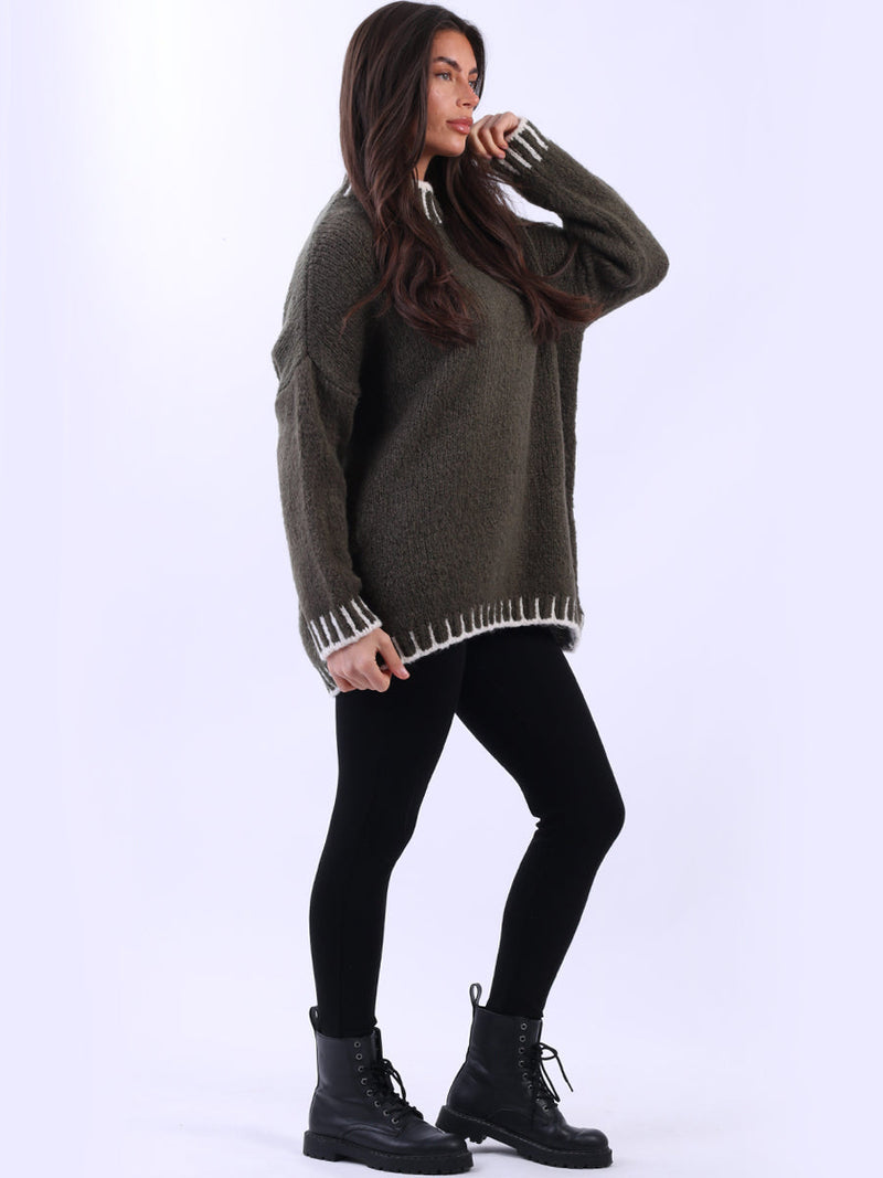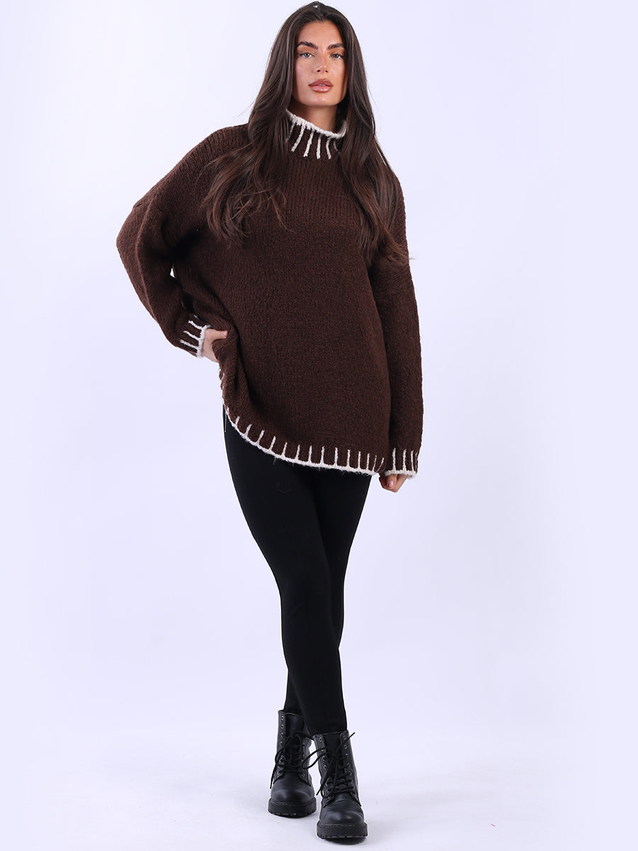 Chunky Blanket Stitch Knitted Wooly Jumper