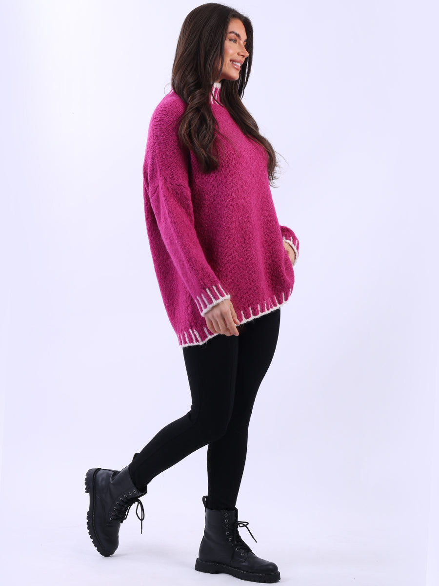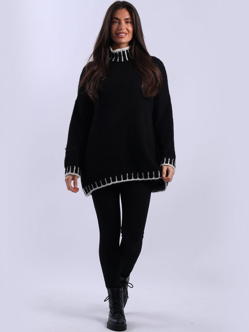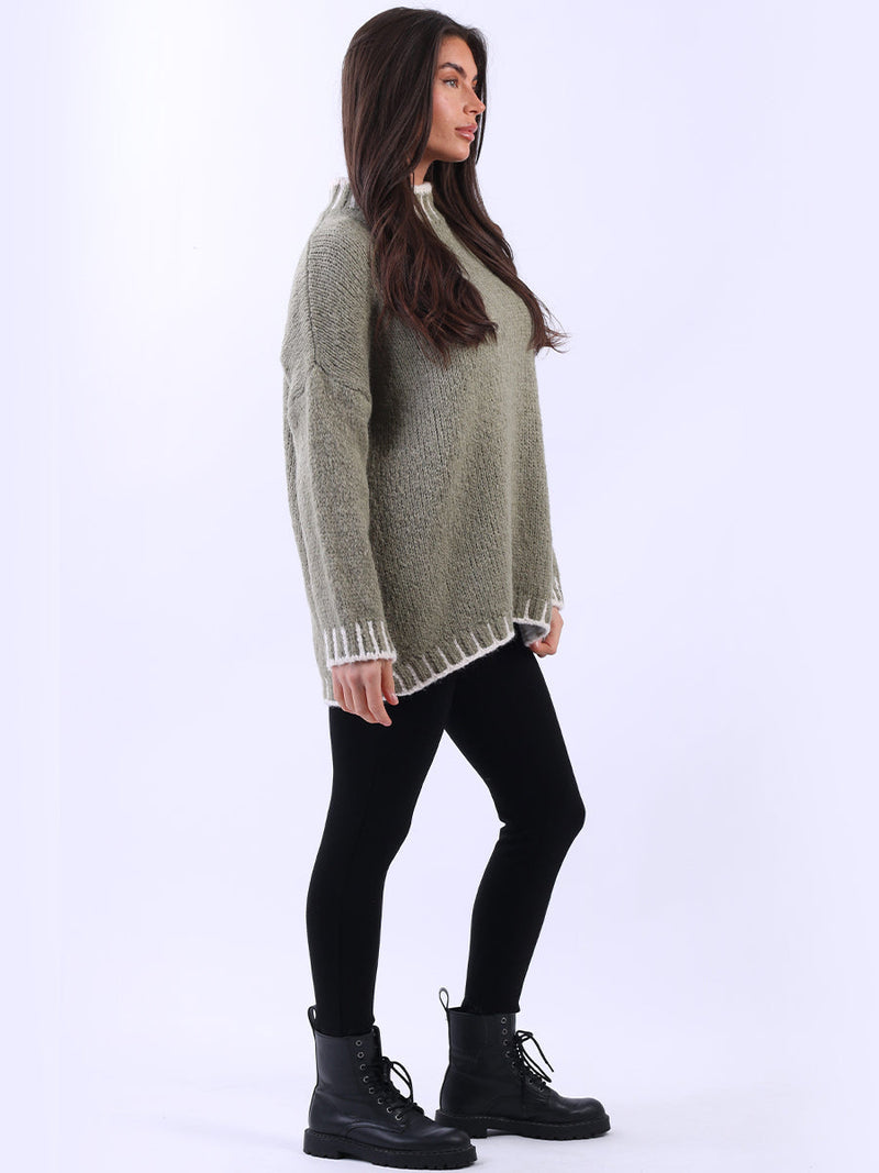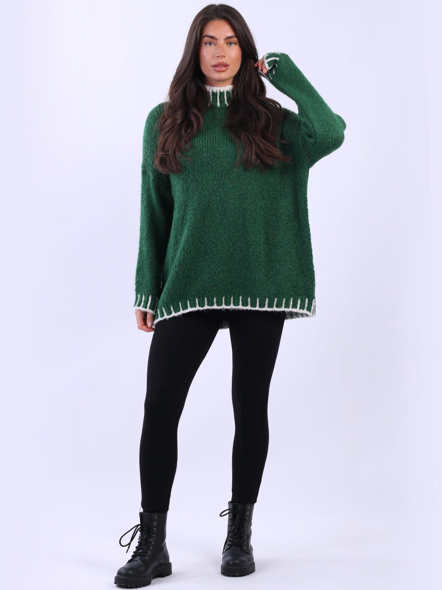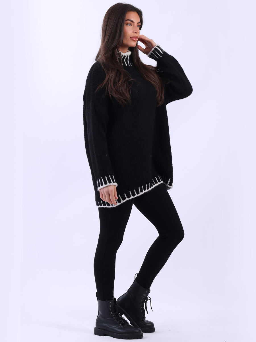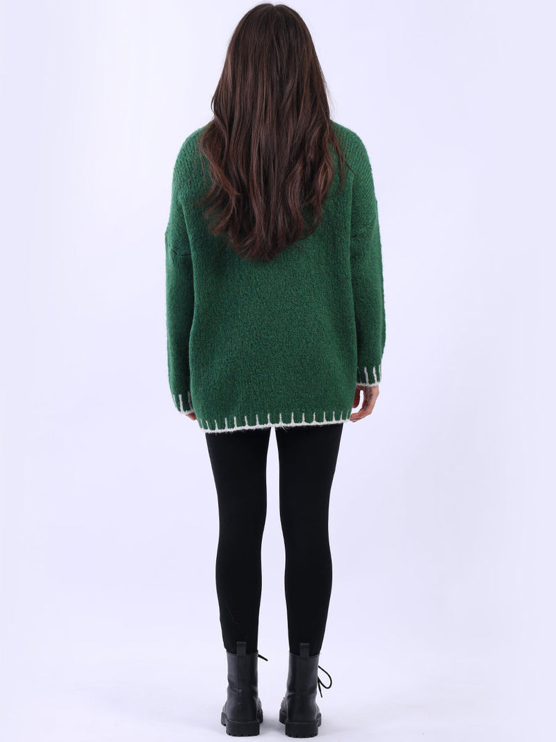 Chunky Blanket Stitch Knitted Wooly Jumper