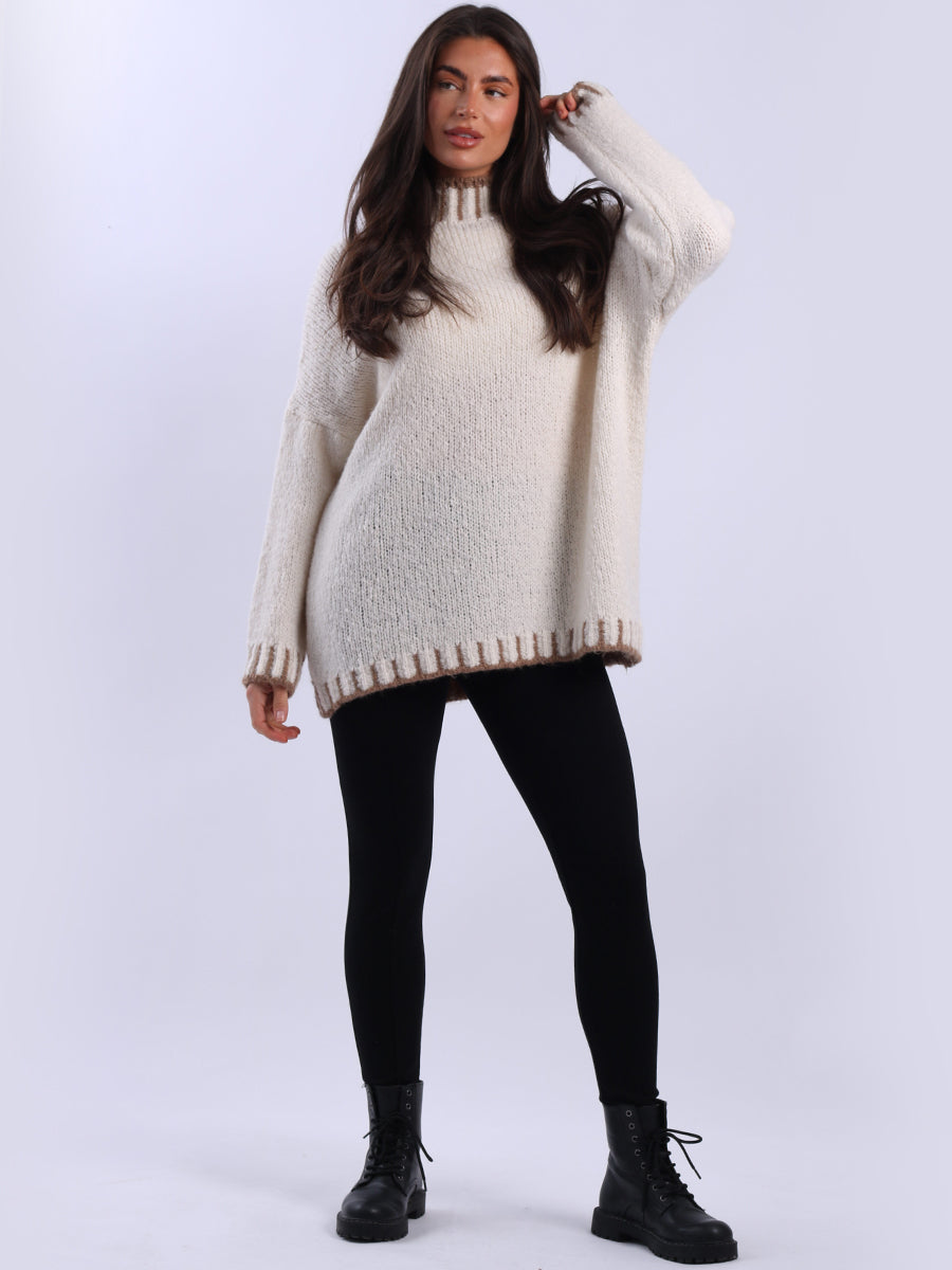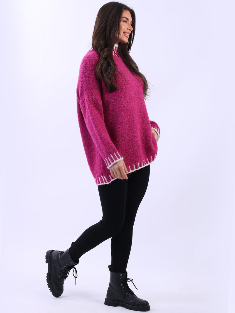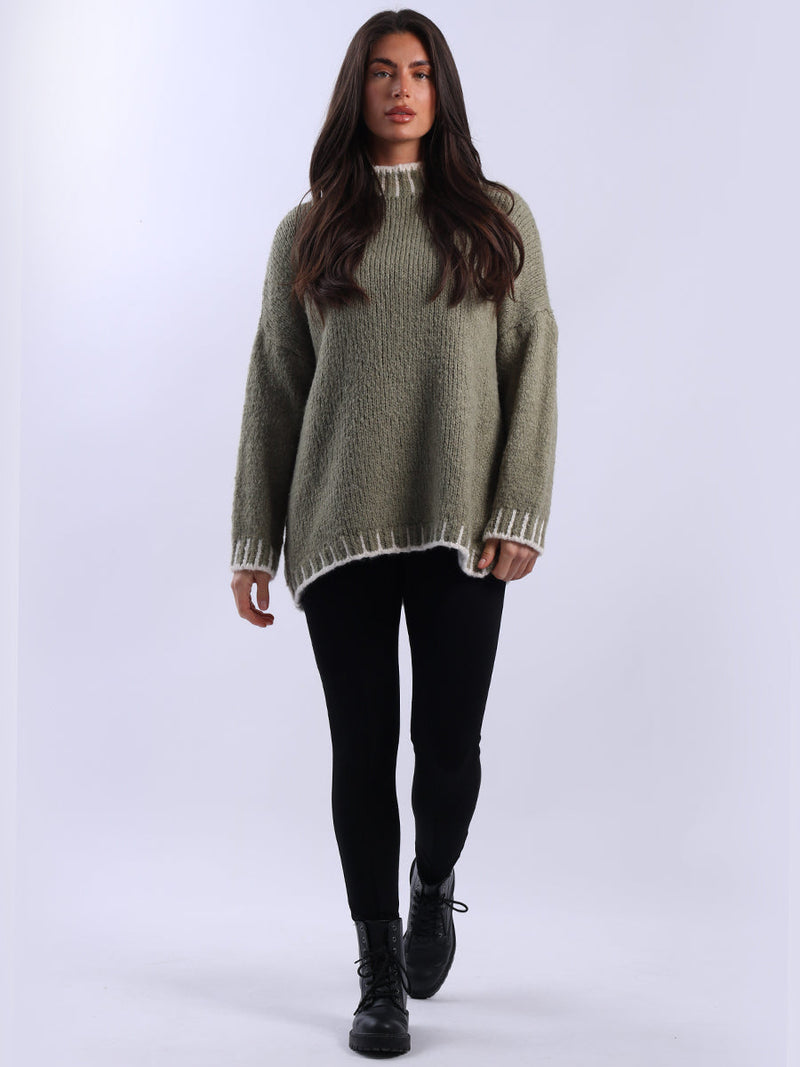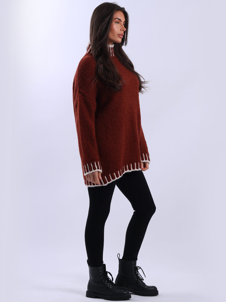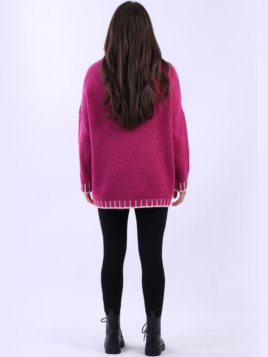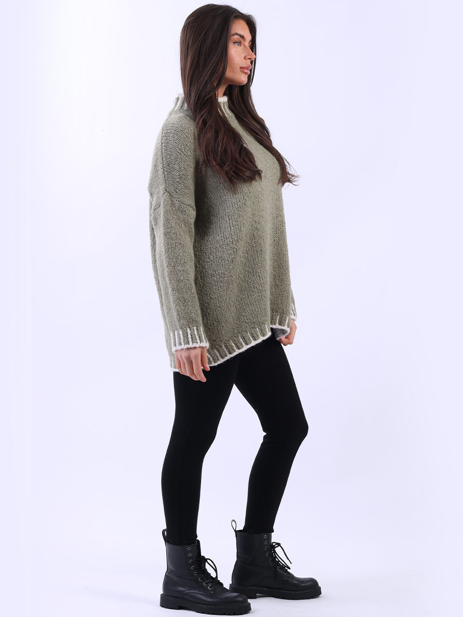 Chunky Blanket Stitch Knitted Wooly Jumper