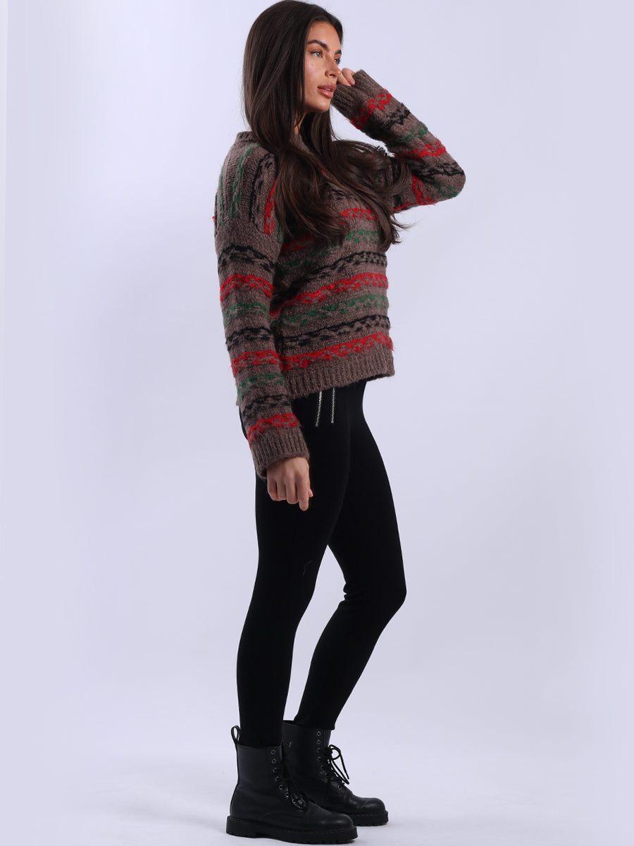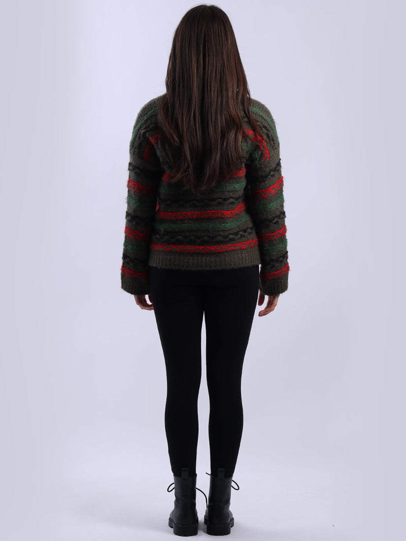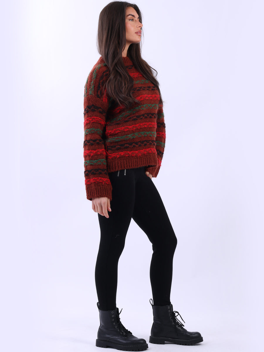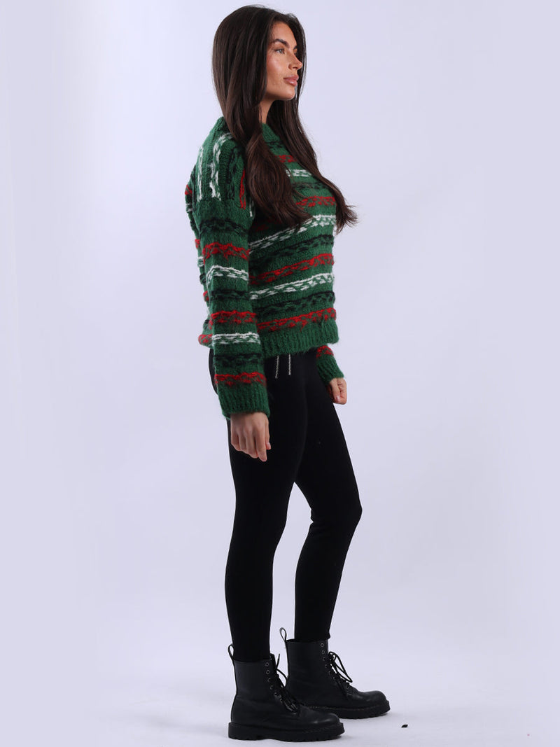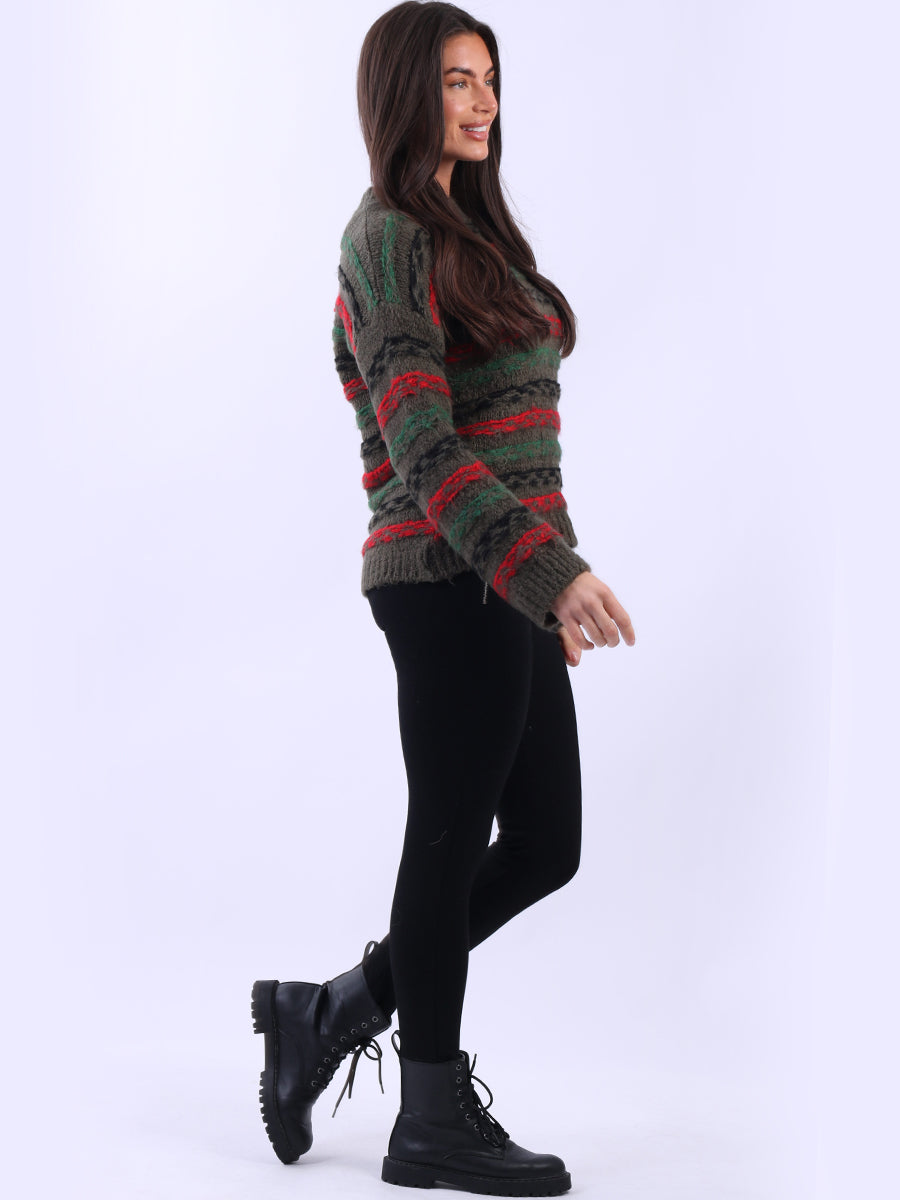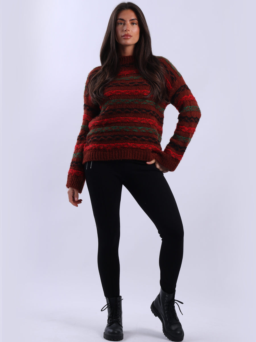 Inject a festive vibe to your winter wardrobe with this multi-colored striped jumper. All ready to wear on Christmas celebrations, this knitted jumper comes with a round neck and long sleeves, so you can have fun without compromising on comfort. A practical piece from our latest winter collection to style the way you want it.