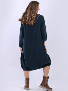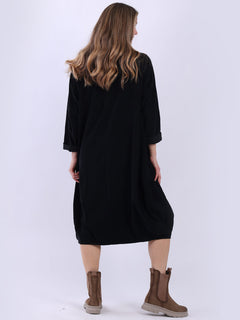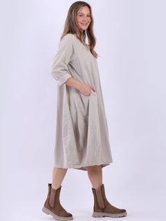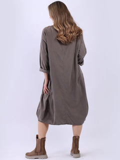 Women wearers! Let this plain lagenlook cotton corduroy dress address the chilly whispers of fall for you. Make it your companion in the deeper cold of winter with its classy and graceful design featuring a relaxed fit, side pockets and rolled-up sleeves. Pair it with a leather jacket and boots to make a statement at any casual or formal event.