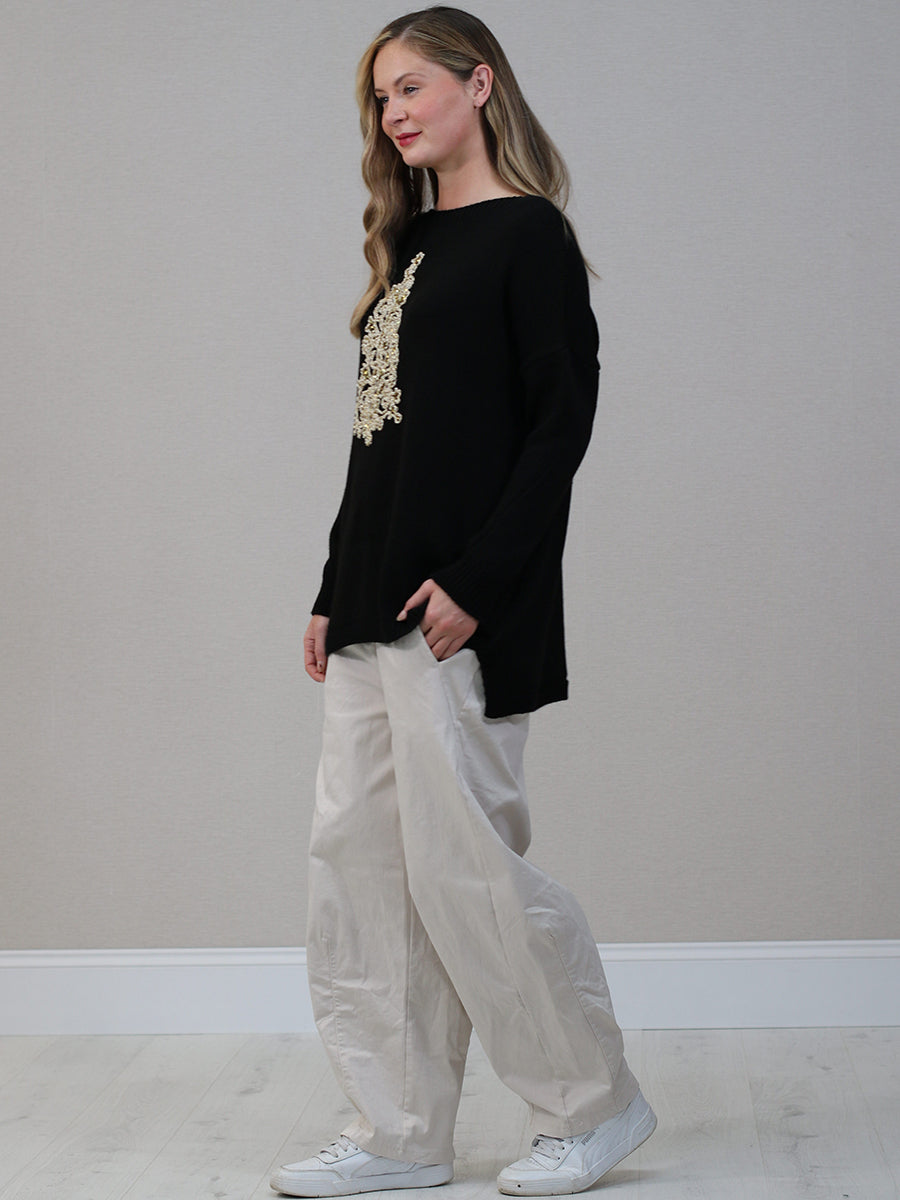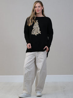 This gorgeous made-in-Italy crochet knitted jumper from Online Clothing Boutique will help you to shine this festive season. For those family photos or holiday dinners, the golden Christmas tree pattern lends a sophisticated touch. The subtle glitter finds the ideal mix of sparkle, keeping you warm and stylish all season long. Perfect for celebrating festive delight, it is as cosy as it is gorgeous!