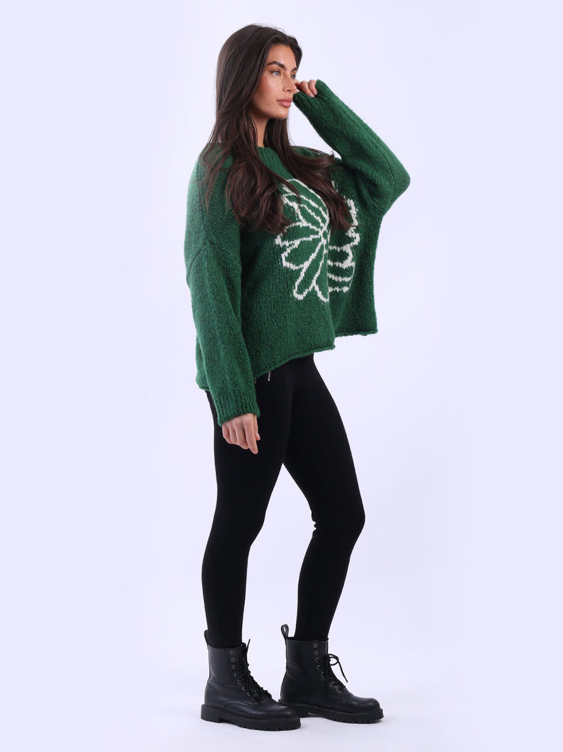 Get cosy with this women's baggy woolen jumper. Made in Italy, it features a floral knit pattern that boosts its delicacy and feminine charm. Relaxed fit with long sleeve and crew neck offers comfort and grace effortlessly. Pair it with neutral shade bottoms for a timelessly elegant look.
