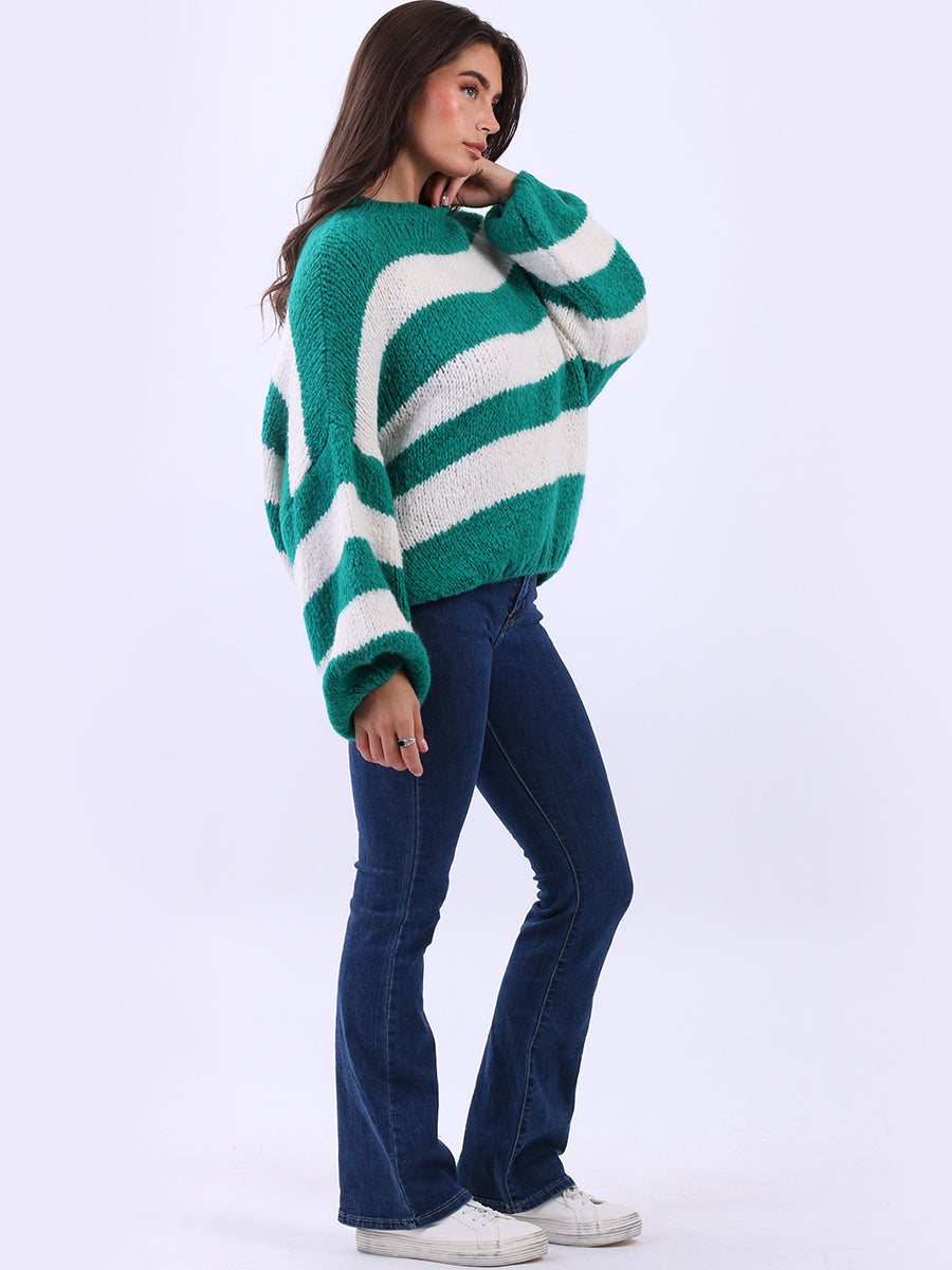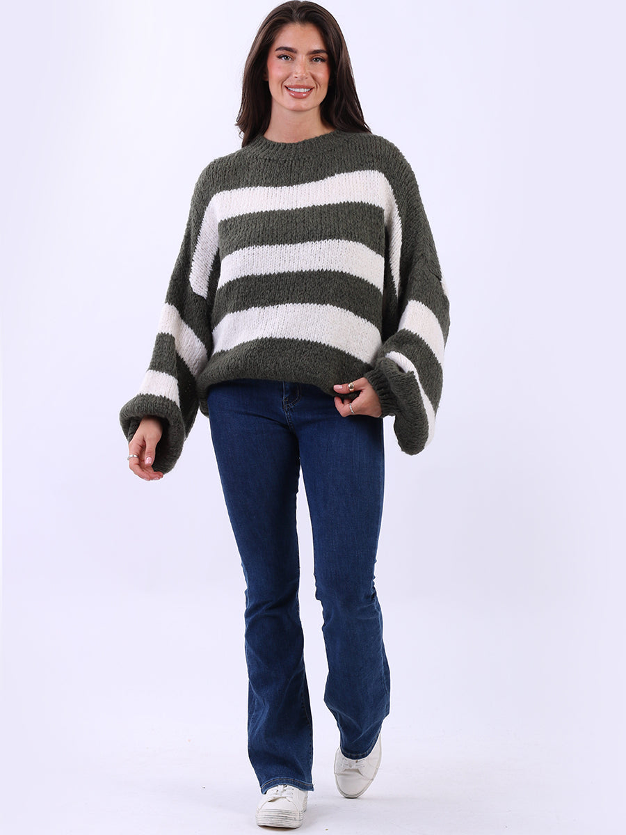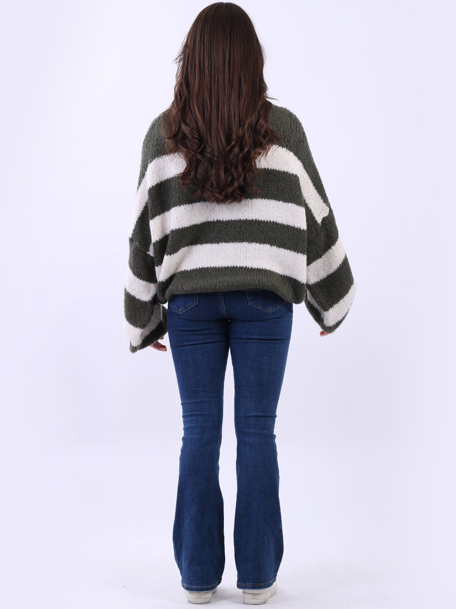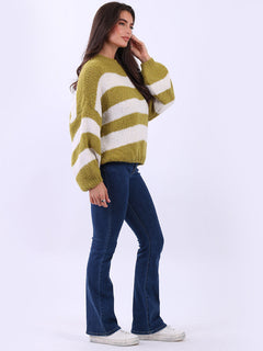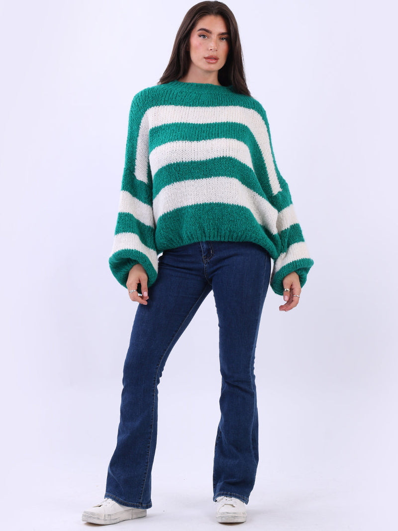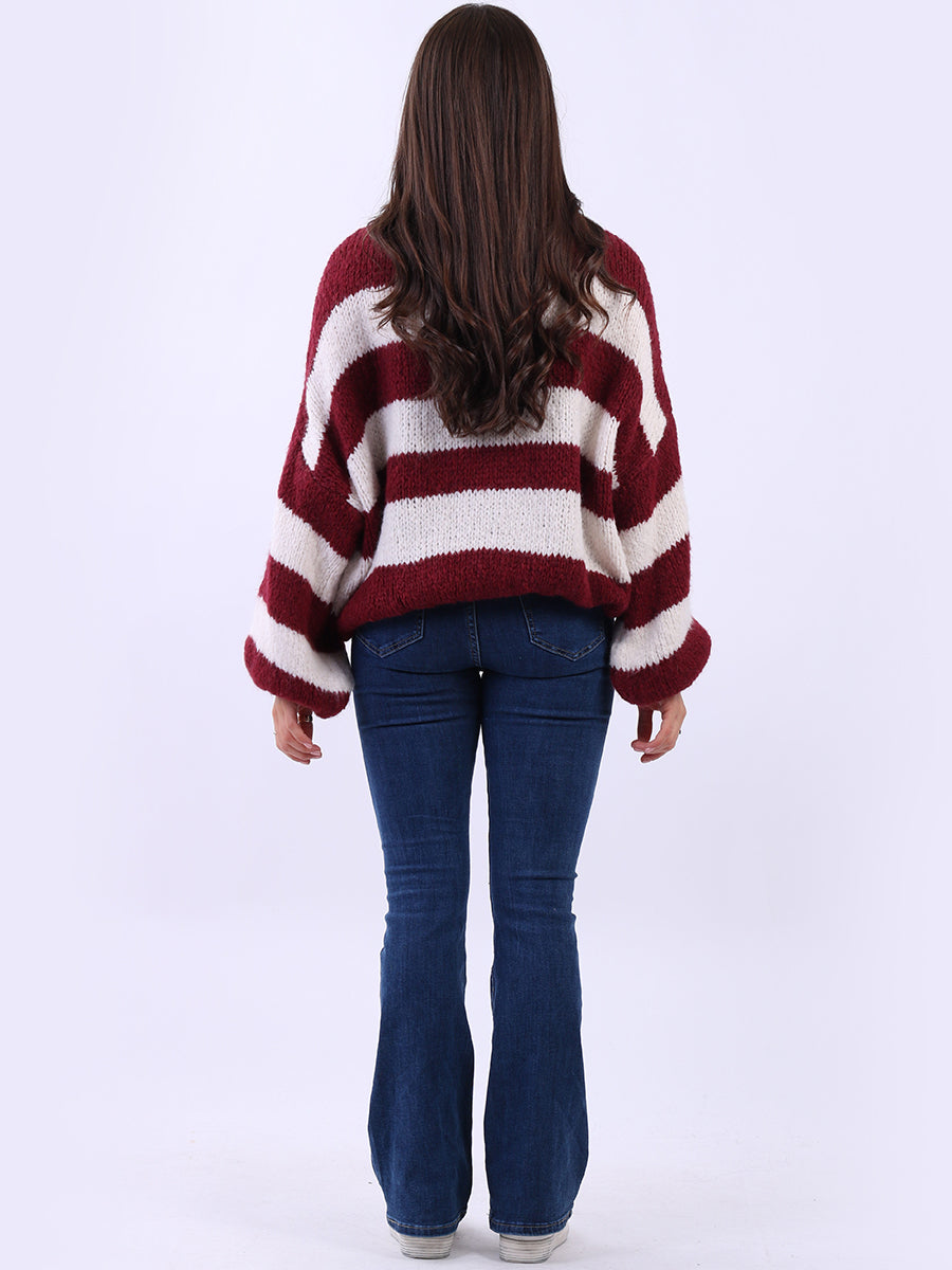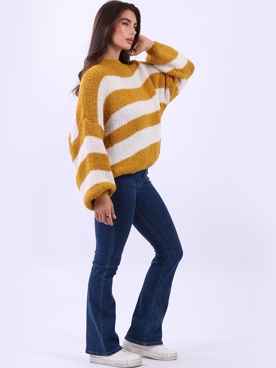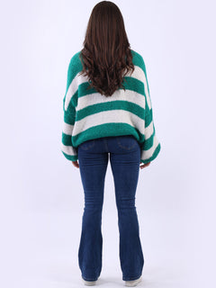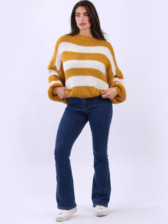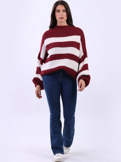 Designed for plus-size women wearers, this knitted wool jumper in a batwing design is sure to give a soft and warm feel. The stitch details in a stripy pattern exude a stylish look, completing the piece. The loose baggy fit provides a sense of room and ease, perfect for layering over a top as ladies desire.