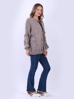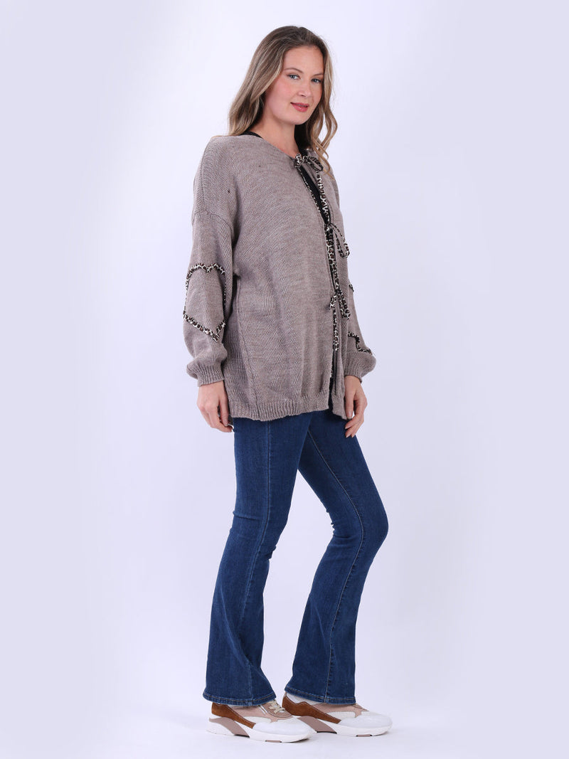 This oversized knitted cardigan is both cozy and stylish, with bold leopard print tie details that give it a bold touch. The baggy fit is great for layering in the colder months, and you’ll love how easily it pairs with your fall and winter outfits.