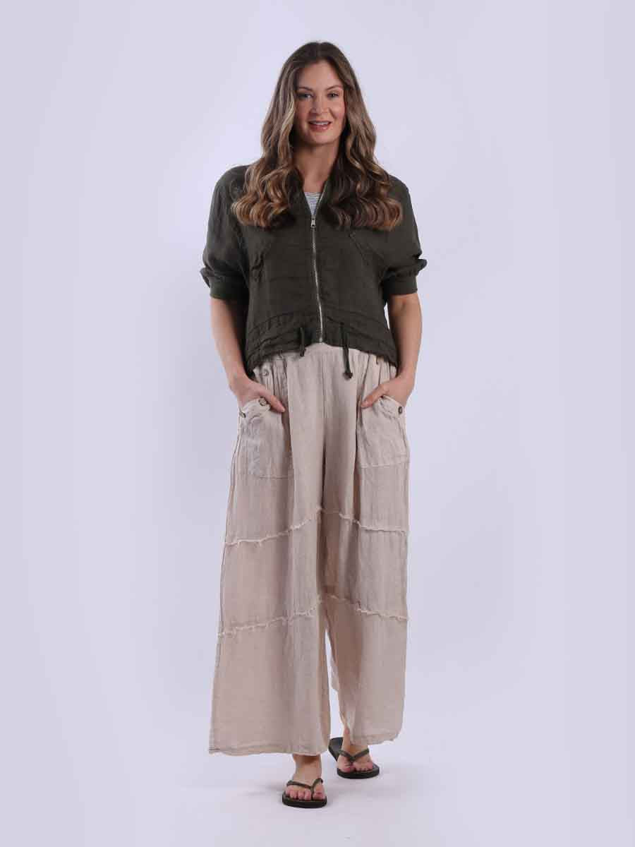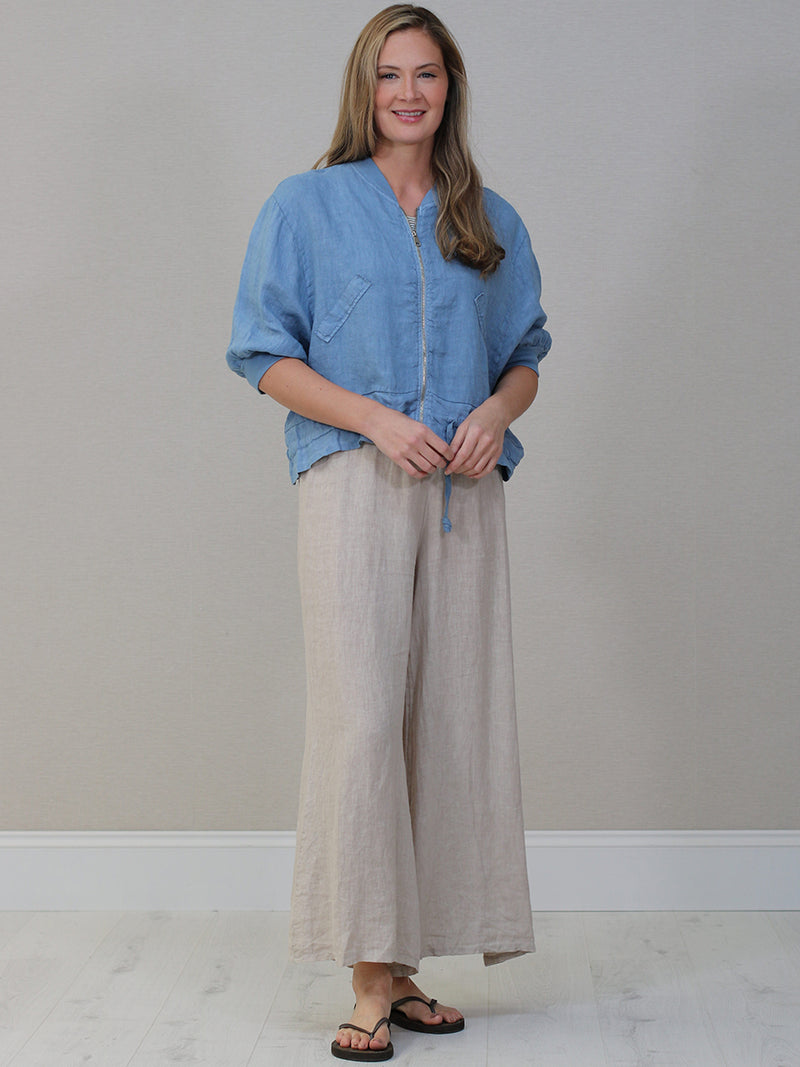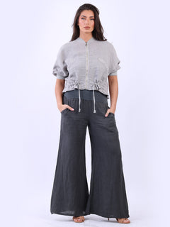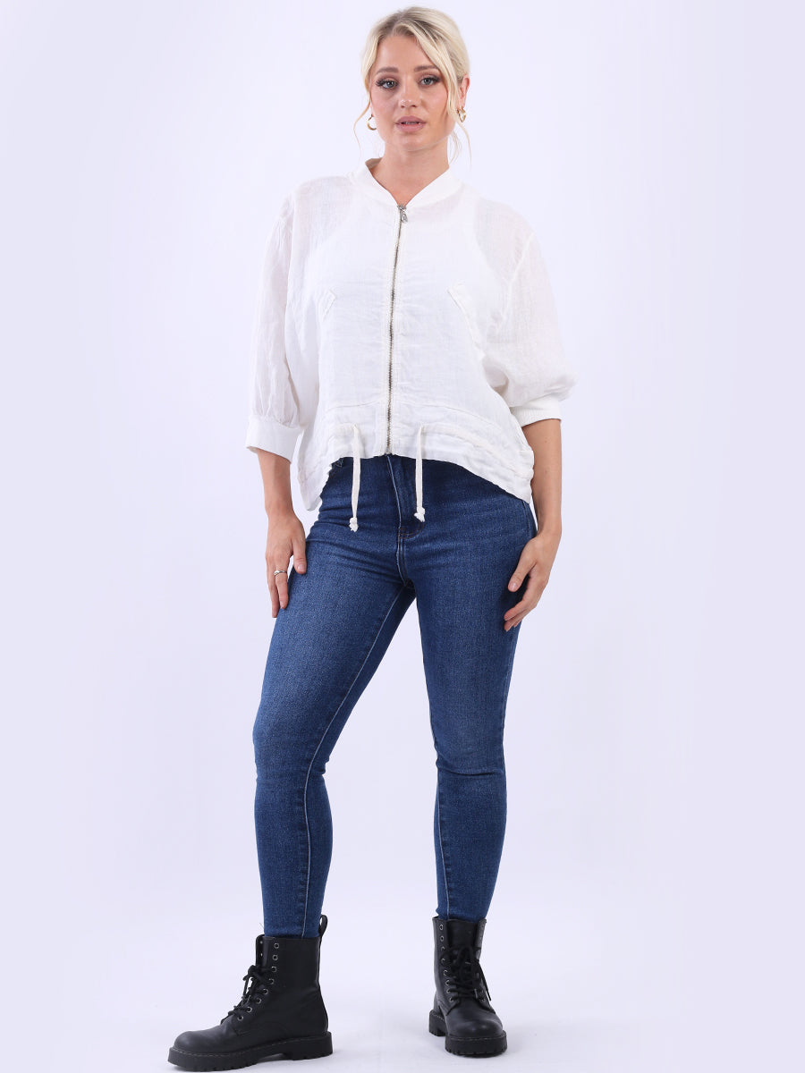 Front Zip Ladies Linen Ribbed Crop Jacket