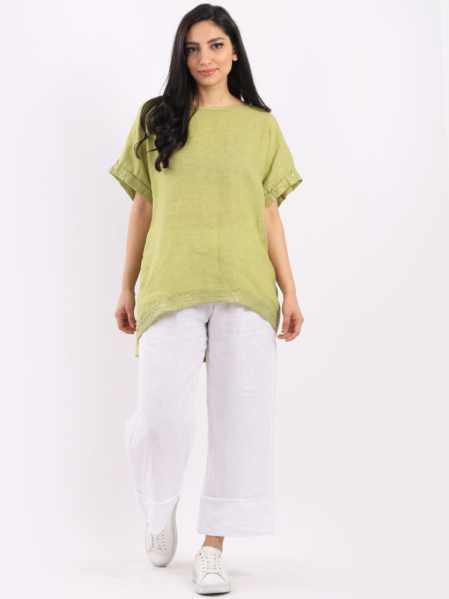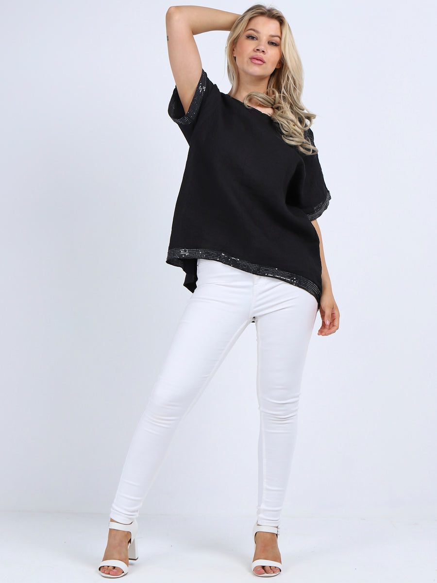 Glitzy Sequins Linen Hi-Lo Casual Top