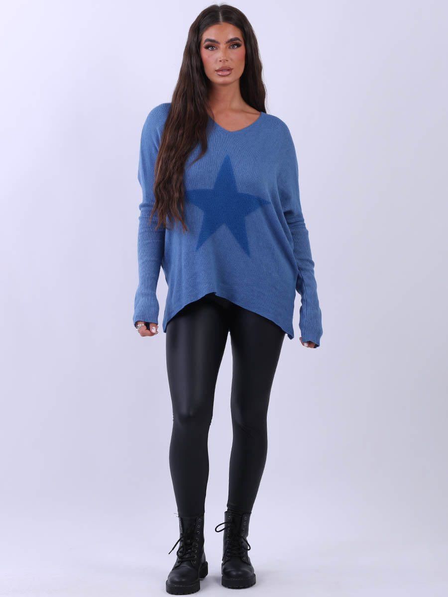 Italian Knitted Star Print Plus Size Ladies Jumper