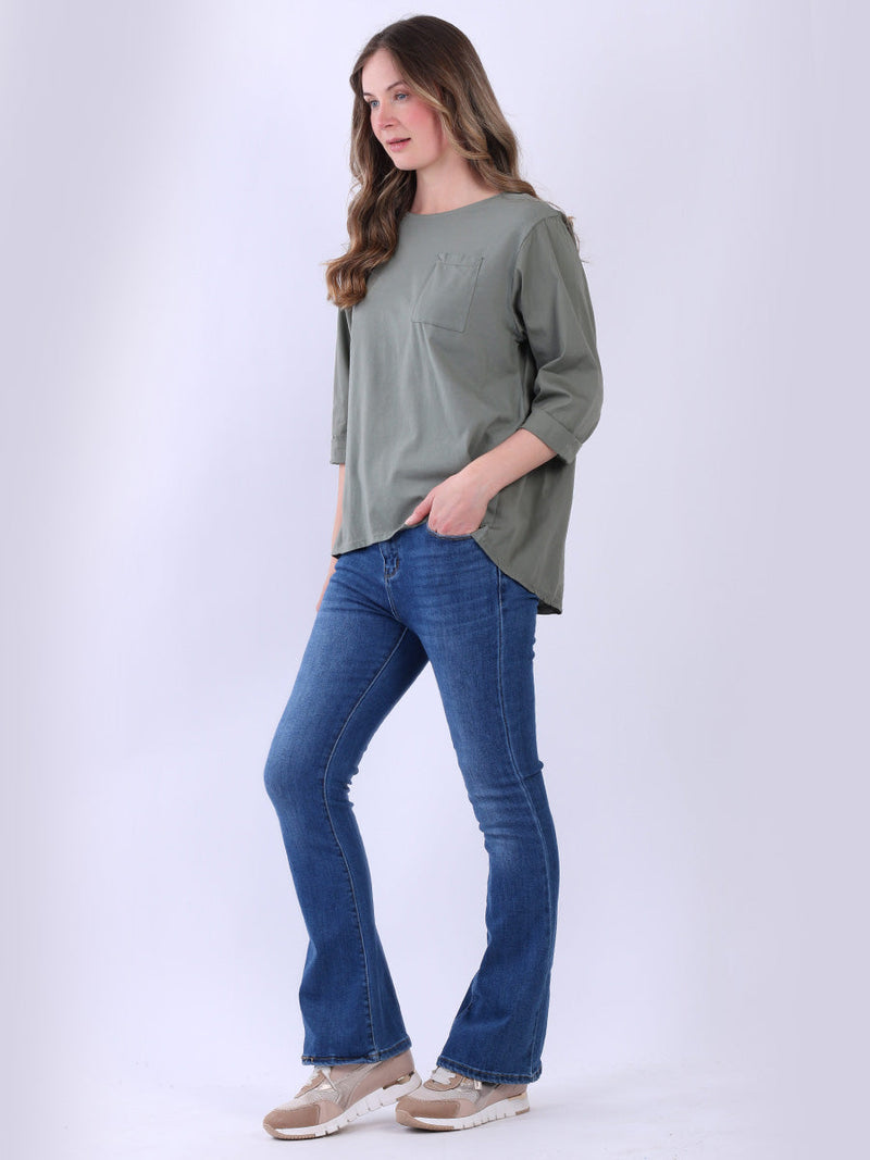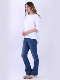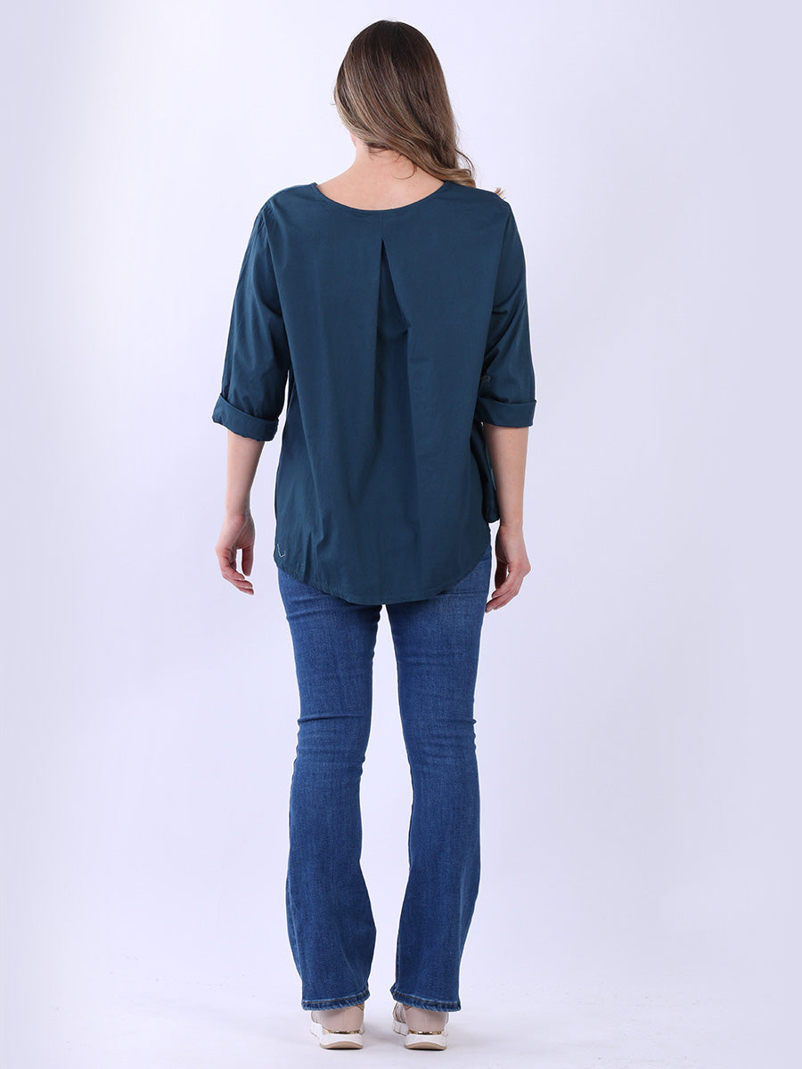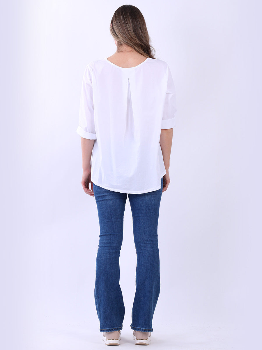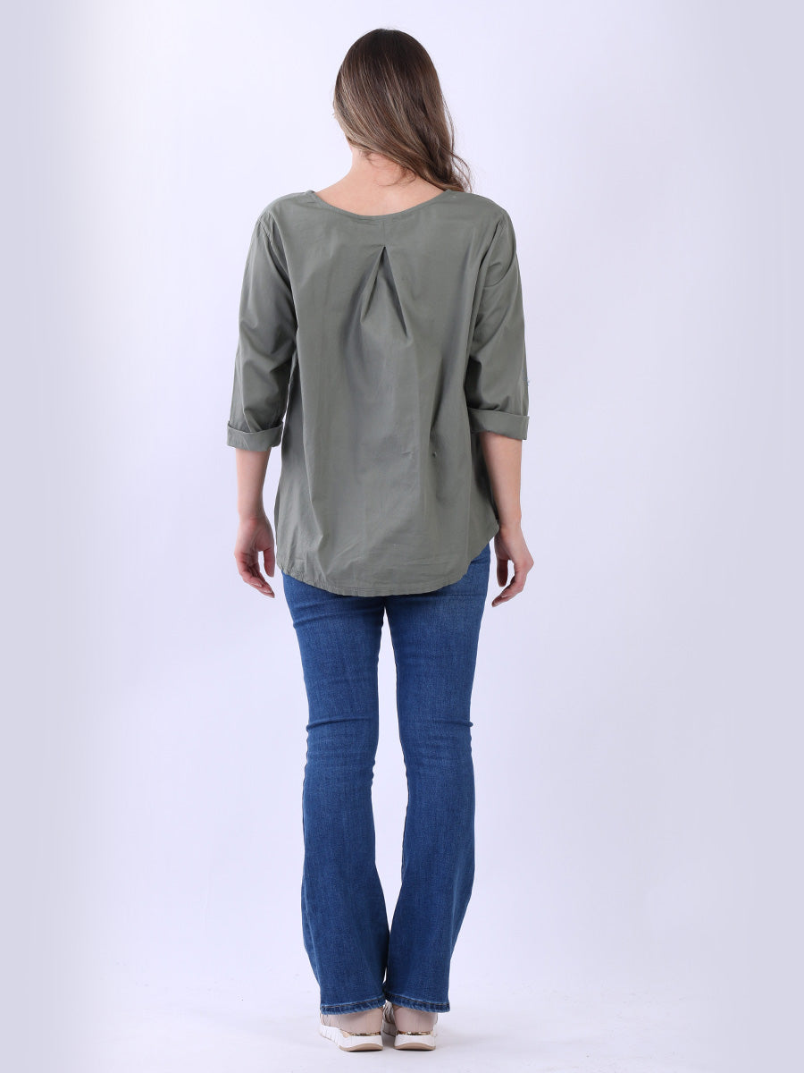Fashion boutique presents this lightweight and breathable cotton collection. Made in Italy, this plain top is perfect for relaxed, warm-weather styling featuring a flattering round neckline, rolled up sleeves, high low hem and front pocket. Ladies can mix and match this plus size top with wide leg trousers for a perfect casual look.