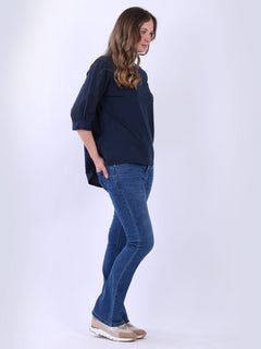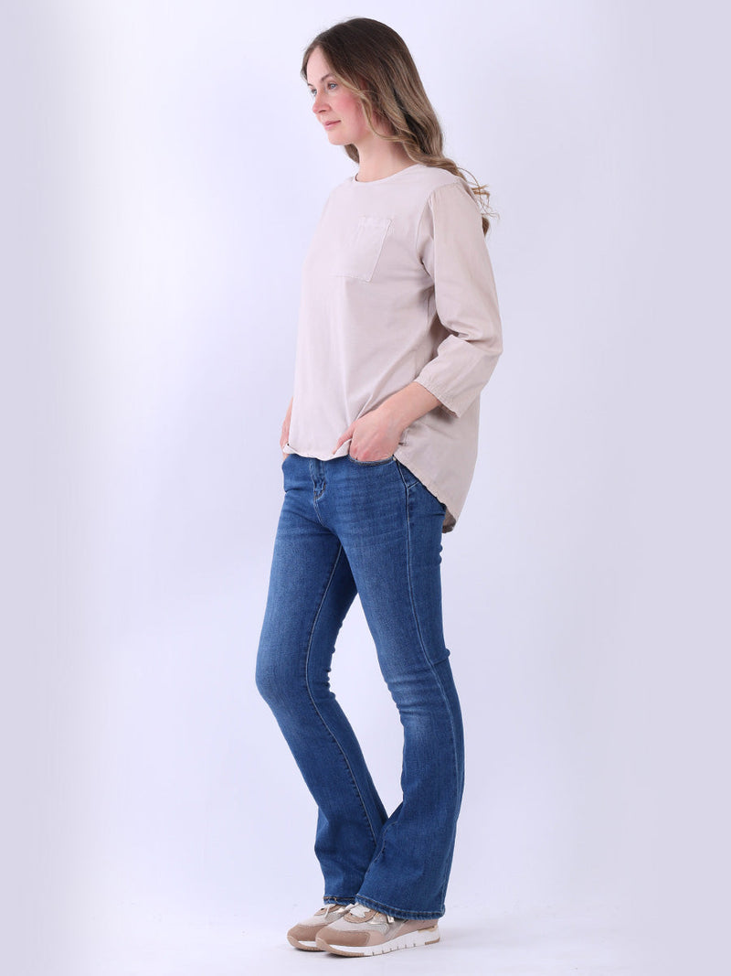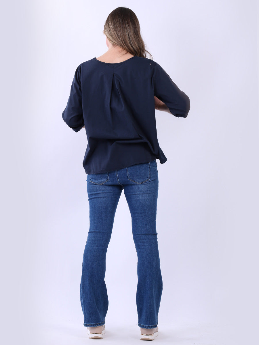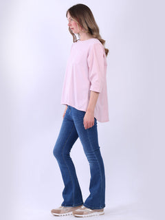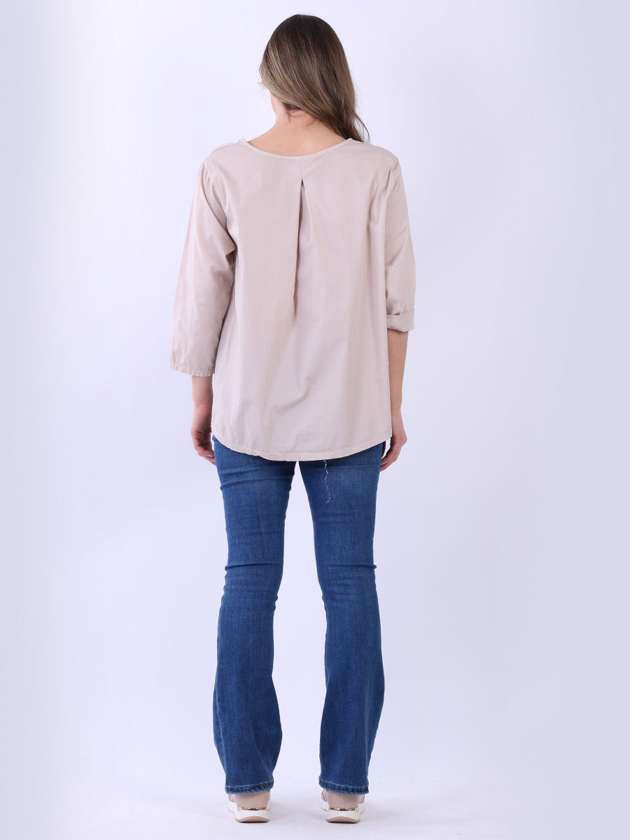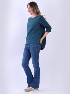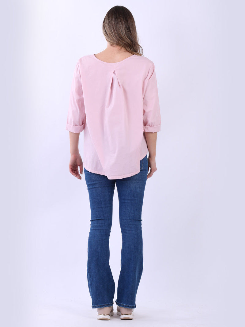 Fashion boutique presents this lightweight and breathable cotton collection. Made in Italy, this plain top is perfect for relaxed, warm-weather styling featuring a flattering round neckline, rolled up sleeves, high low hem and front pocket. Ladies can mix and match this plus size top with wide leg trousers for a perfect casual look.