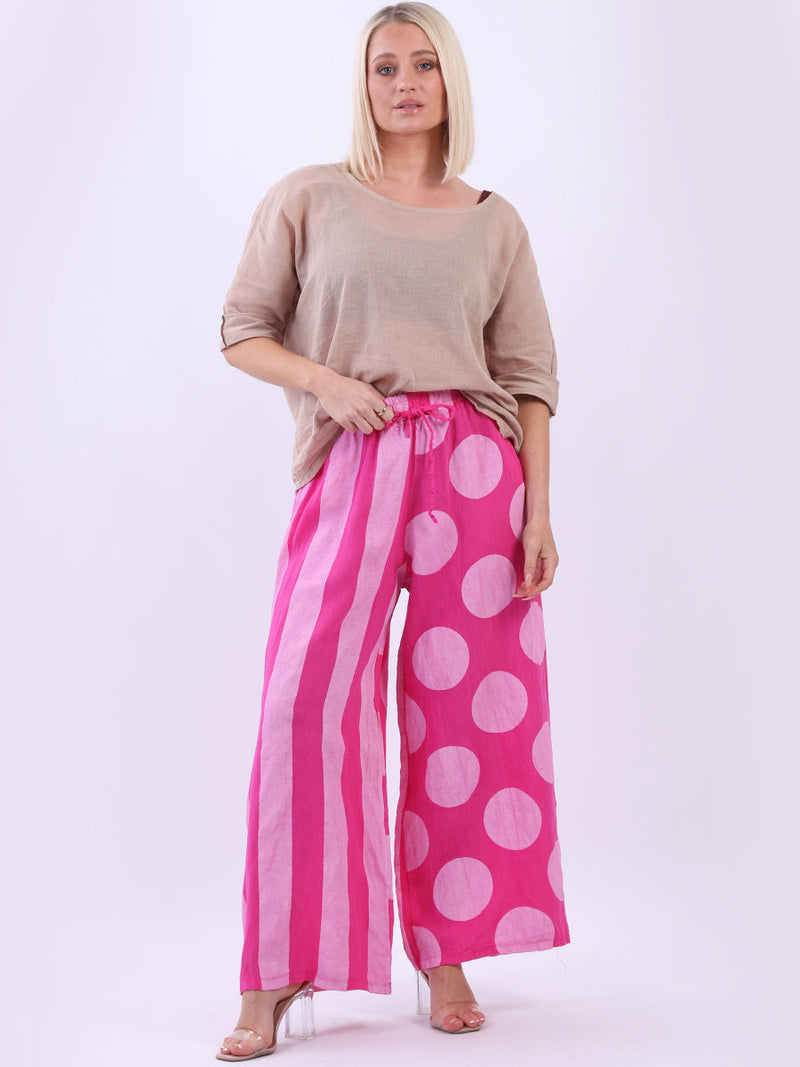 Ladies Linen Striped Polka Palazzo Trouser