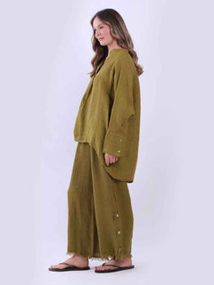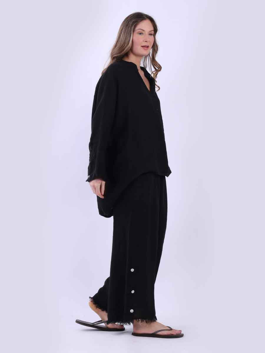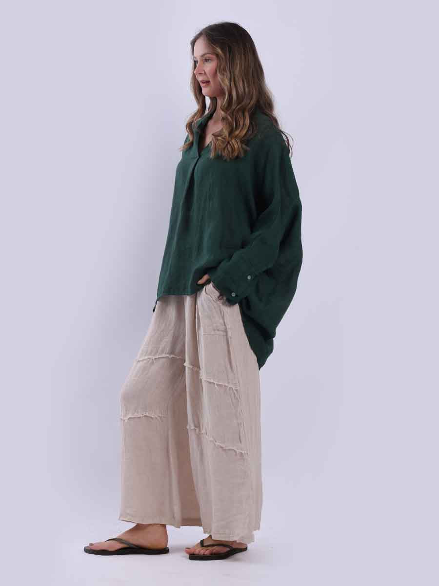 This linen top is super comfy and perfect for a warm summer day. The lagenlook fit and batwing sleeves give it a relaxed yet dramatic look, almost like something out of a fairy tale. The hi-low hem gives it a nice touch, making it great for day activities or lovely evening walks.