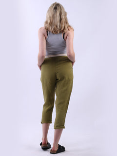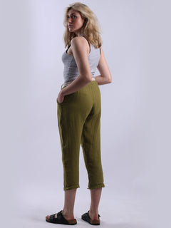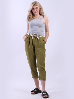 Stay cool and casual with these regular fit linen summer trousers by Kuggi Fashion Clothing Store. These trousers features side pockets, turn up hem and waist belt. A must have item for women.