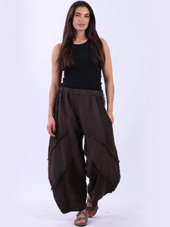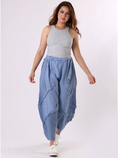 Ladies Plain Linen Mesh Net Slouchy Trouser