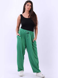 Ladies Plain Relaxed Fit Slouchy Cotton Trouser
