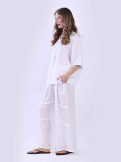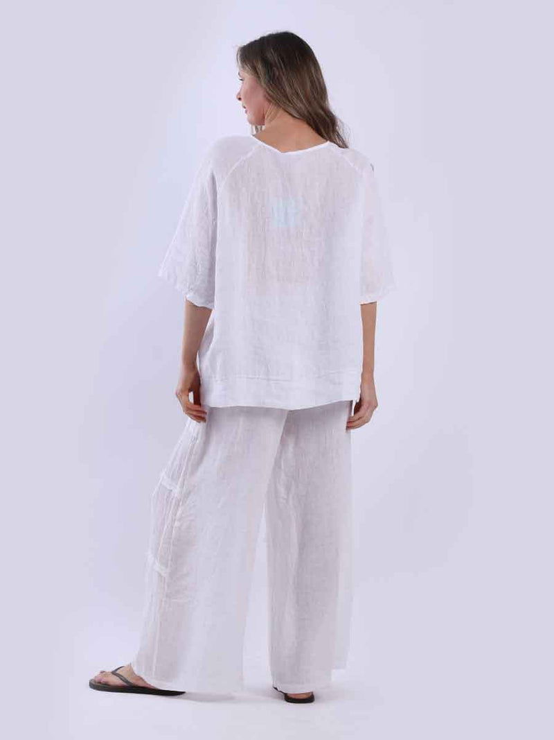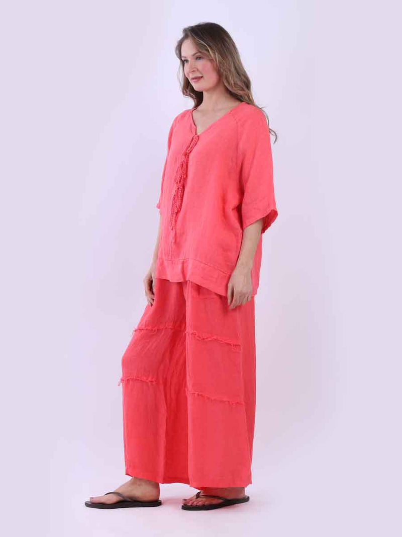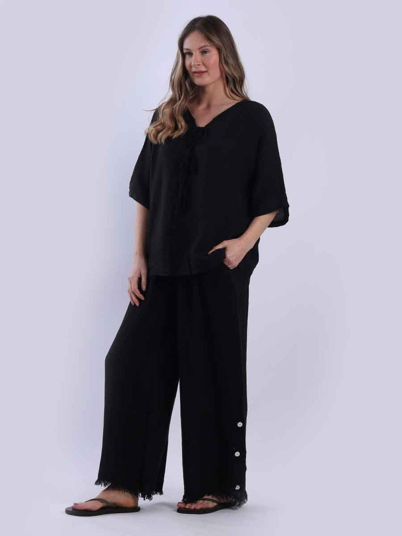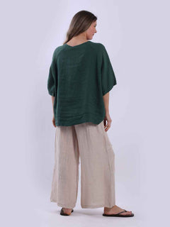 Ladies Plain Triple Tie Knot Linen Top
