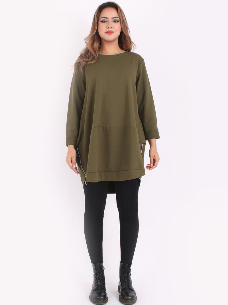 Ladies Plus Size Zipped Hem Italian Cotton Top