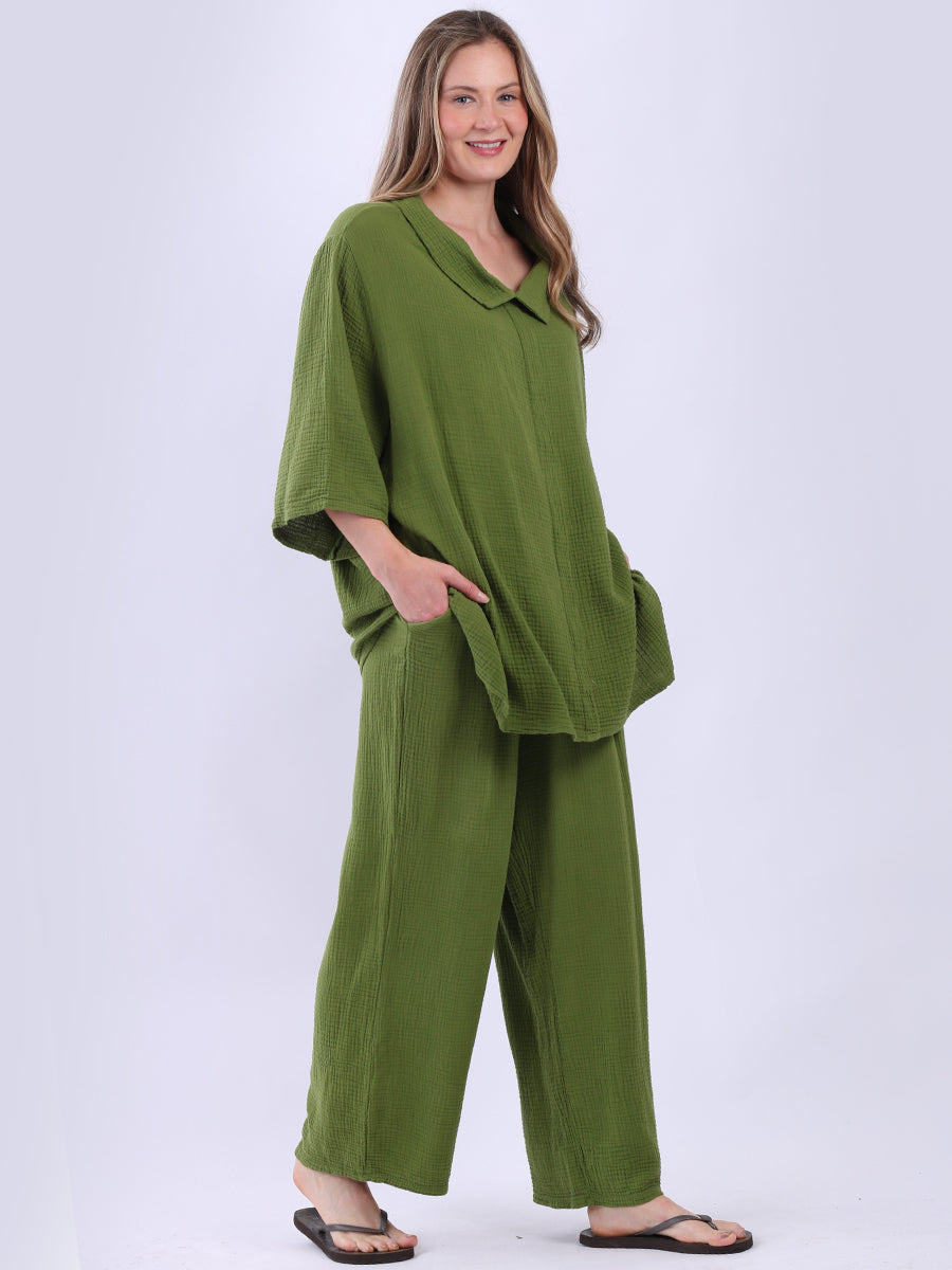 Made In Italy Cowl Neck Solid Cotton Top