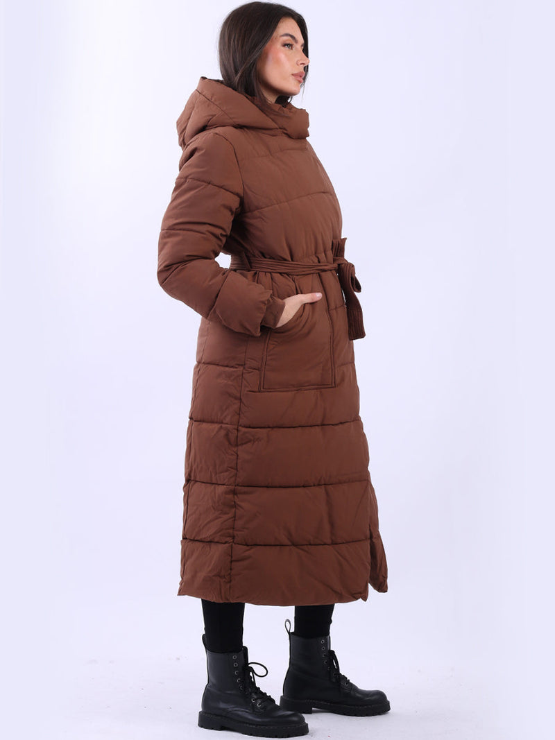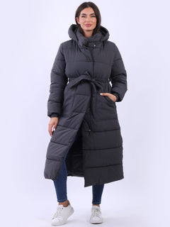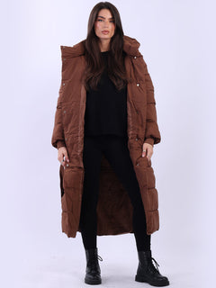 Update your fashion collection with this Made In Italy clothing latest winter collection of coats and jackets. This ladies oversized hooded coat boasts an attached hood, front zipper enclosure, and convenient front pockets - a perfect blend of style and practicality. The fitted waist belt makes it a flattering silhouette. Pick this cosy winter puffer hooded coat from online clothing store's fresh arrivals to level up your fashion game.