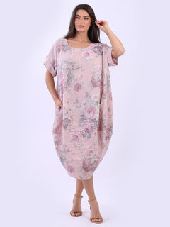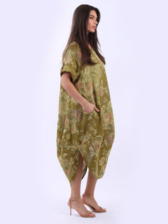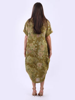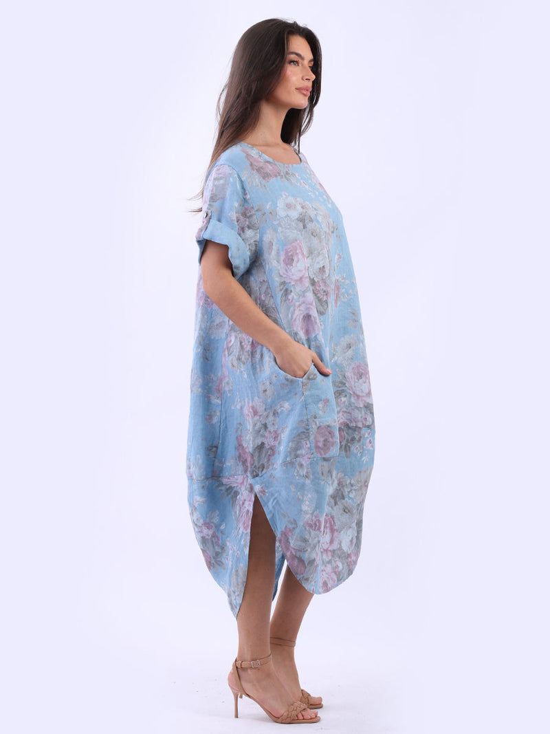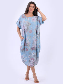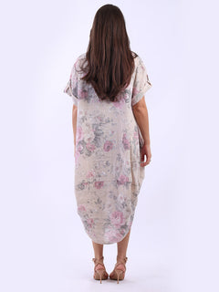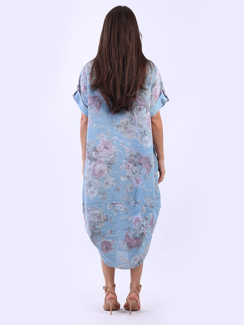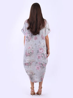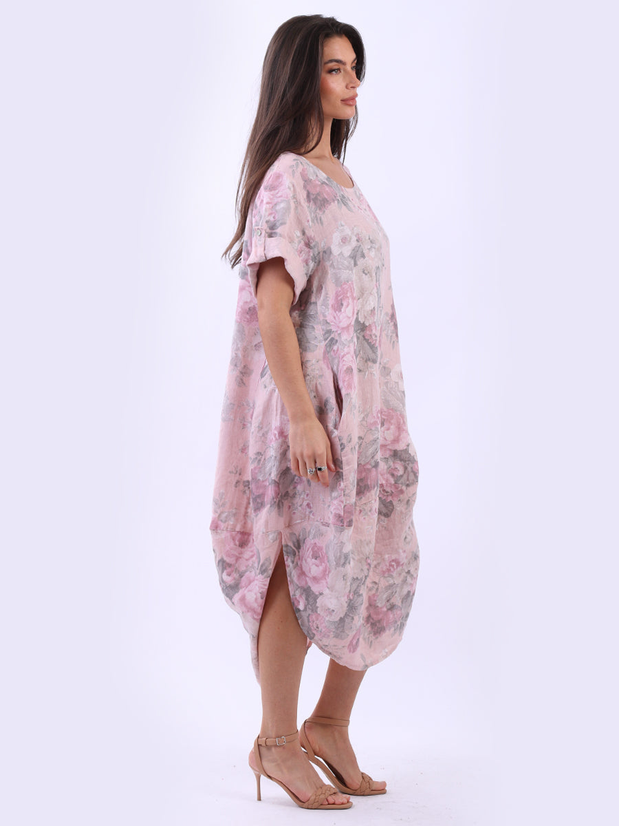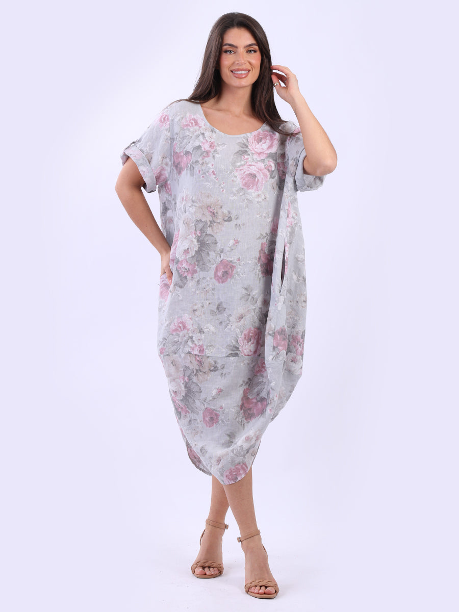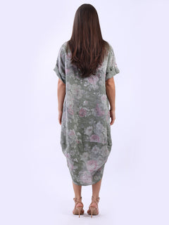 Oversized Linen Floral Print Midi Dress