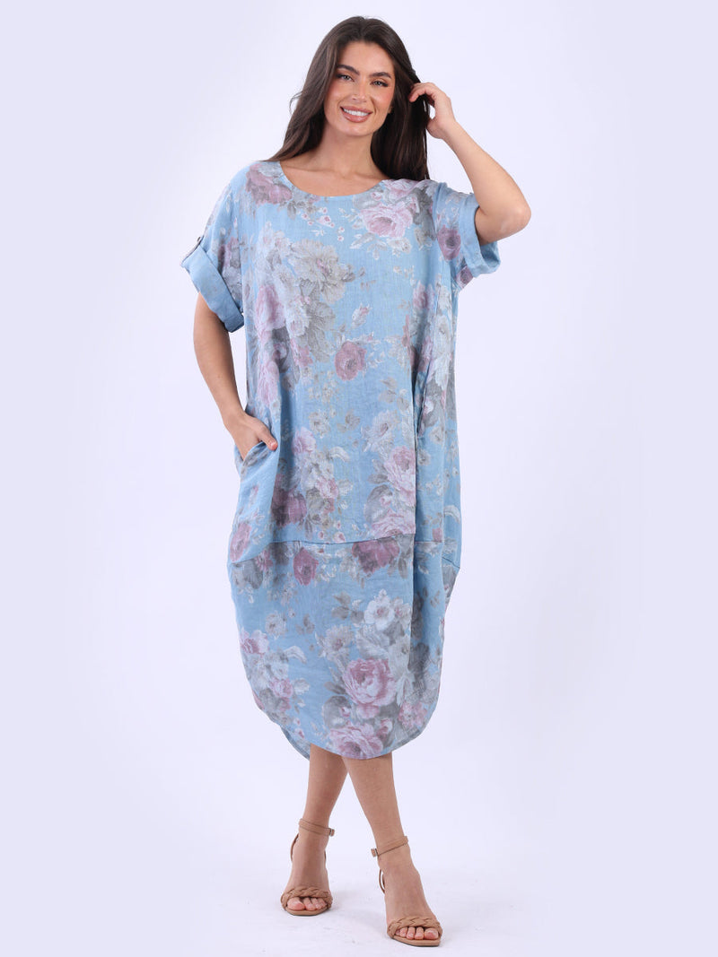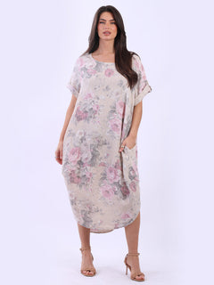 Step into soft autumn vibes with this floral-print linen midi dress that whispers of nature's charm. The neutral tones with delicate flowers create a dreamy, effortless and feminine look. It’s casual yet sophisticated, making it perfect for laid-back weekends or cozy indoor gatherings. Made in Italy, this lagenlook dress will speak to ladies who love adding natural beauty to their wardrobe.