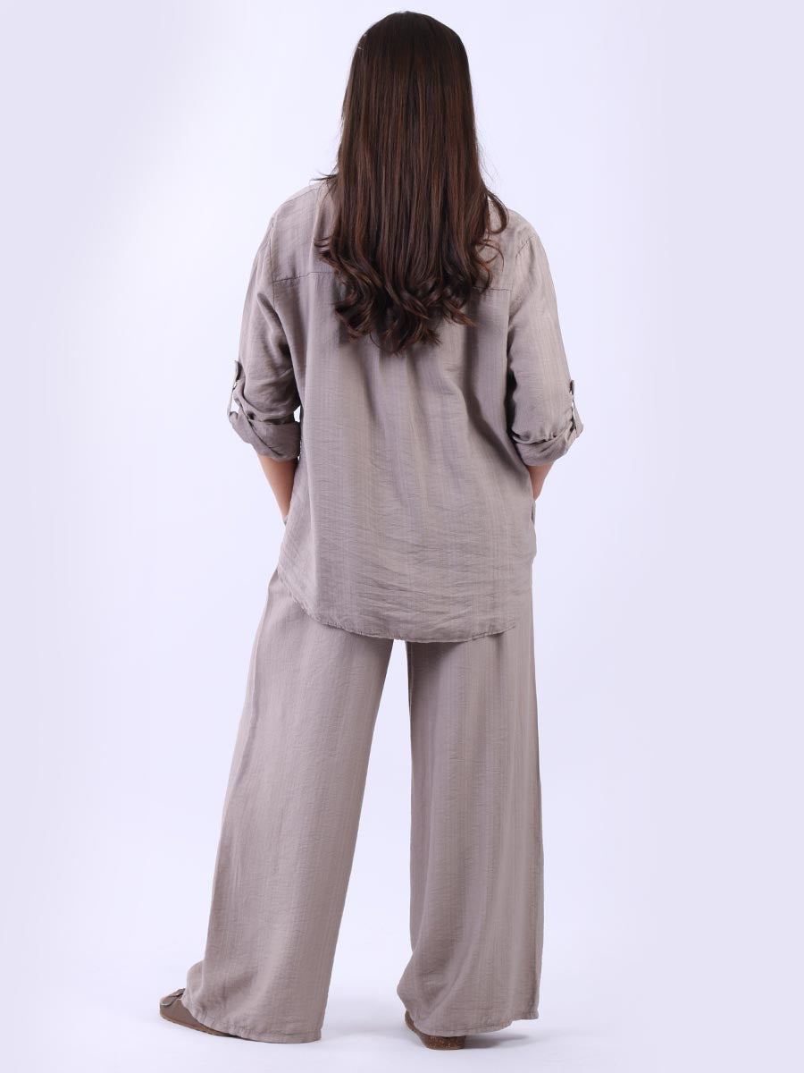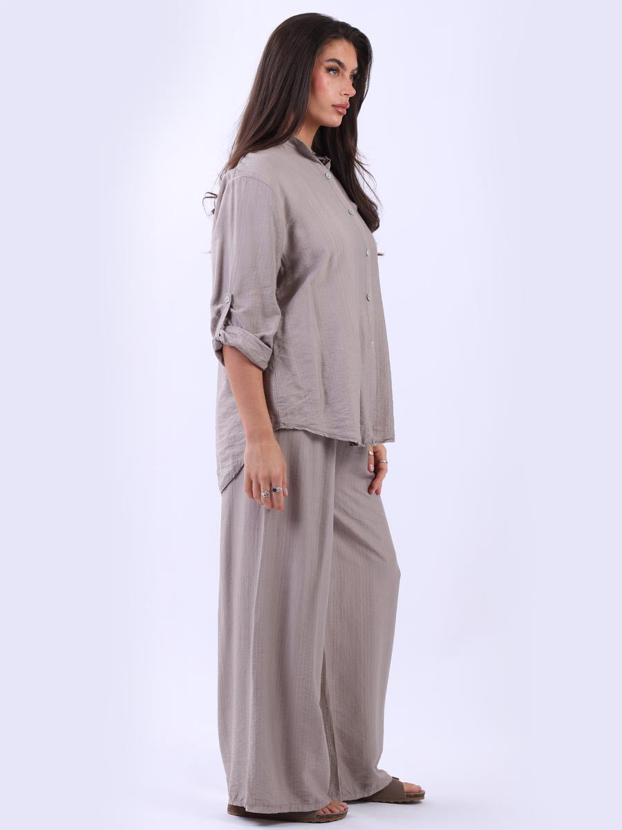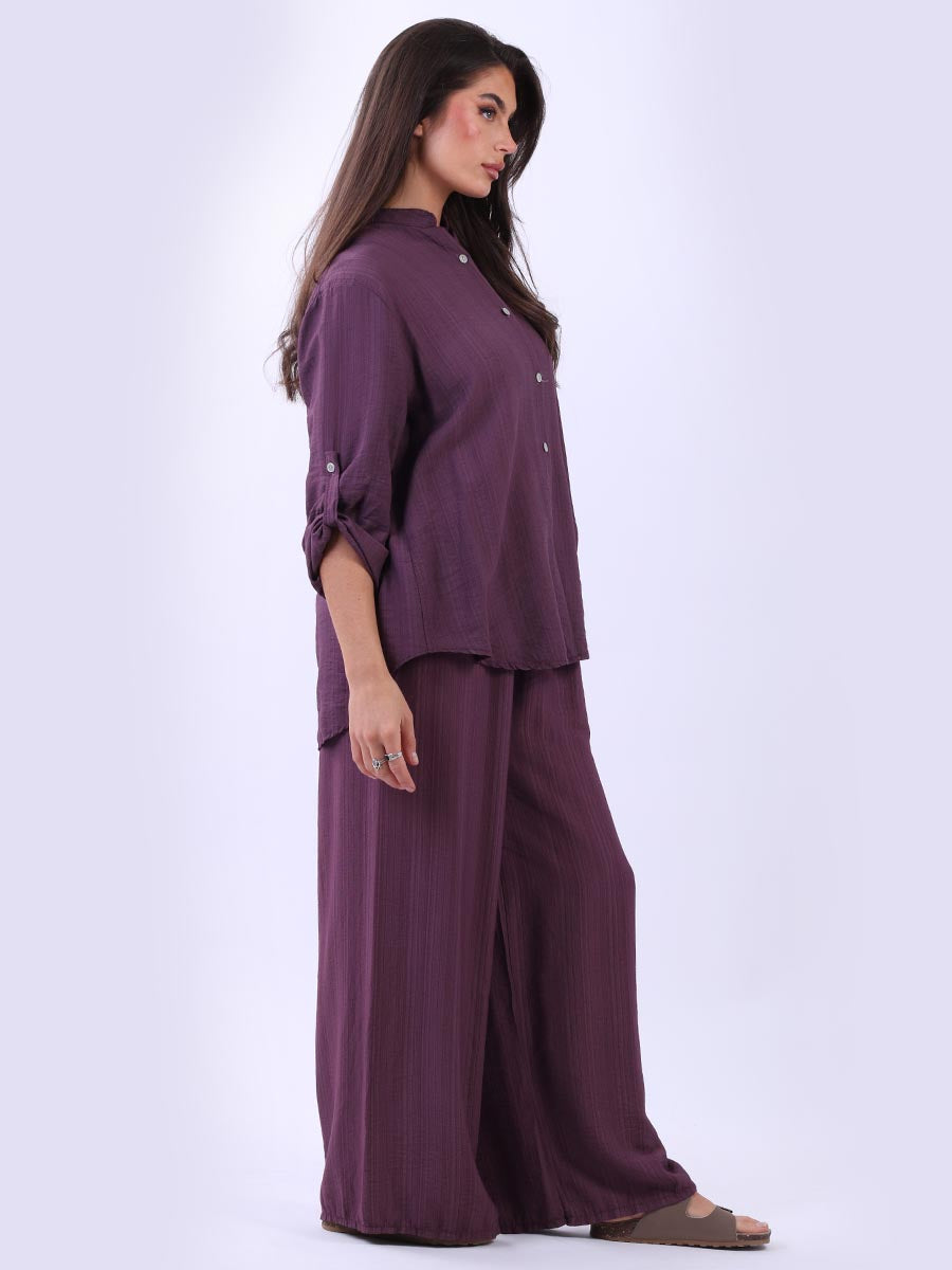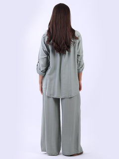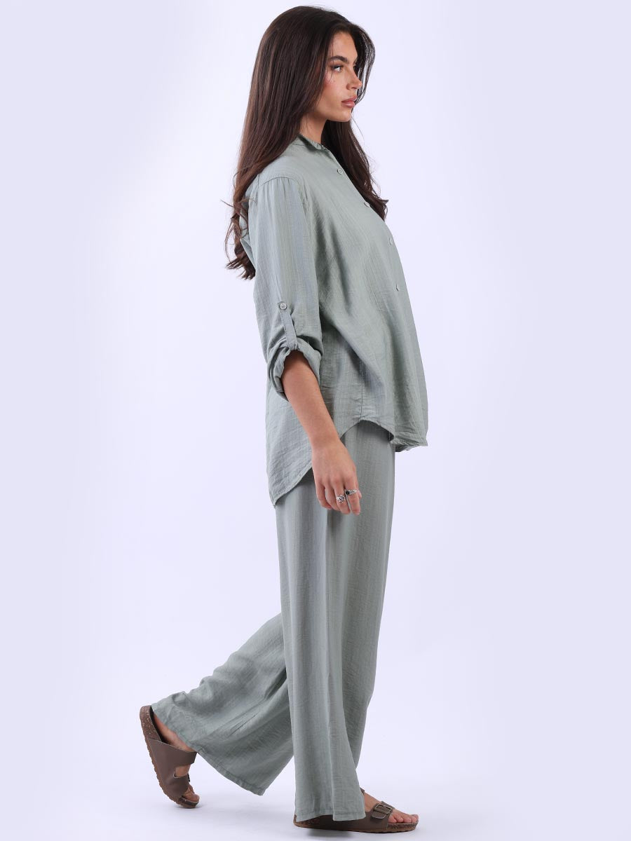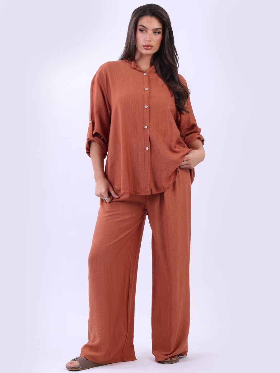 This plain front knotted button down shirt in various colors is a vibrant choice for any wardrobe. Made in Italy, it features a sleek band collar, long tabbed sleeves and a stylish hi-lo hem. Designed in a casual loose fit, this top is perfect for those plus size ladies who don't wish to compromise on style and comfort.