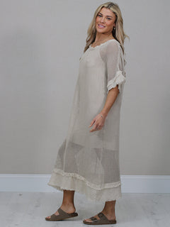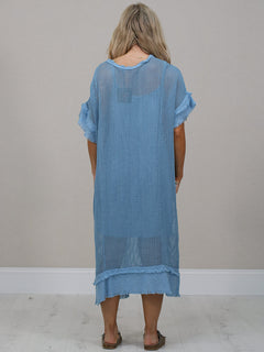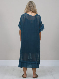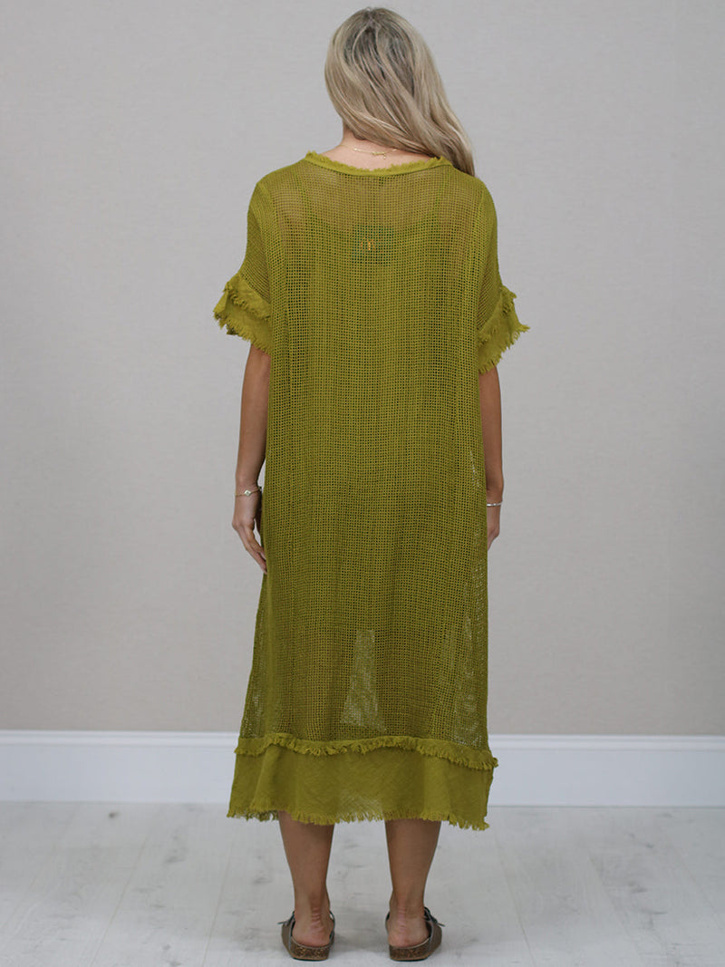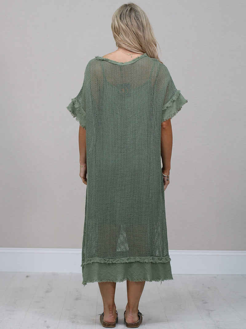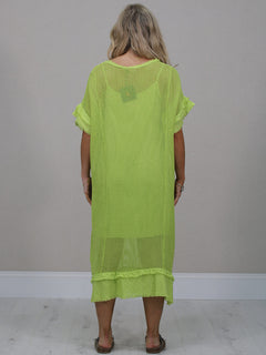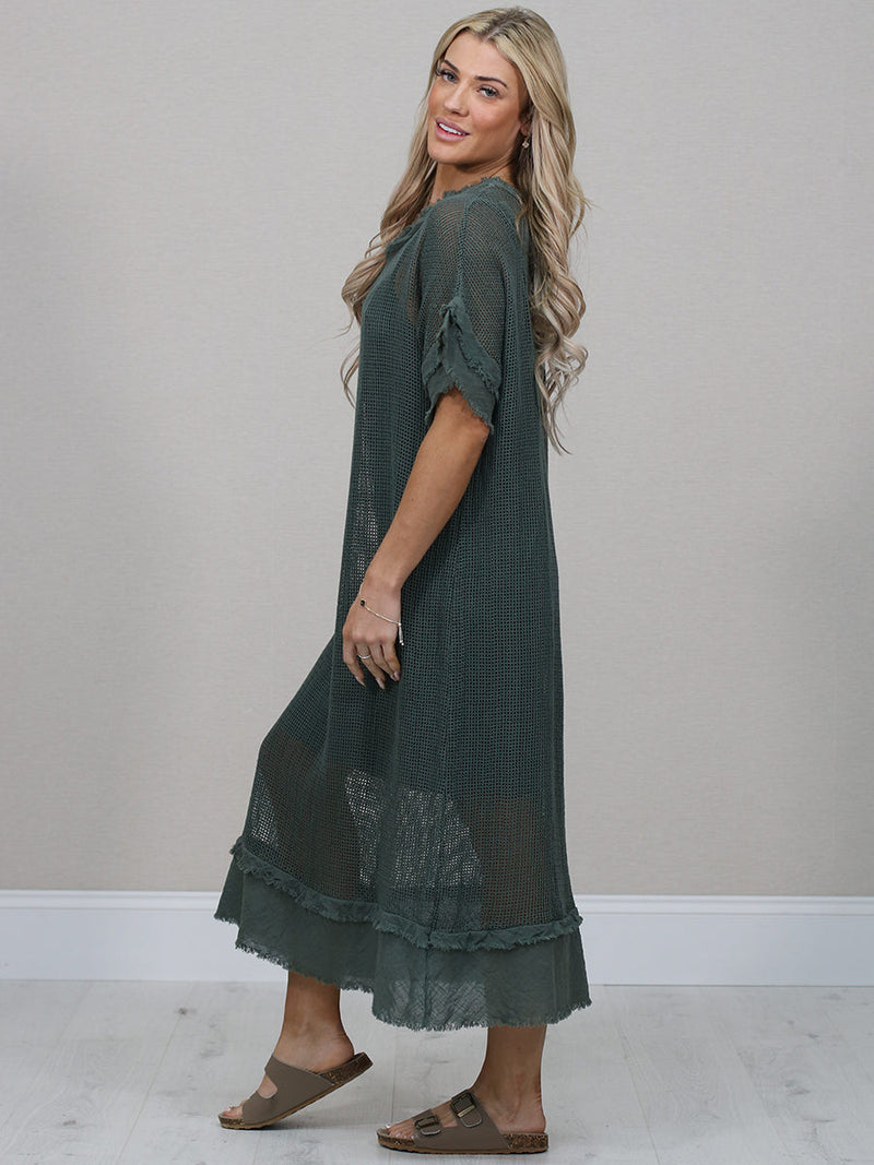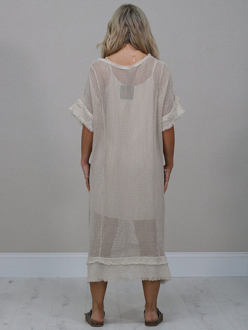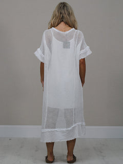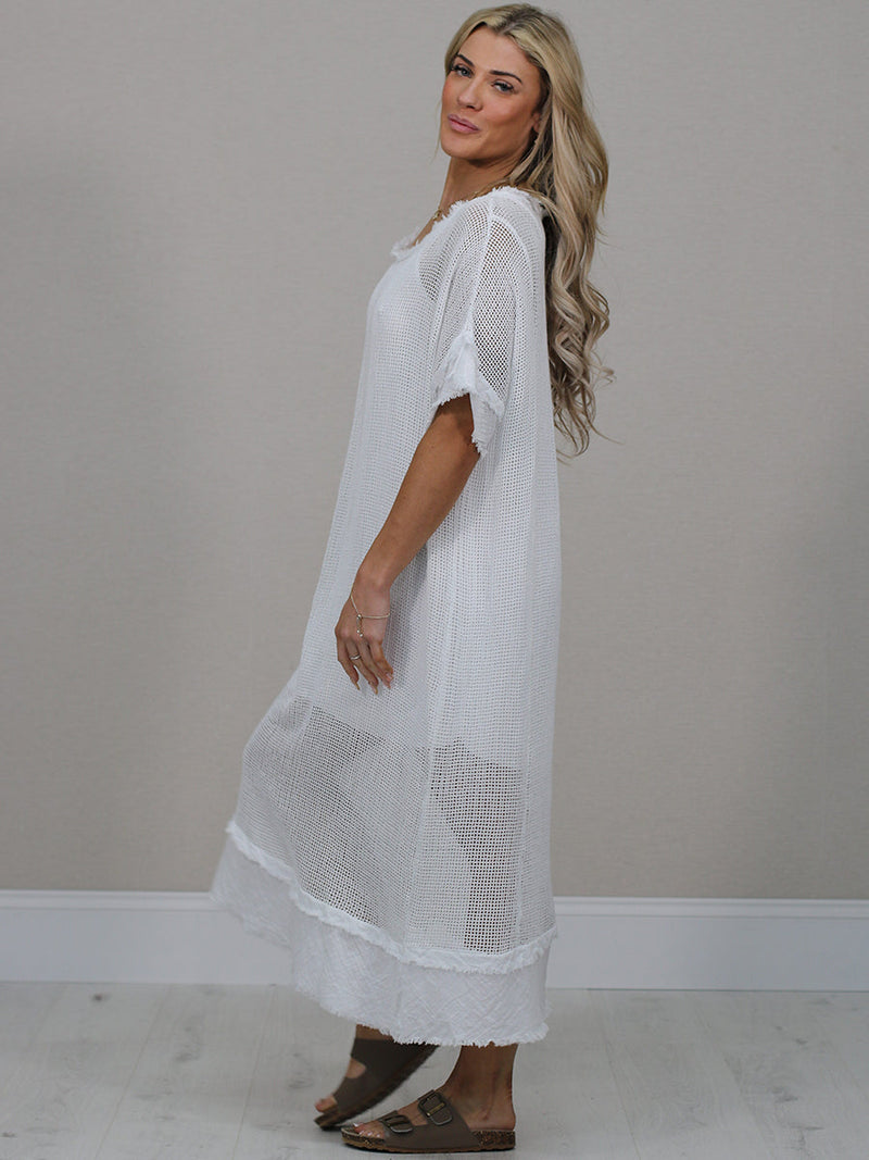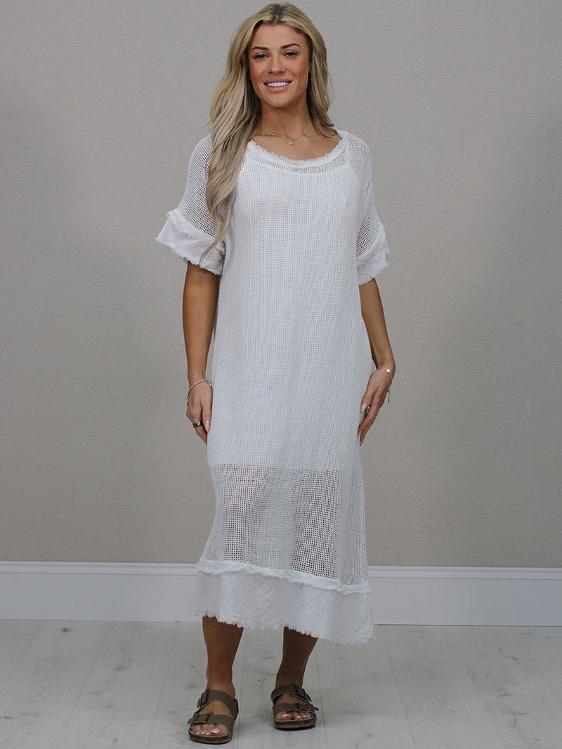 Stay cool and comfortable all season long in this easy-going made in Italy plain cotton mesh net dress. The relaxed fit, soft frilled sleeves and simple round neckline make it a fuss-free favourite for sunny days. Lightweight, breathable and perfect for everyday wear.