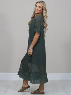 Plain Cotton Mesh Net Midi Dress