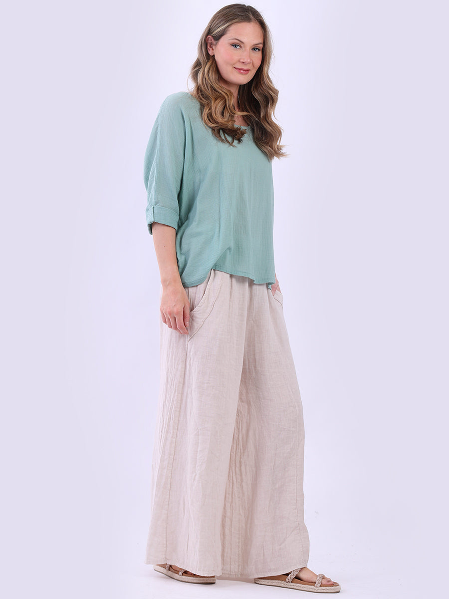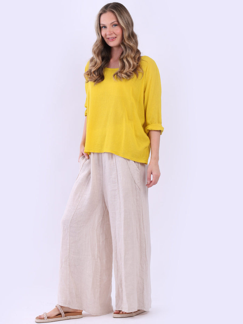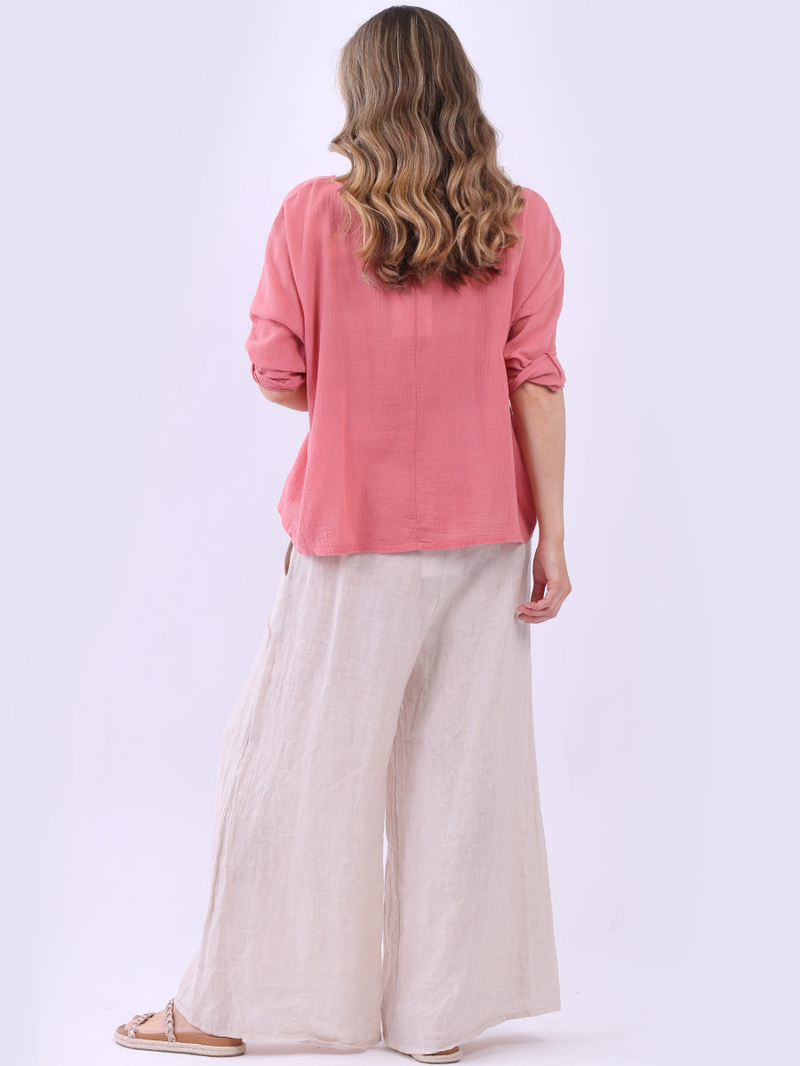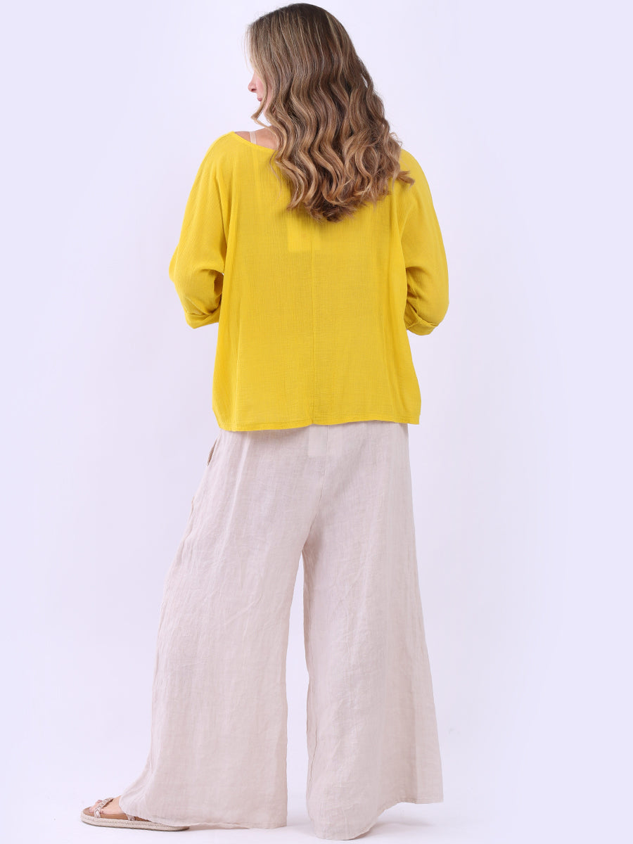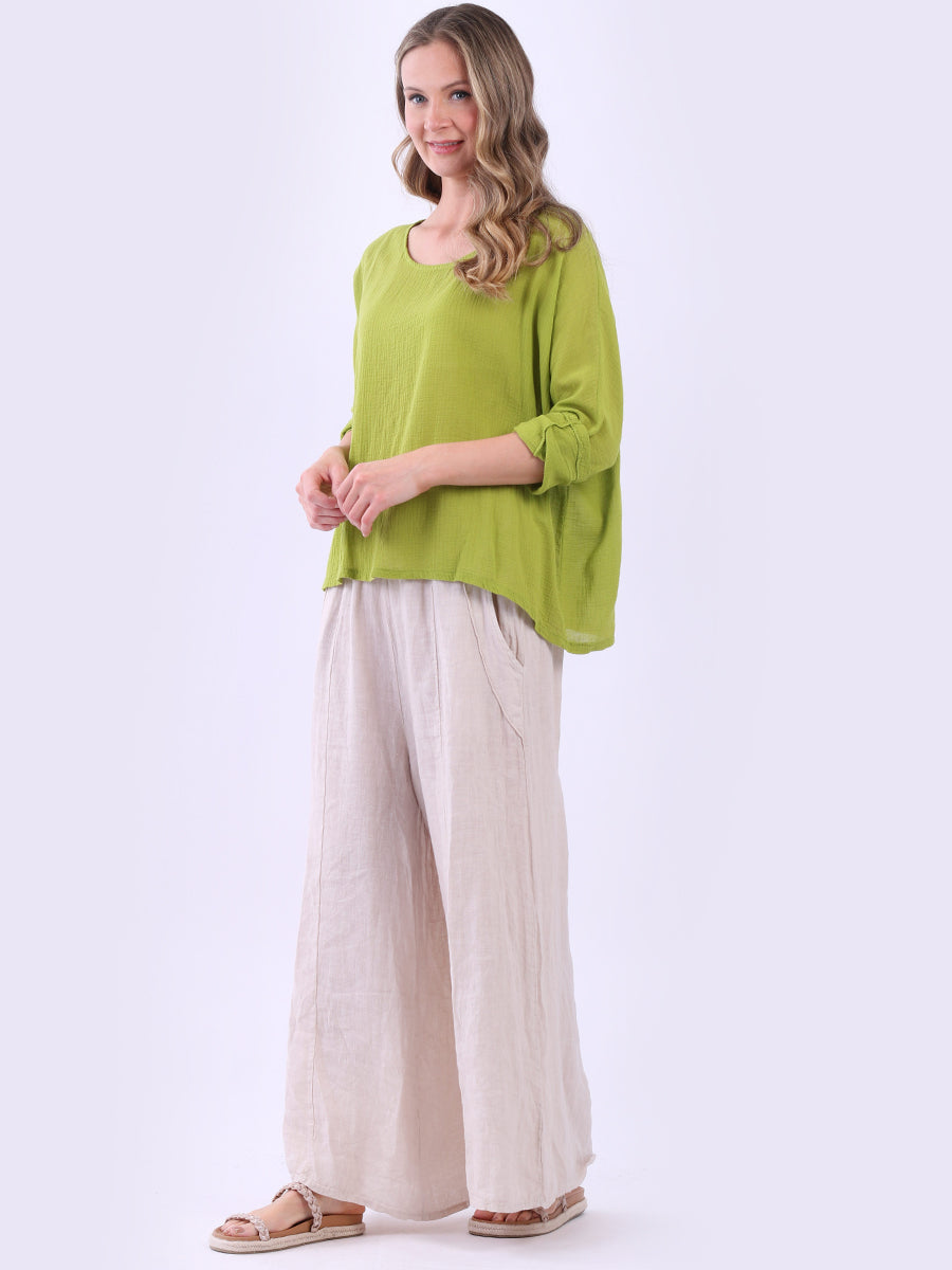 This ladies' plain classy cotton top is exceptional in comfort and wearability, all thanks to its loose fit, rolled sleeves, and round neckline. Its solid hue makes it versatile, pairing well with plain pants, denim jeans, or a cardigan, as you desire.