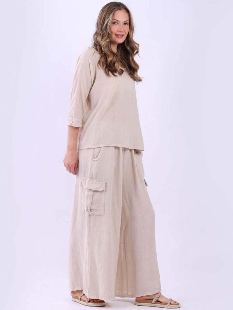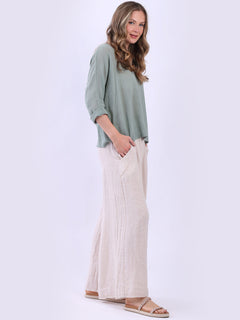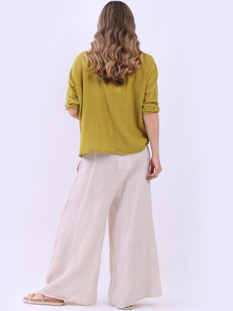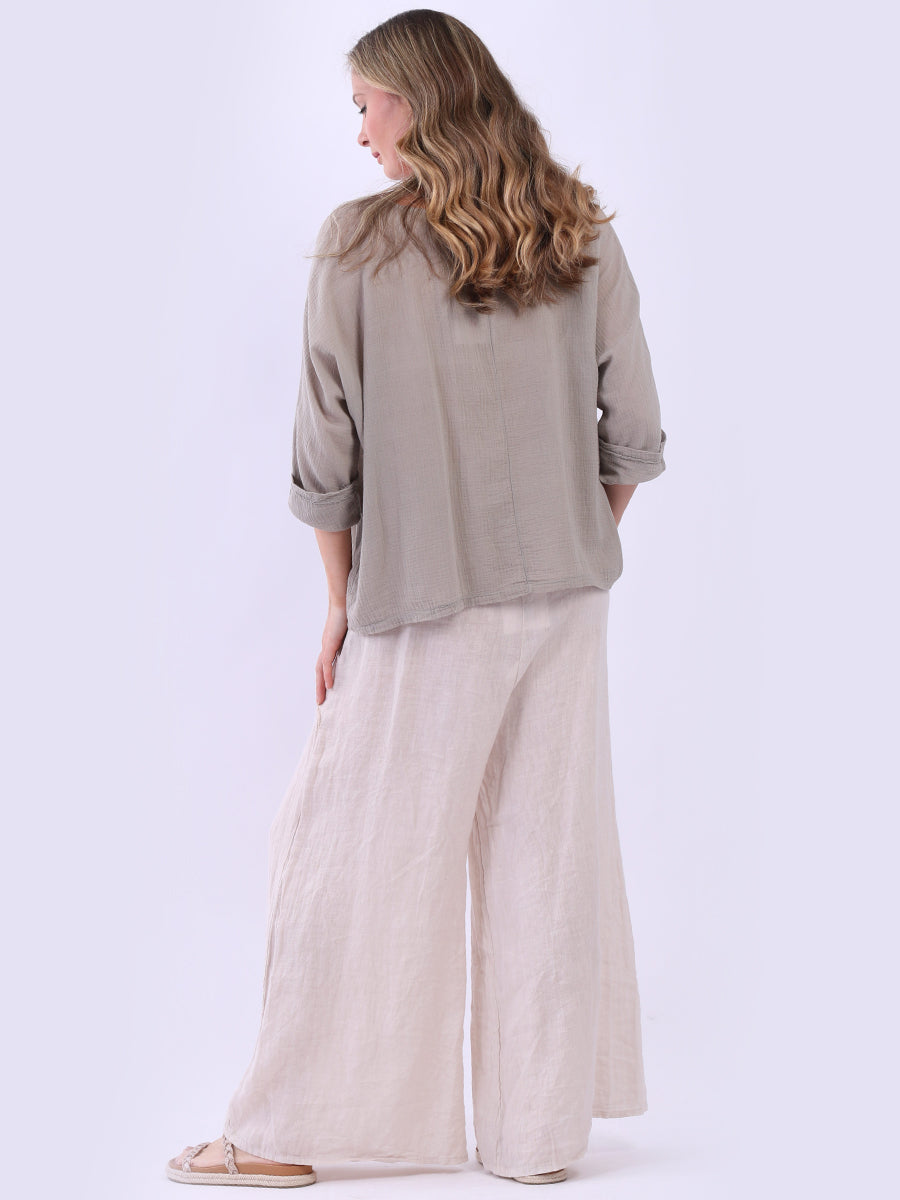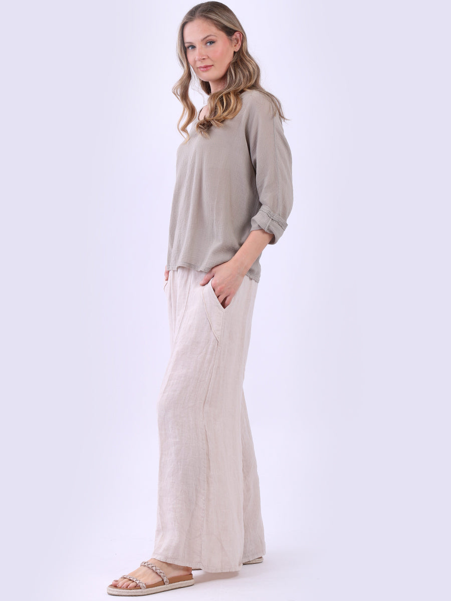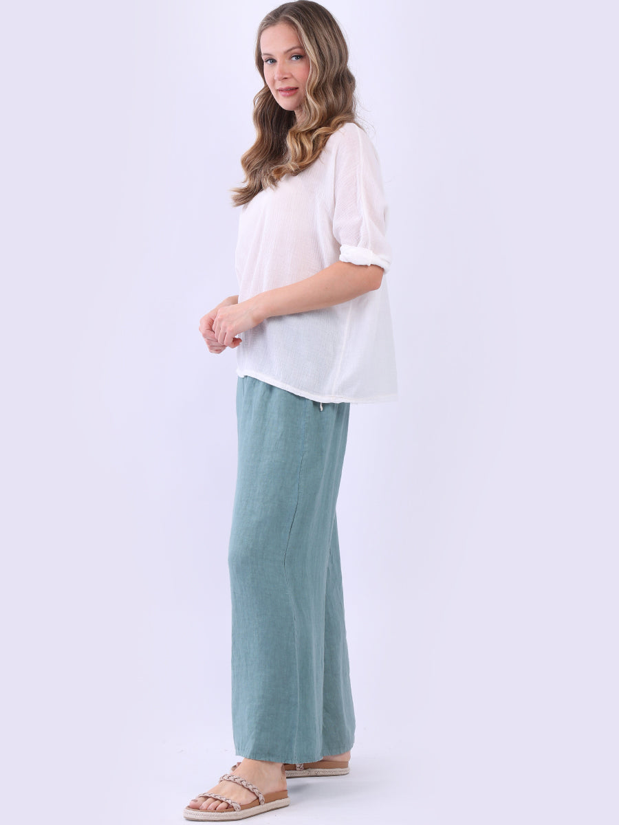 This ladies' plain classy cotton top is exceptional in comfort and wearability, all thanks to its loose fit, rolled sleeves, and round neckline. Its solid hue makes it versatile, pairing well with plain pants, denim jeans, or a cardigan, as you desire.