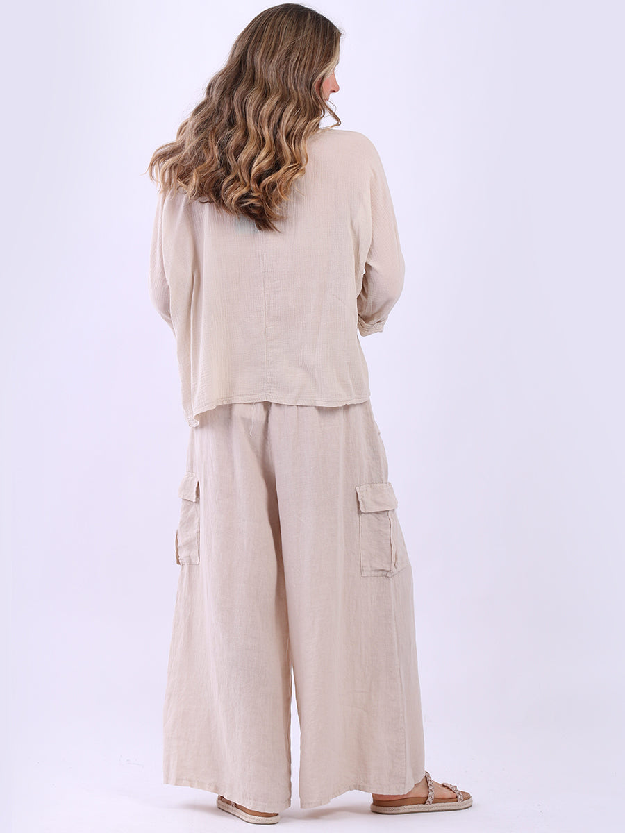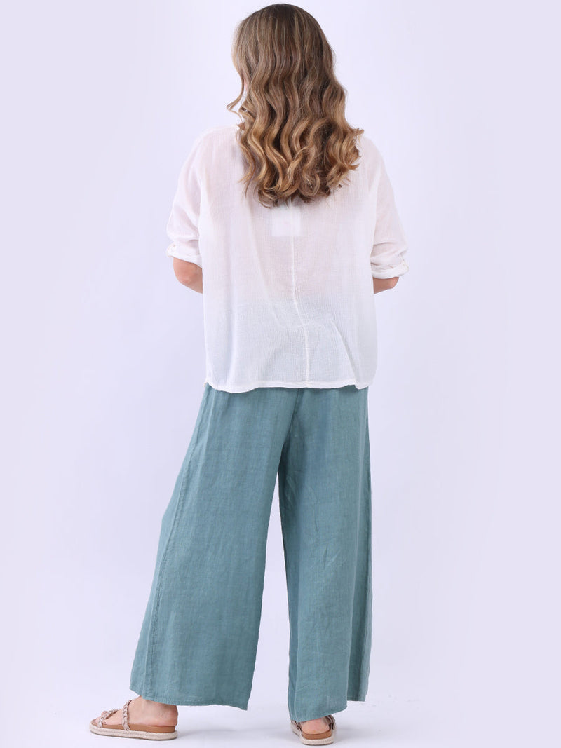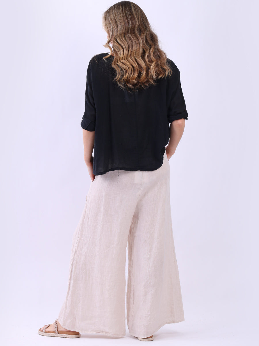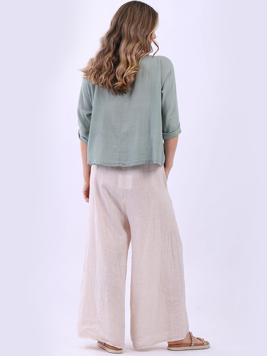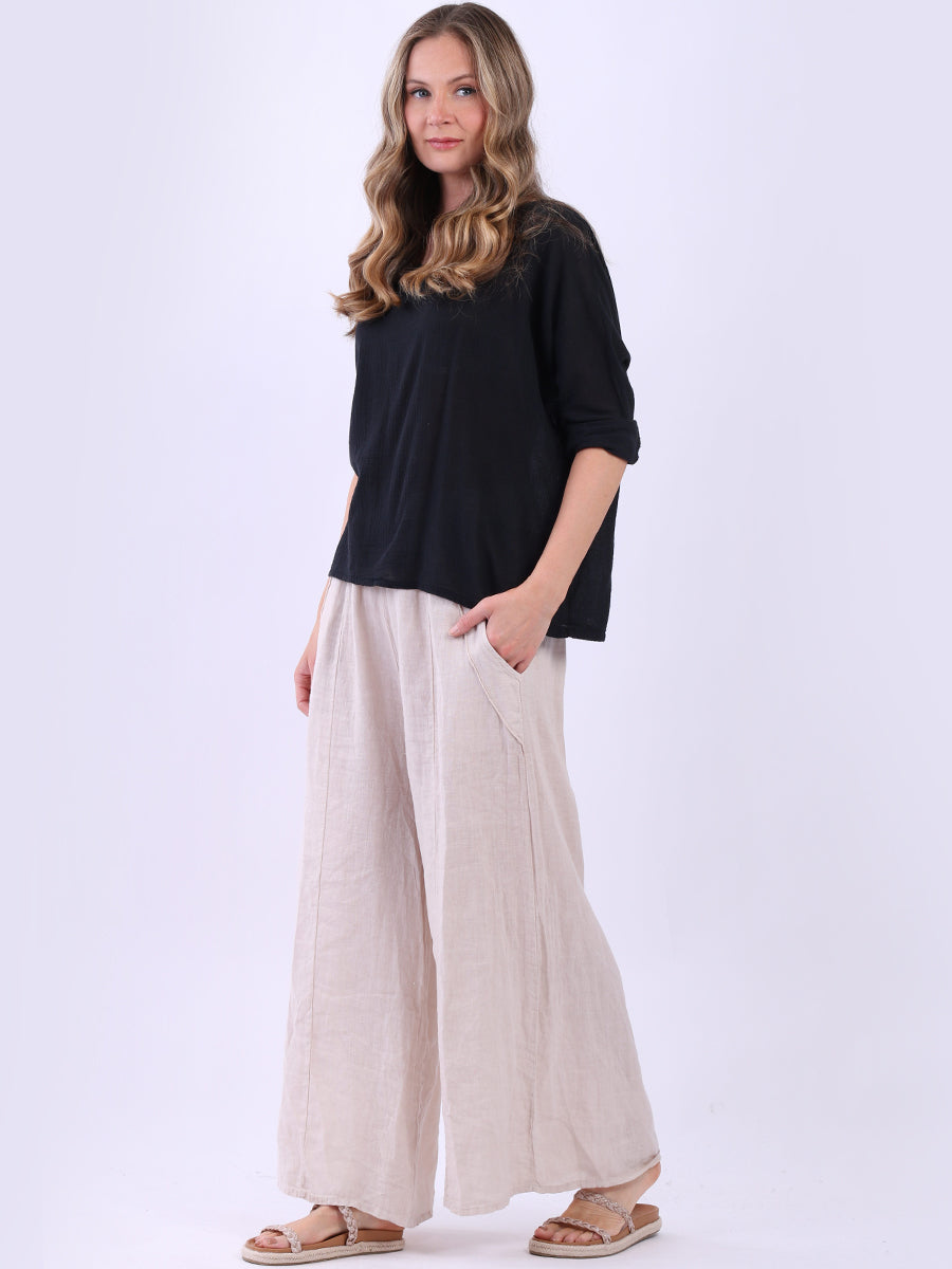 This ladies' plain classy cotton top is exceptional in comfort and wearability, all thanks to its loose fit, rolled sleeves, and round neckline. Its solid hue makes it versatile, pairing well with plain pants, denim jeans, or a cardigan, as you desire.