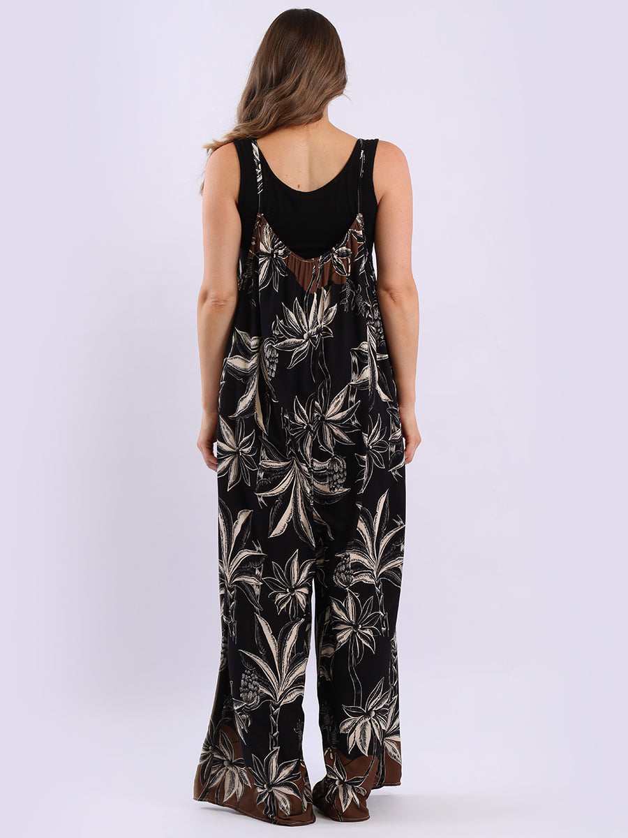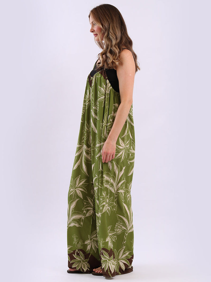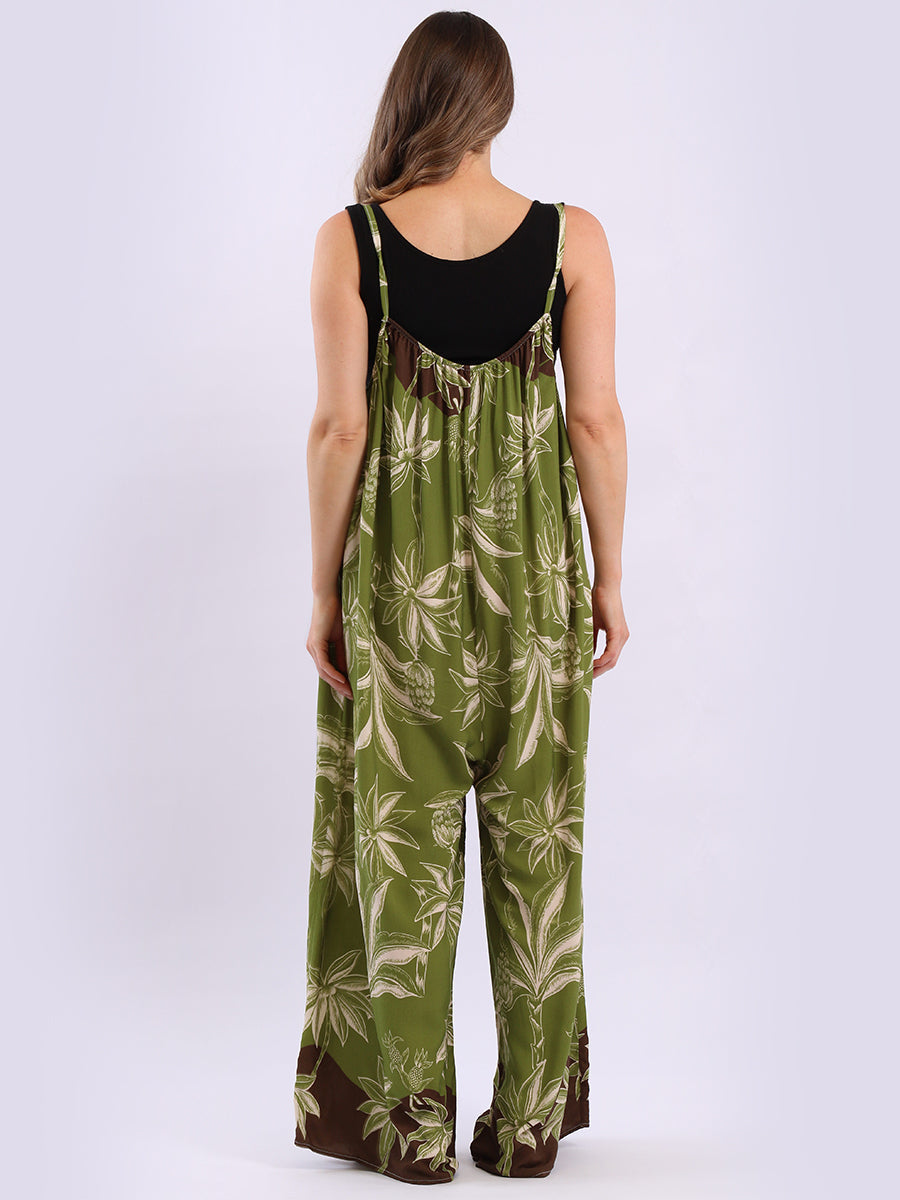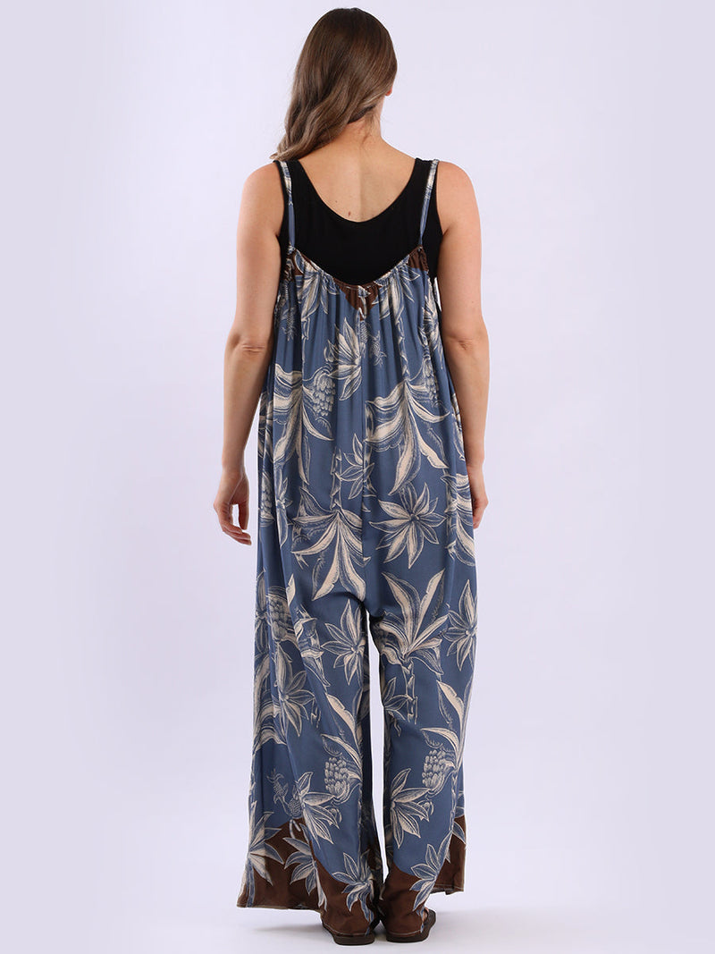 Plus Size Floral Wide Leg Cotton Jumpsuit