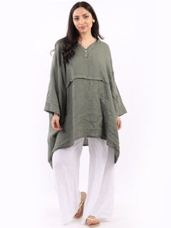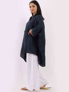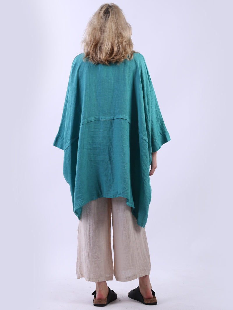 Bold and essential for wardrobe that will make vibes for the women wearers when they dress in it. Made in Italy top comes in bold royal colors for seasonal sensation looks, V-neckline with button fastening and baggy plus size fit. Dress it with trousers and pumps for retro finish.
