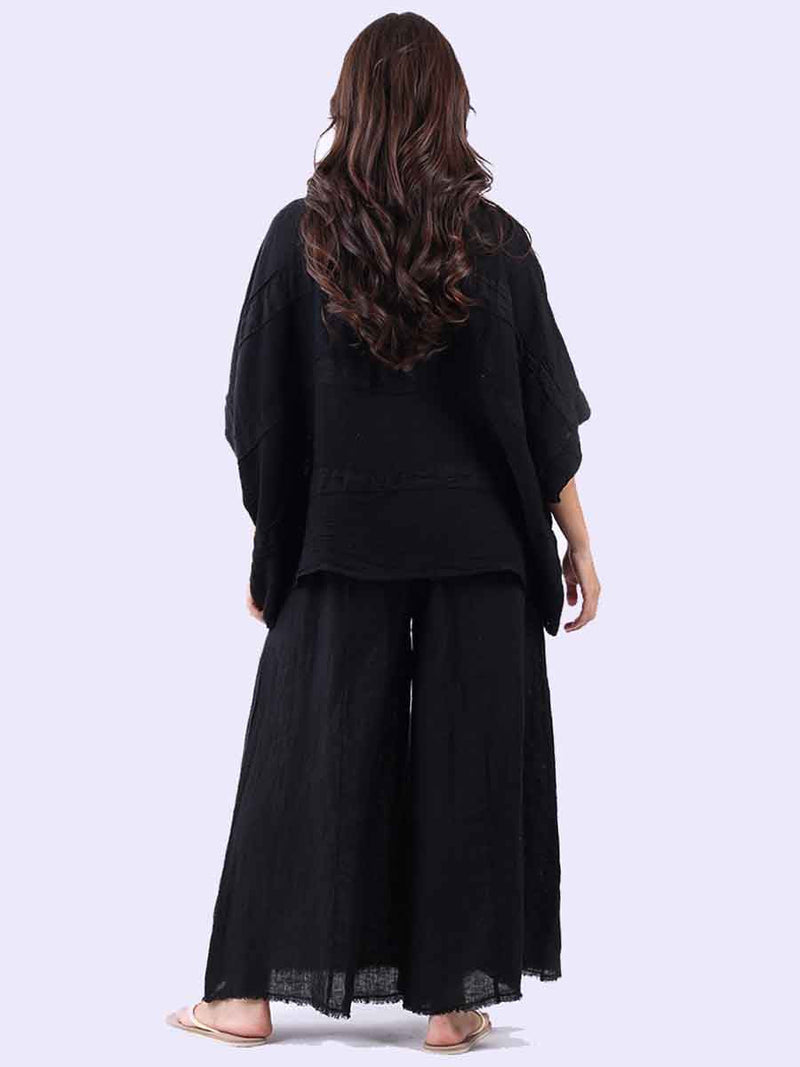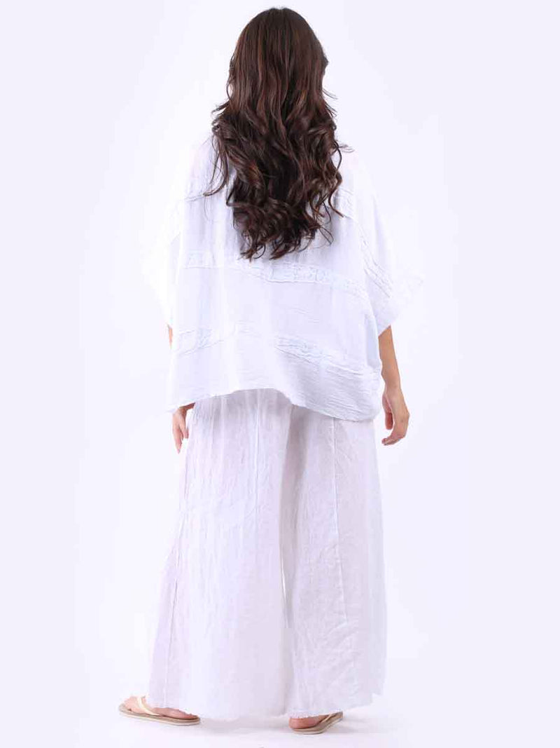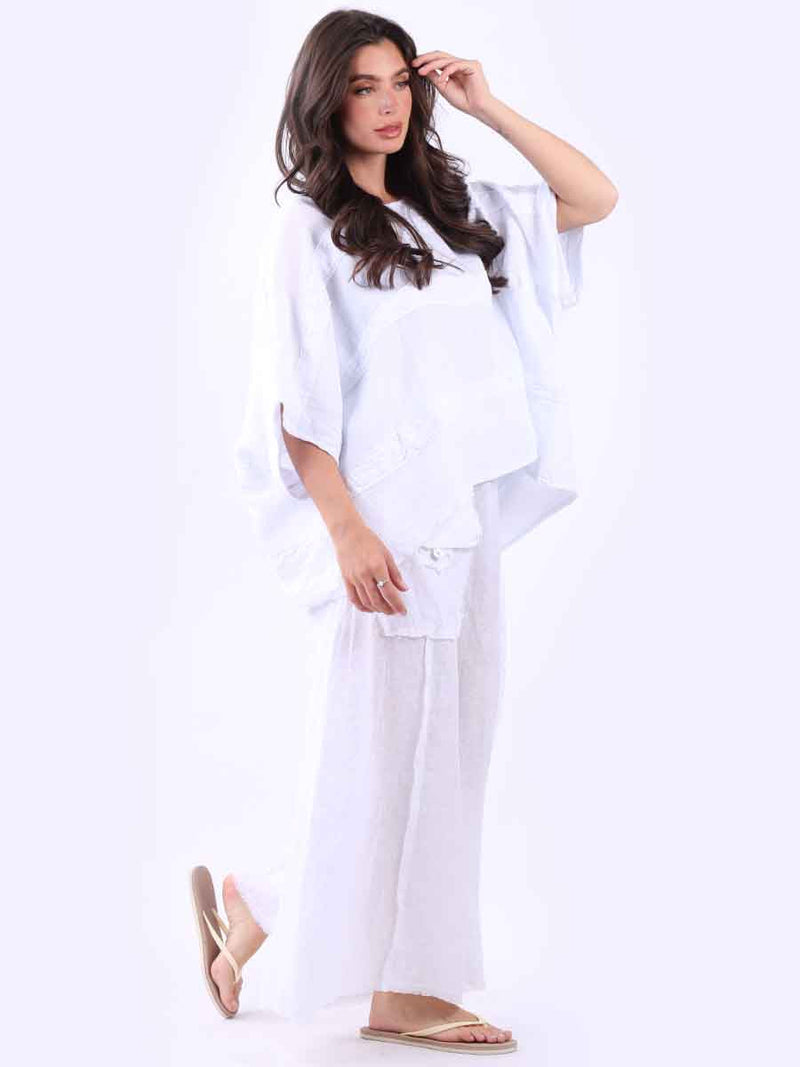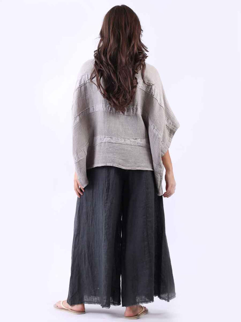 Women can add a playful twist to summer wardrobe with this vintage linen top. Designed with horizontal patch details across the bodice and waist, it brings a funky, fun vibe to your everyday look. Made from soft, breathable linen, this top is part of Fashion Boutique's vibrant summer collection, perfect for staying cool in style. Crafted in Italy for high quality, it features a wide round neckline, oversized baggy fit, half sleeves, and a roomy hem for effortless movement and comfort. Pair it with floral ankle-grazer trousers for a chic statement, or keep it relaxed with linen pants for an easy, breezy outfit.