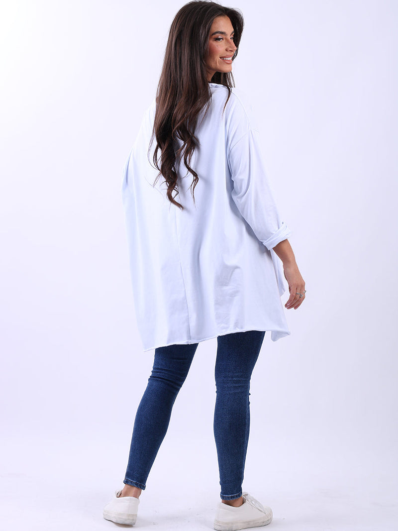 One silhouette to keep the women wearers on top of the styling game. Made in Italy with the softest and highest quality cotton that makes the softest impression on the skin with its cozy touch and feel. Women boutique presents this bright, beautiful, and feature-rich top with a wide round neckline, long batwing cuff sleeves, and a plus-size fit with a dip hem. Mix and match with a floral scarf and wide-leg pants for a retro finish.