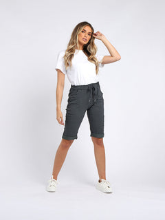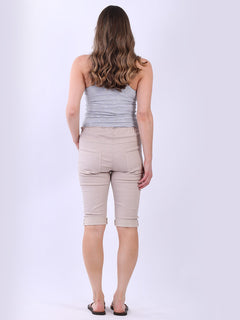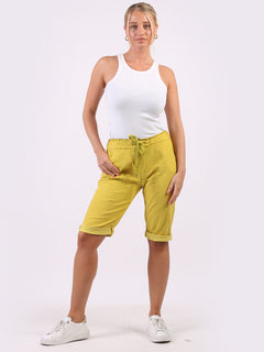 Stay cool and casual in summer with these Made in Italy plain casual ladies magic shorts. These relaxed fit knee length magic shorts are absolutely stunning showcasing soft drawstring waist belt, functional side pockets and rolled up hem . Make it your choice for a stunning look!