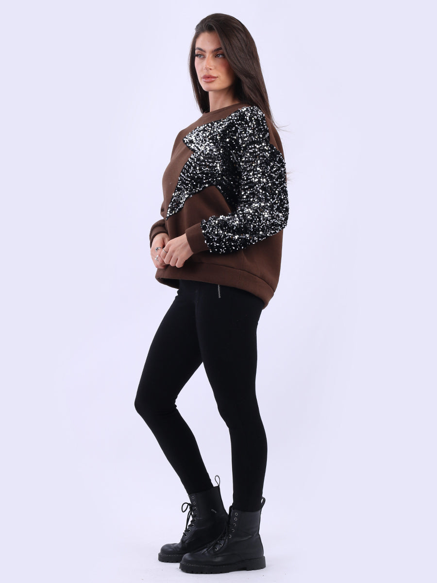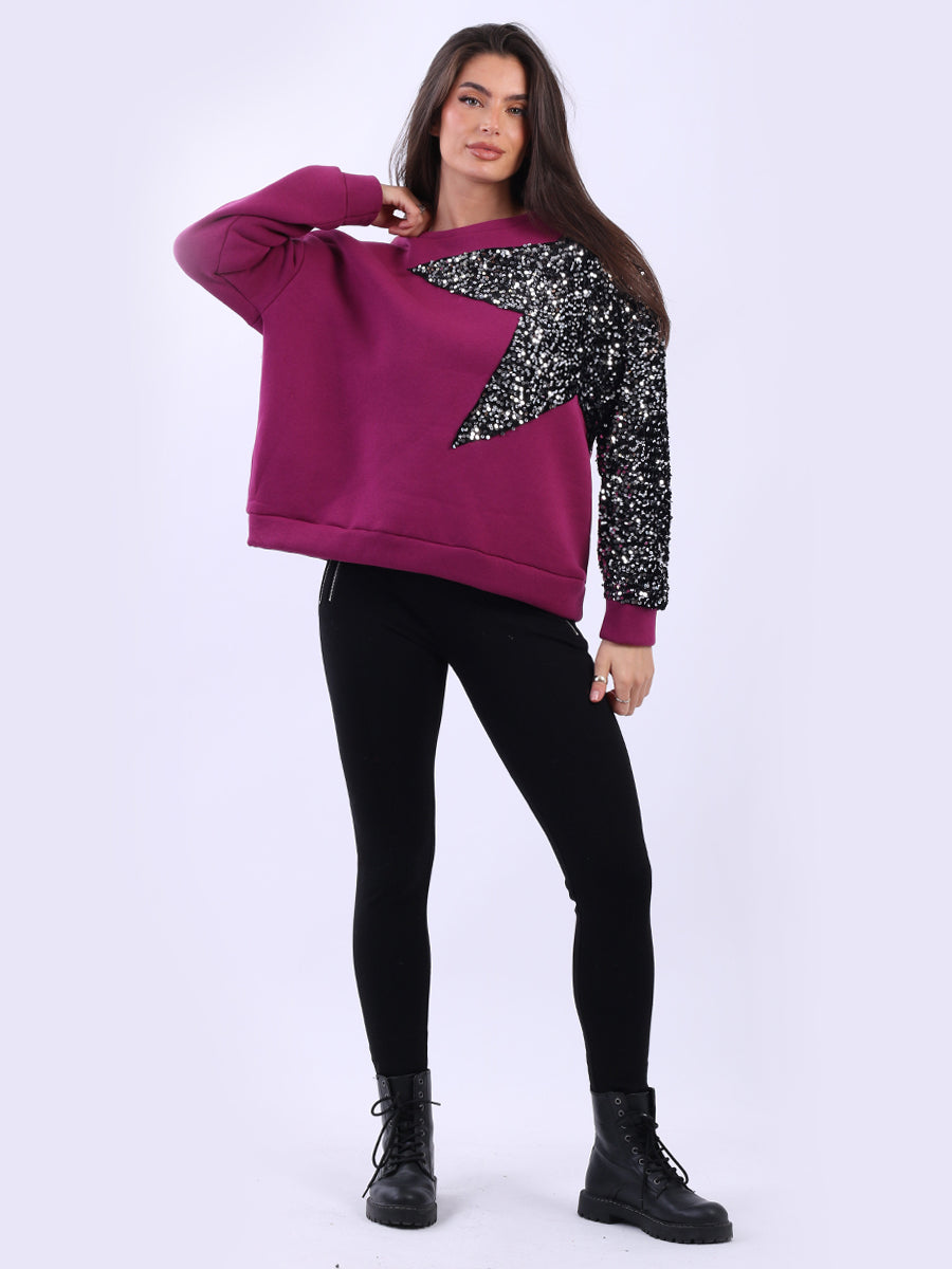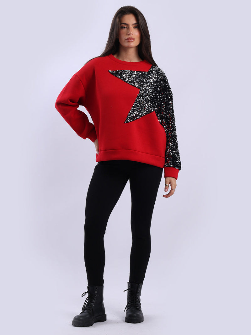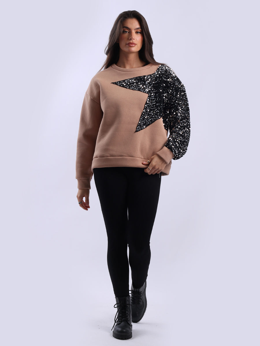 Add a playful twist to your look with this pullover featuring a dazzling sequin star patch. Made from soft, cozy fleece, it’s a fun choice for cooler autumn days when you want to add a little sparkle to your wardrobe. Perfect for laid-back outings, this piece brings warmth and personality to any outfit.