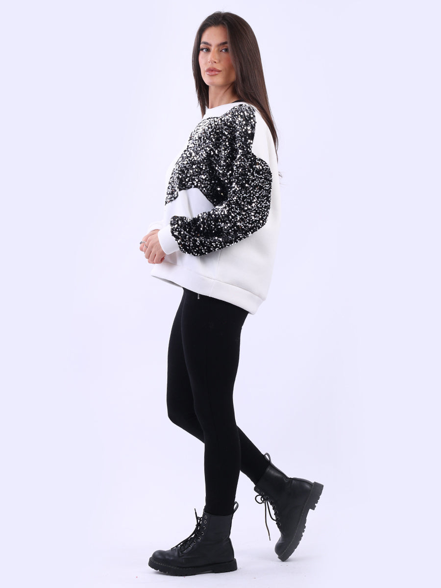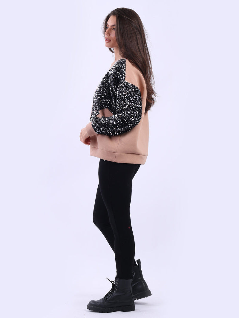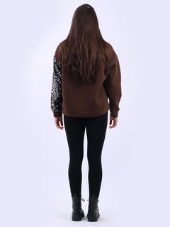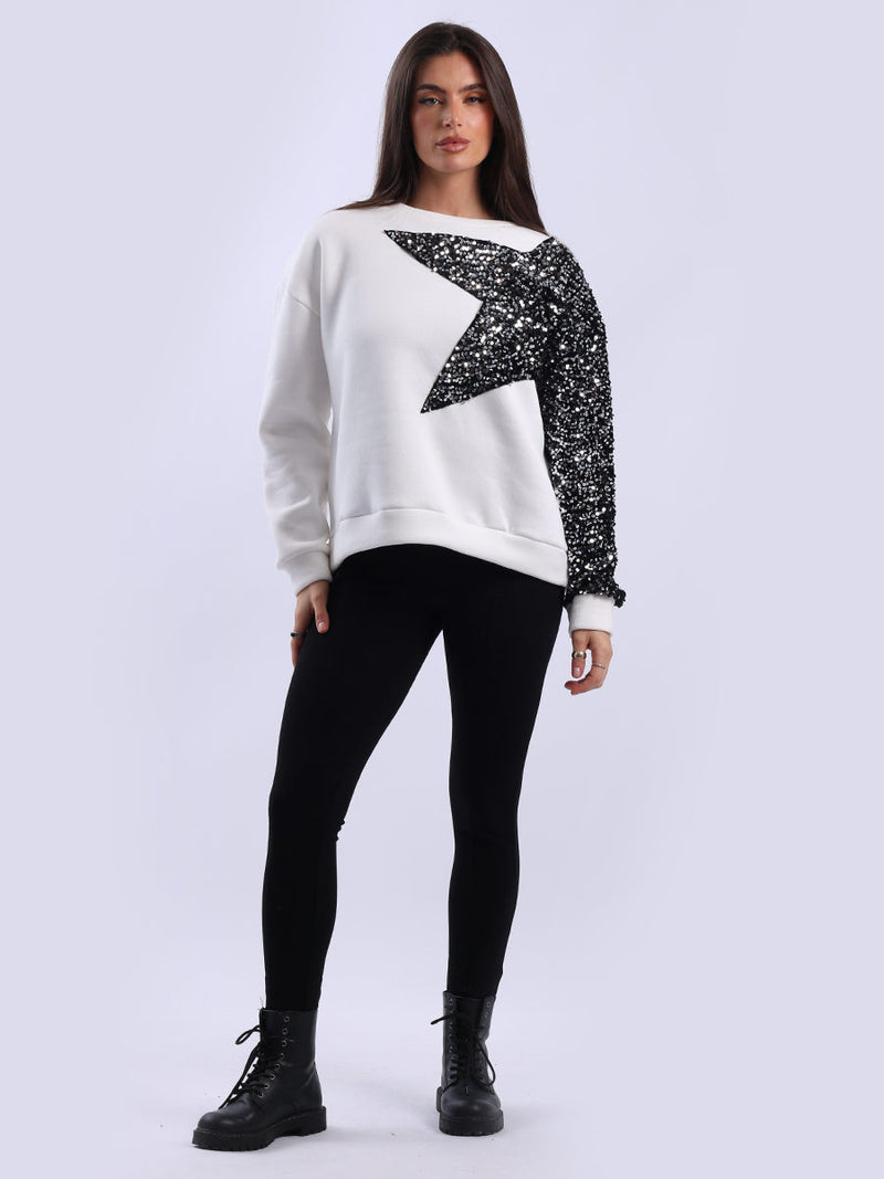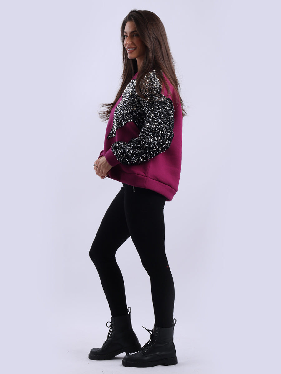 Add a playful twist to your look with this pullover featuring a dazzling sequin star patch. Made from soft, cozy fleece, it’s a fun choice for cooler autumn days when you want to add a little sparkle to your wardrobe. Perfect for laid-back outings, this piece brings warmth and personality to any outfit.