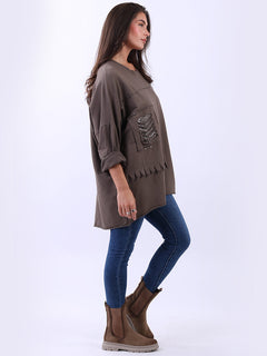Sequin Ripped Batwing Cotton Oversized T-Shirt